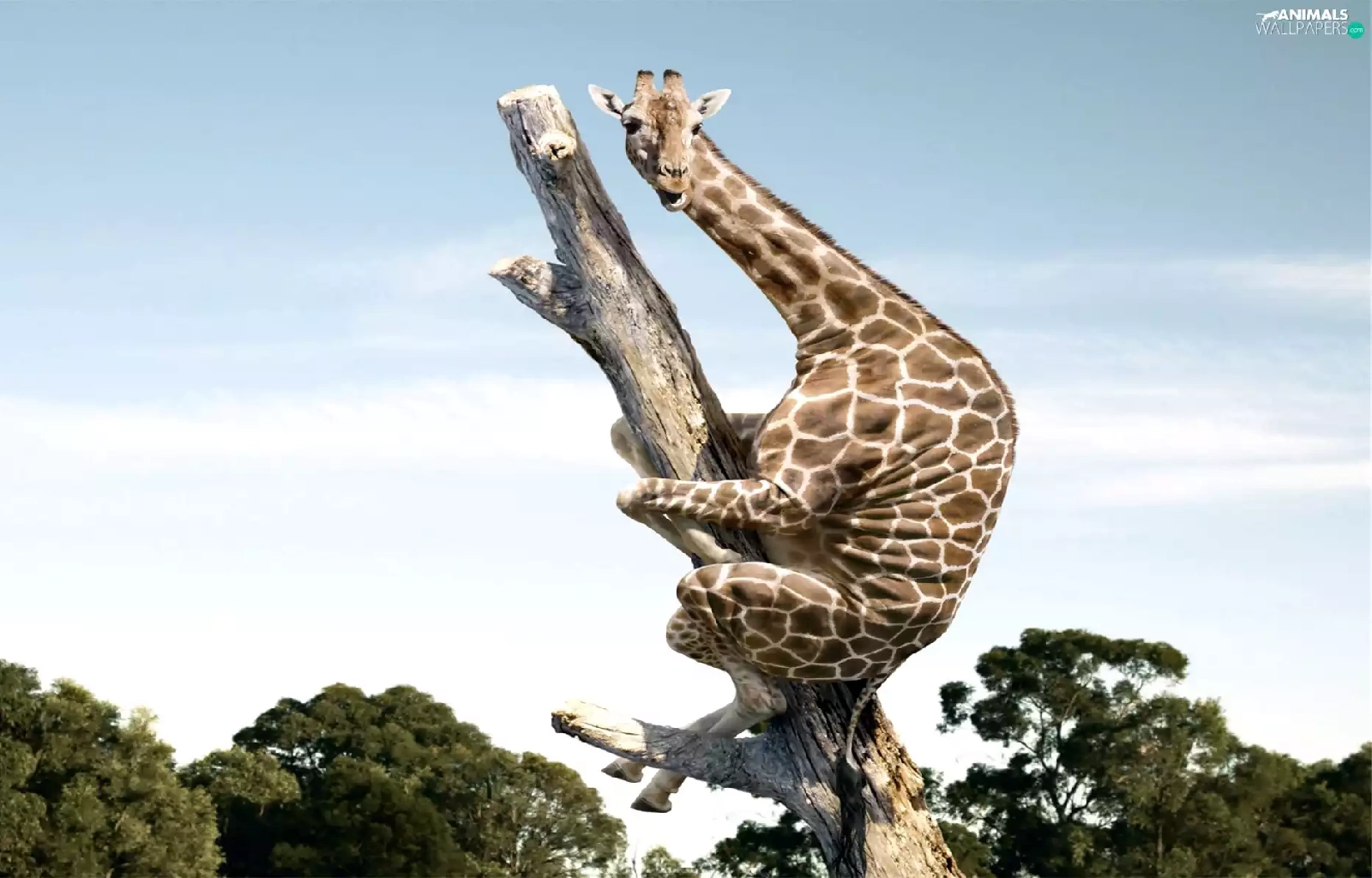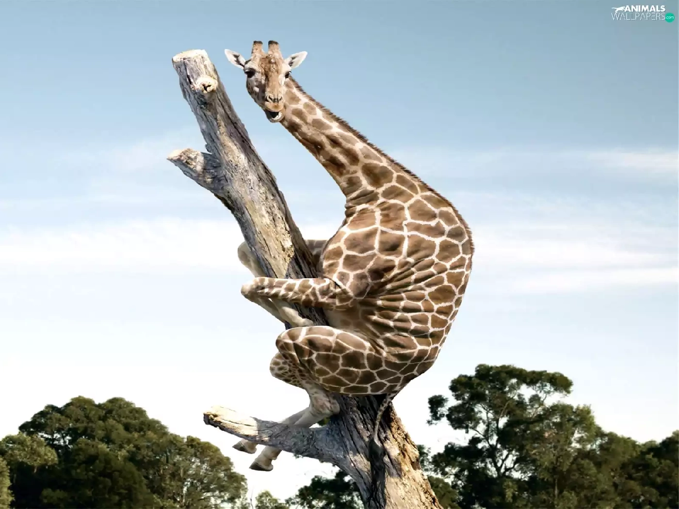 tree, giraffe, an
