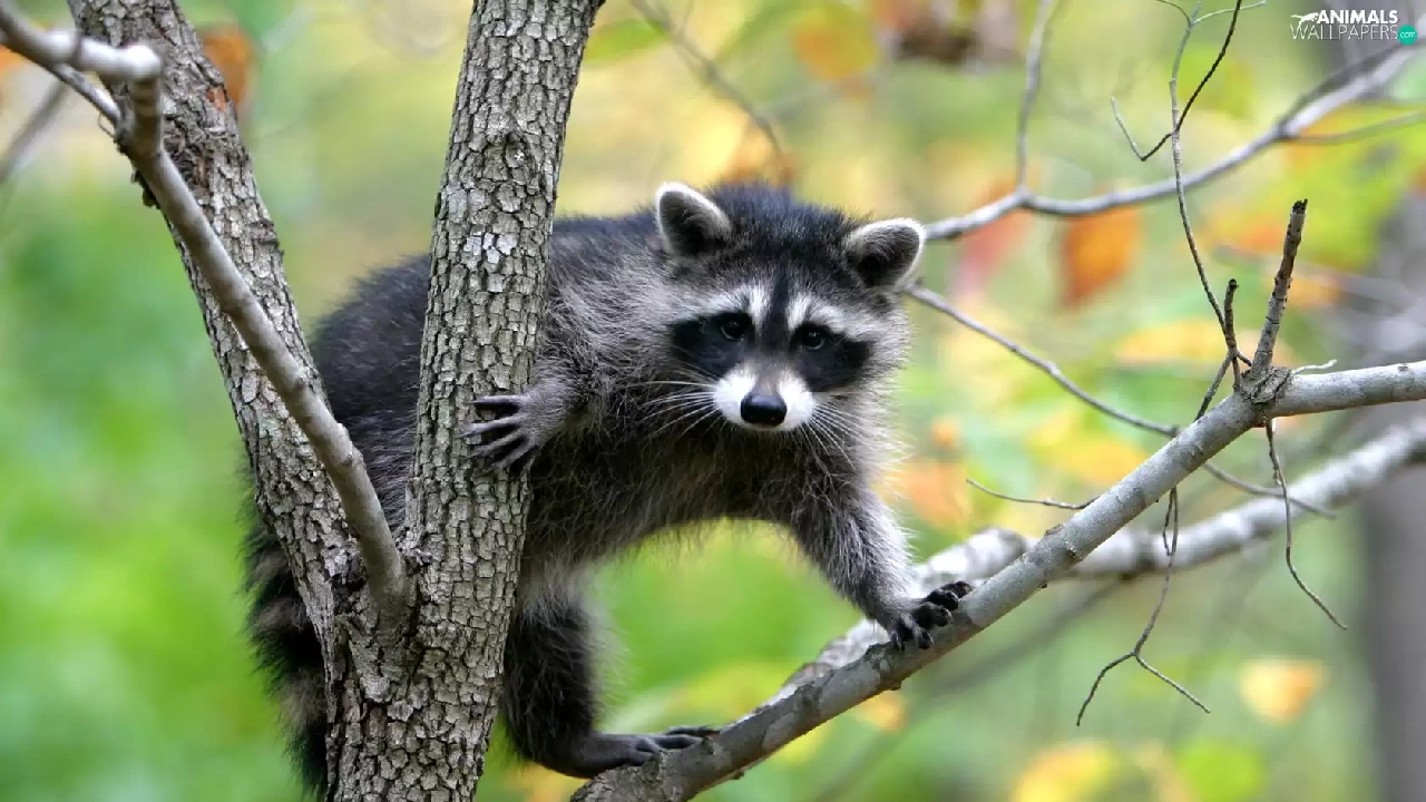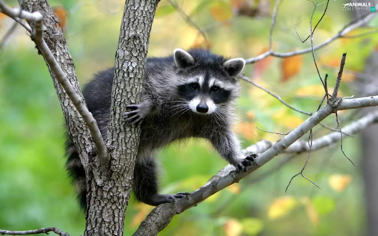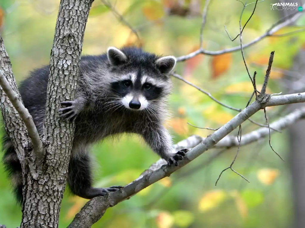 tree, raccoon, an