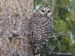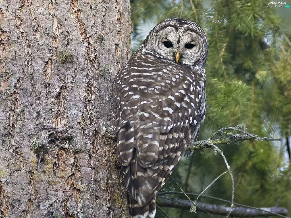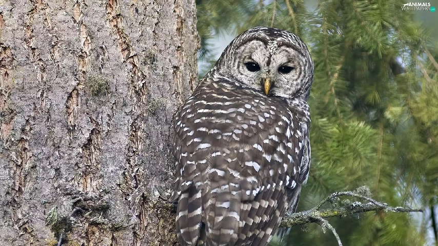 an, tree, owl, sitting, Gray