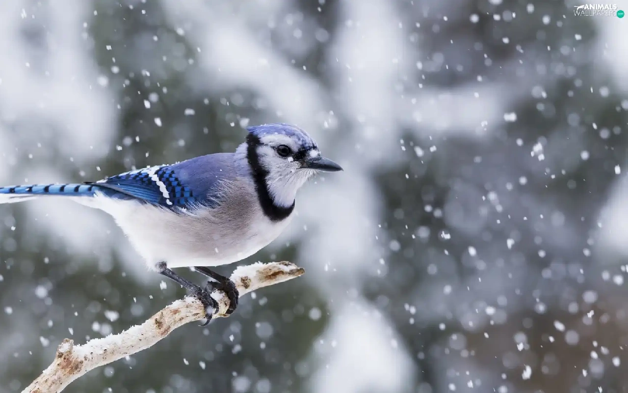 Blue jay, trees, viewes, Lod on the beach