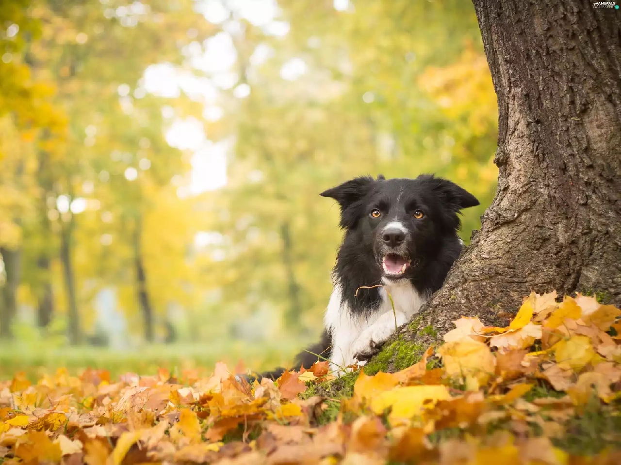 Border Collie, autumn, trees