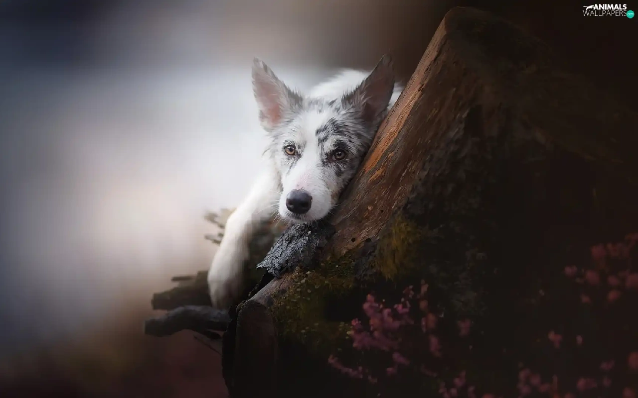 trees, heather, Border Collie, muzzle, dog