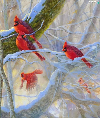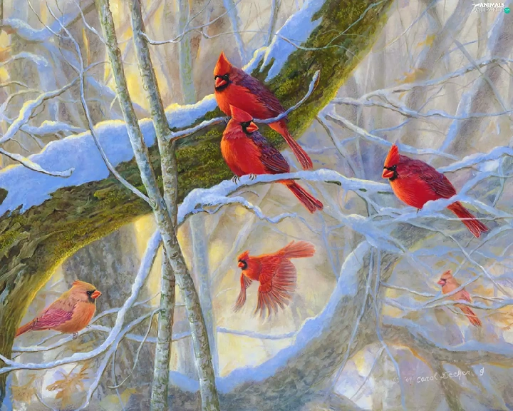 birds, trees, branch pics, Cardinals