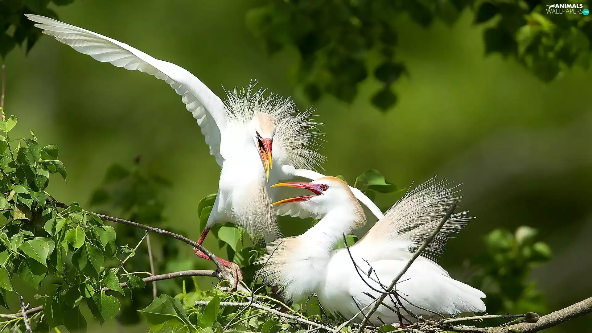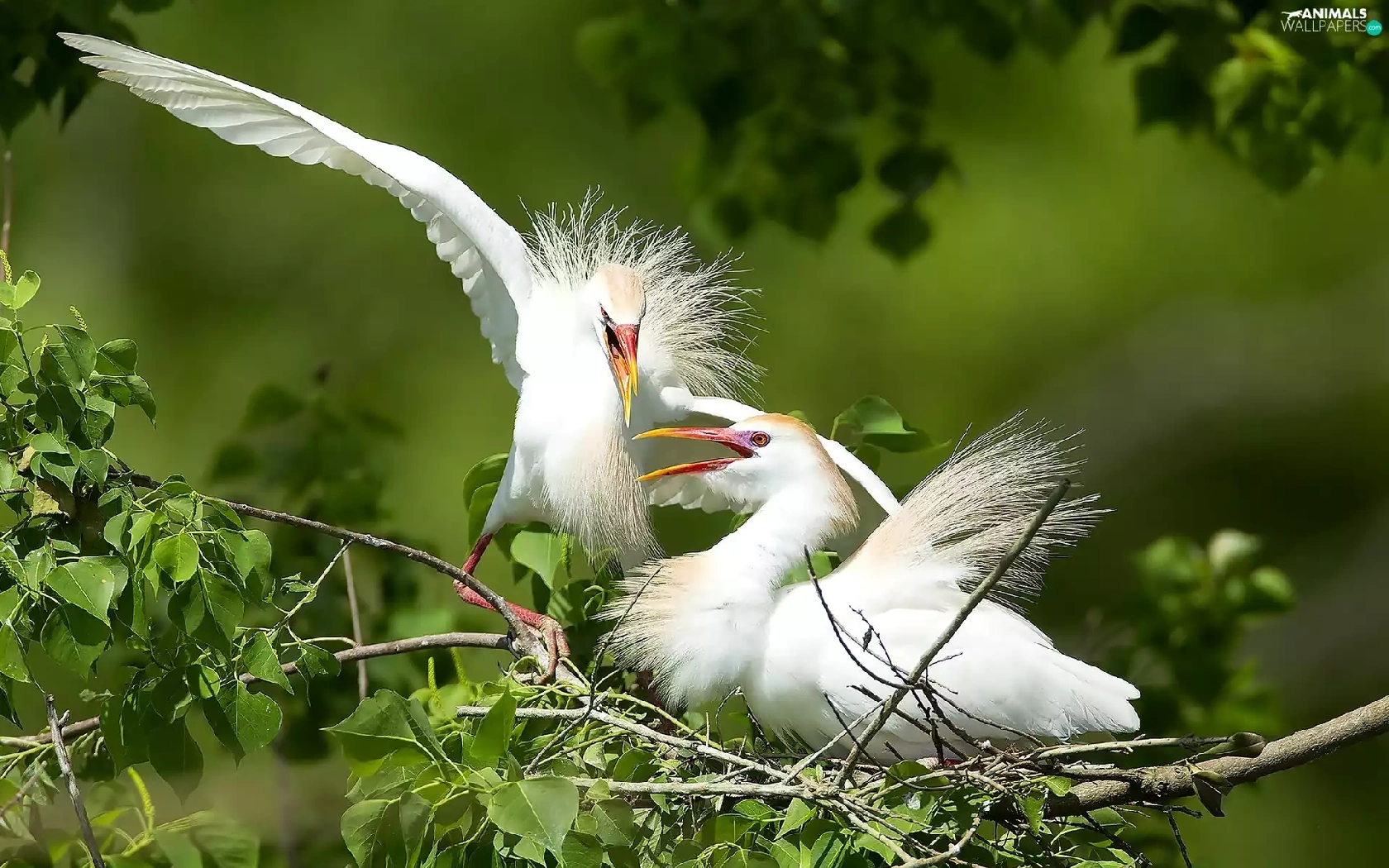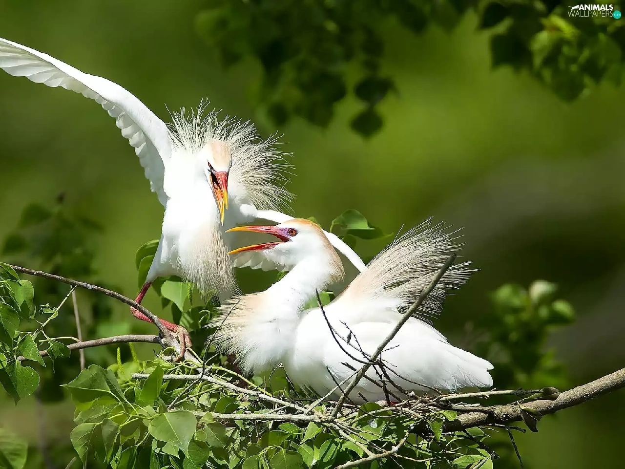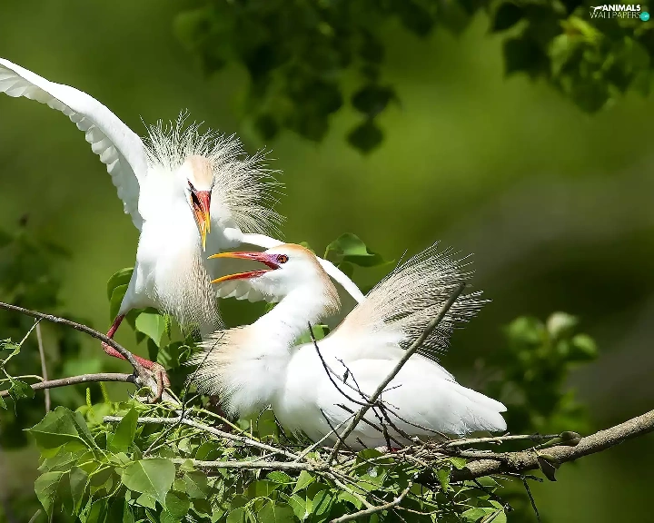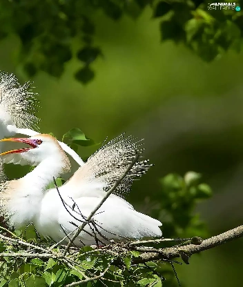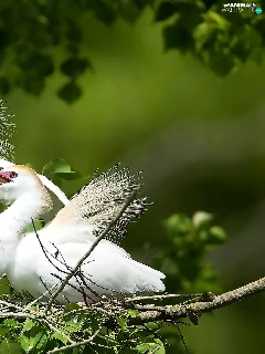 birds, trees, branch, White Herons