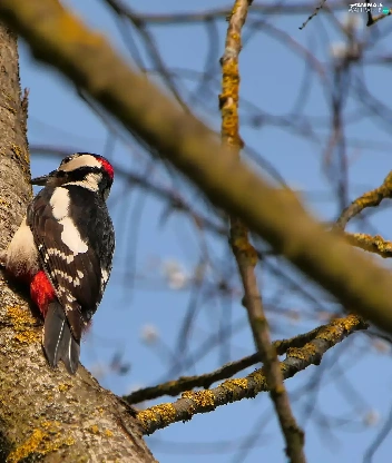 branch pics, woodpecker, trees