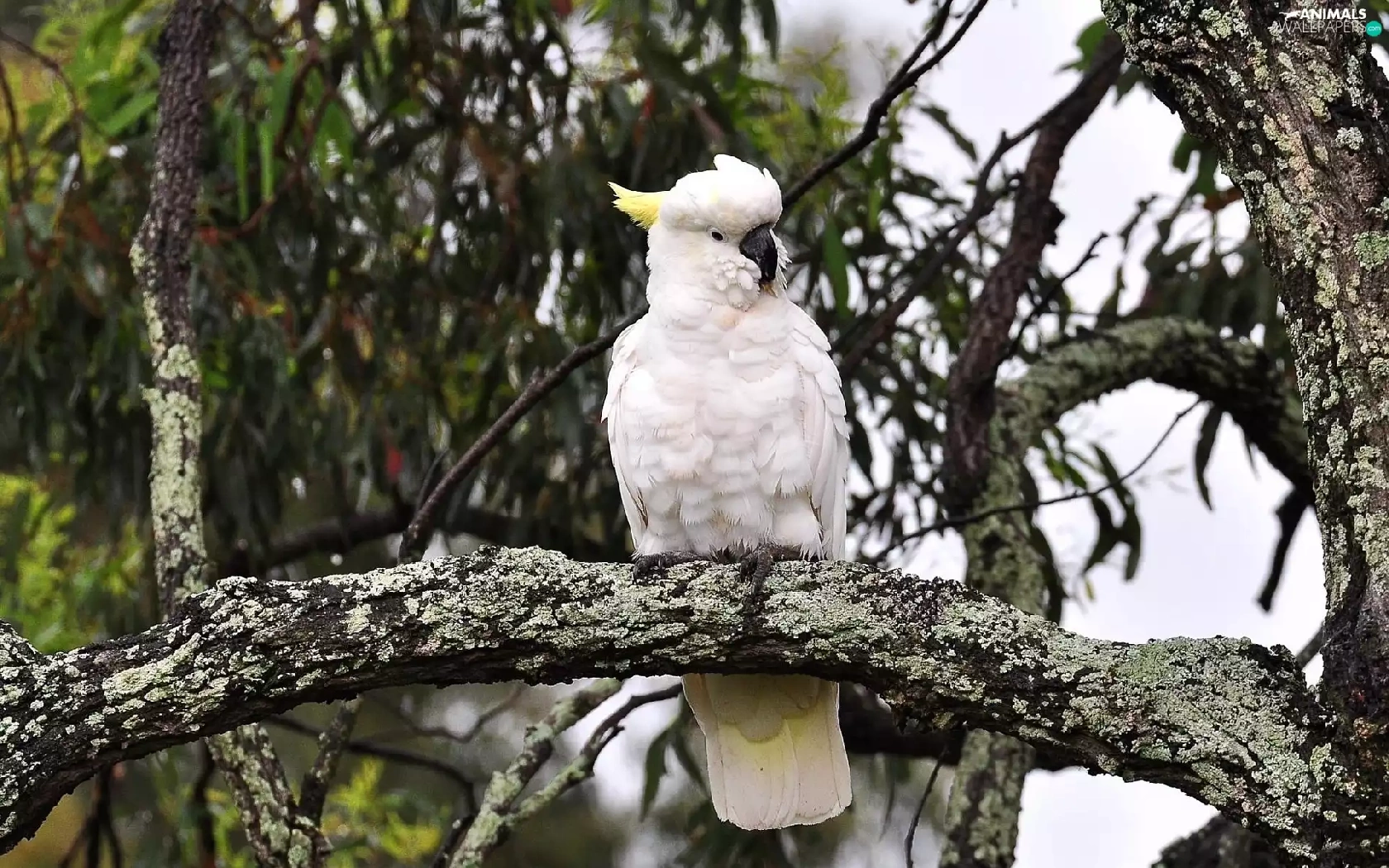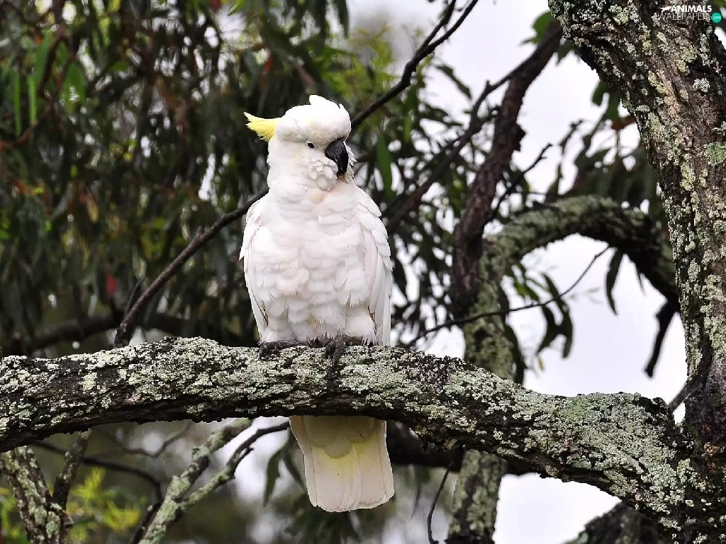 branches, parrot, cockatoo, trees