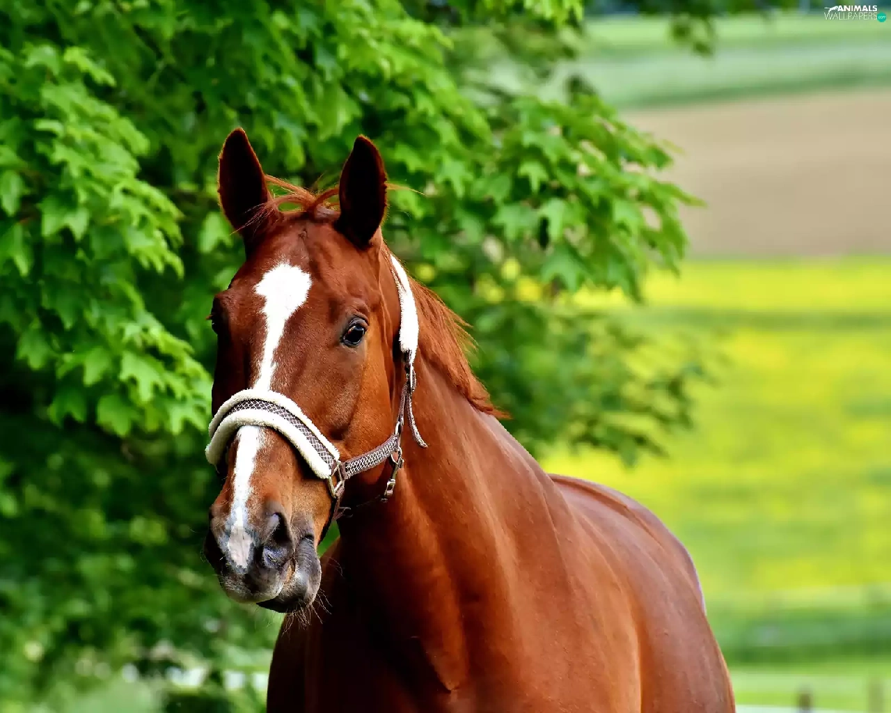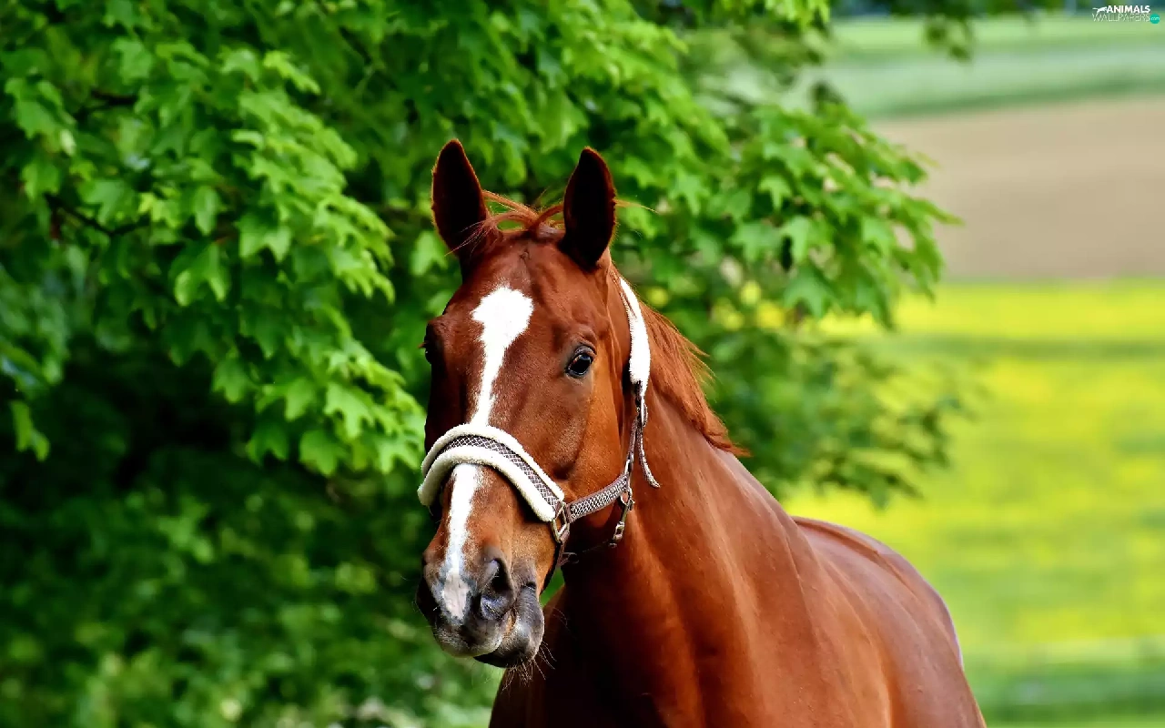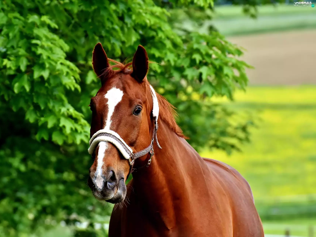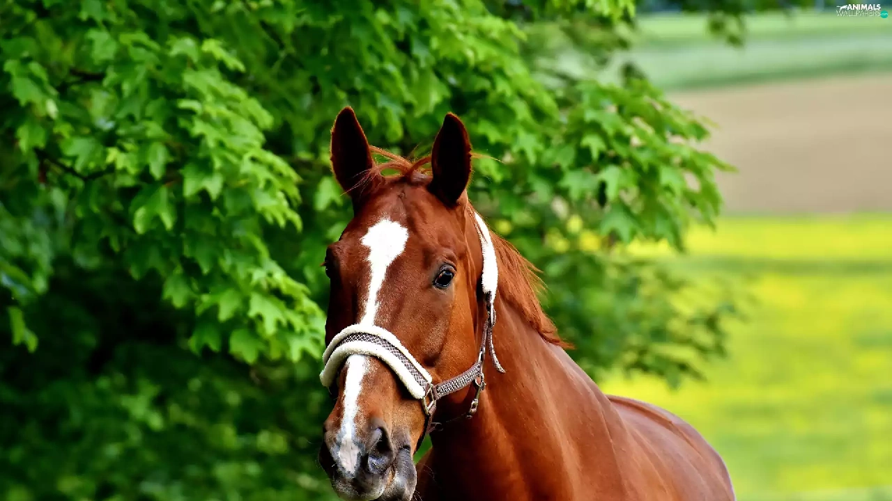 trees, Horse, bridle