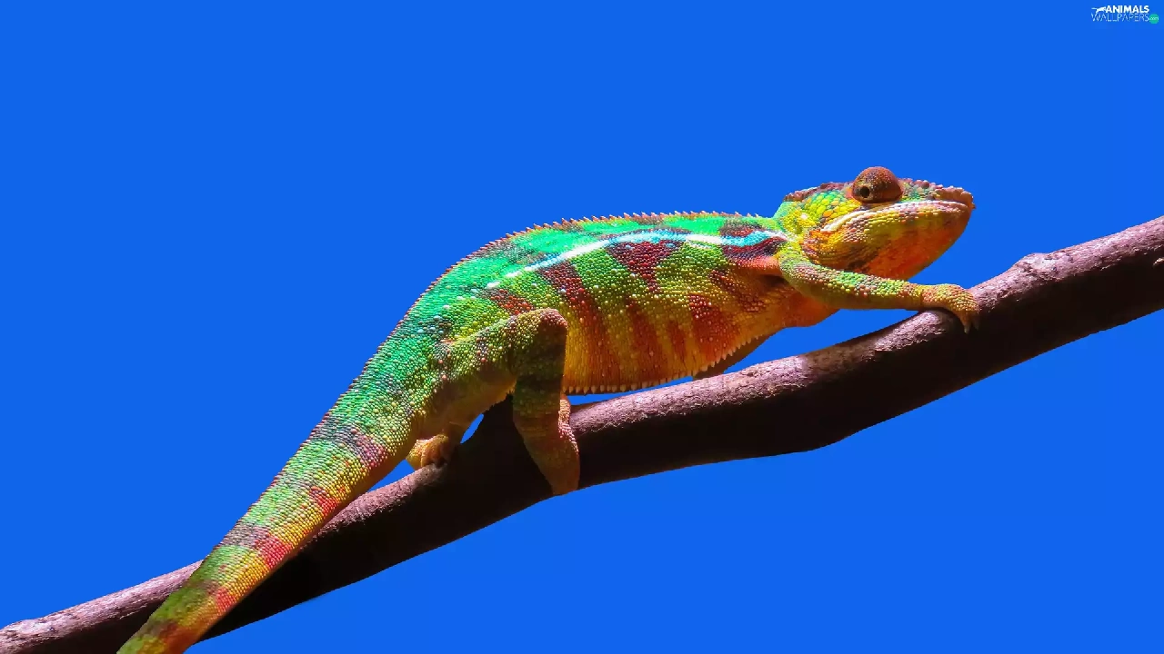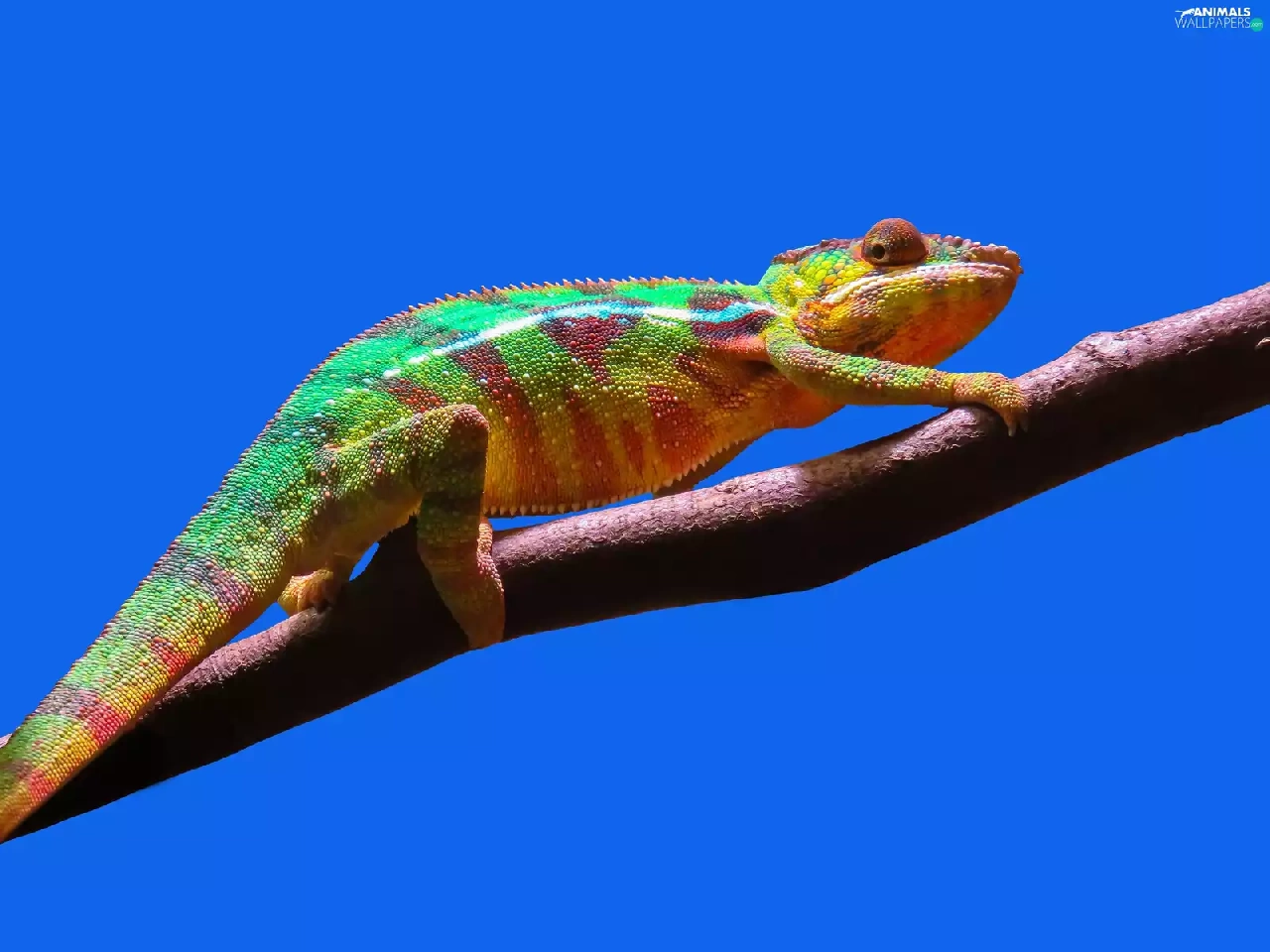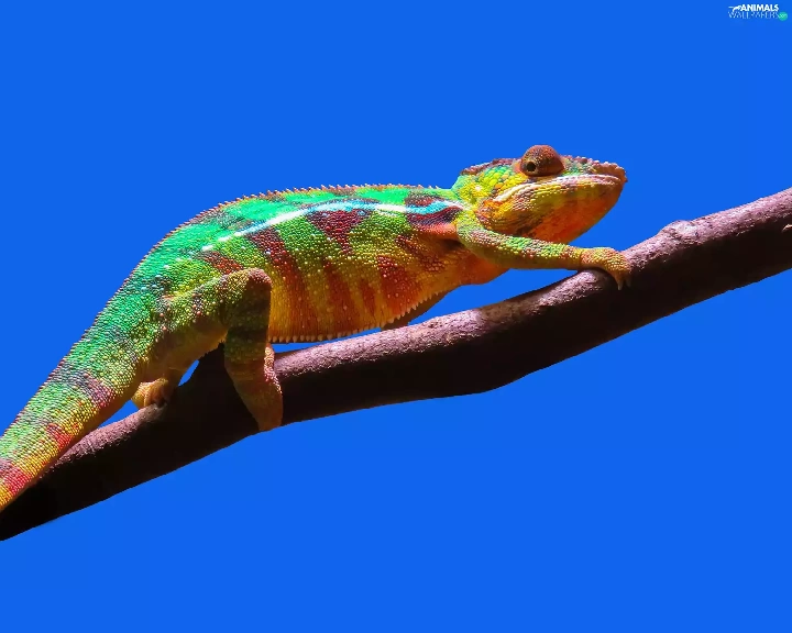 Cameleon, branch, Sky, trees