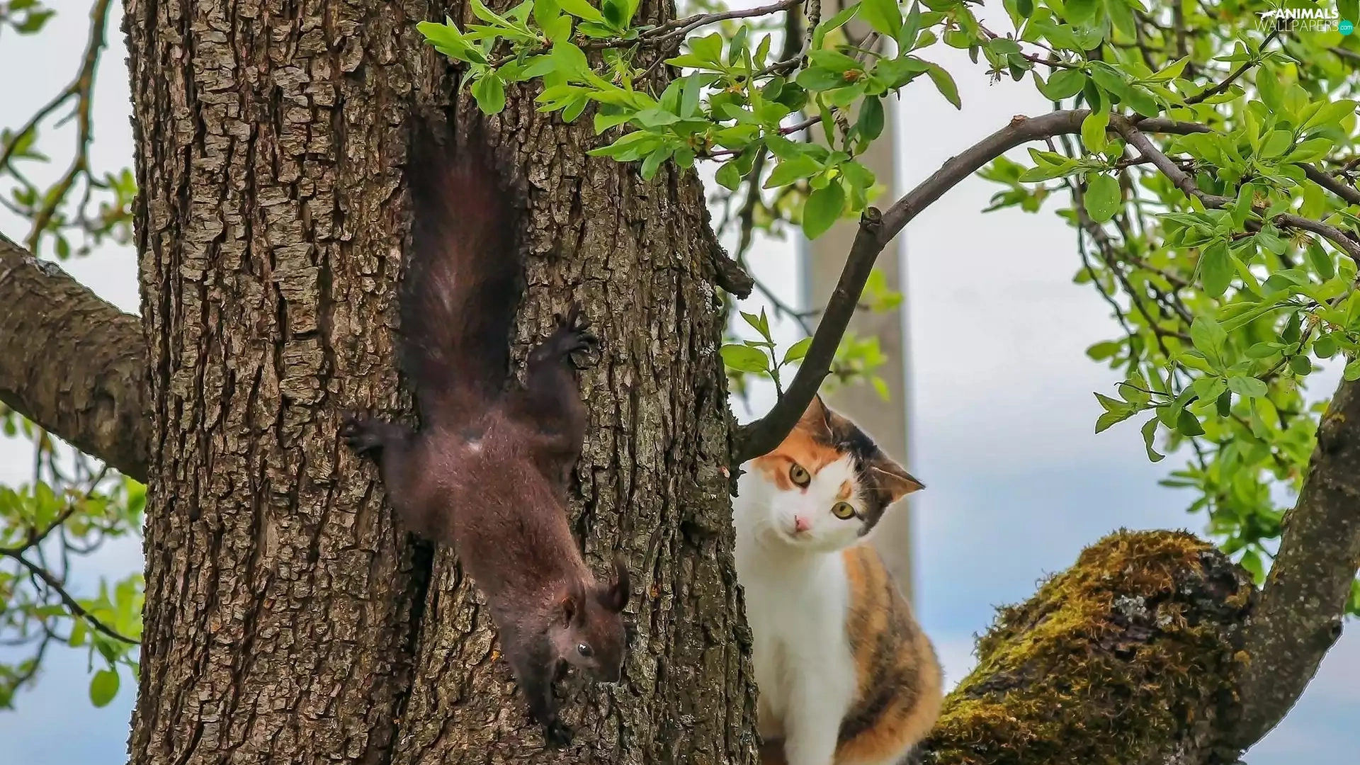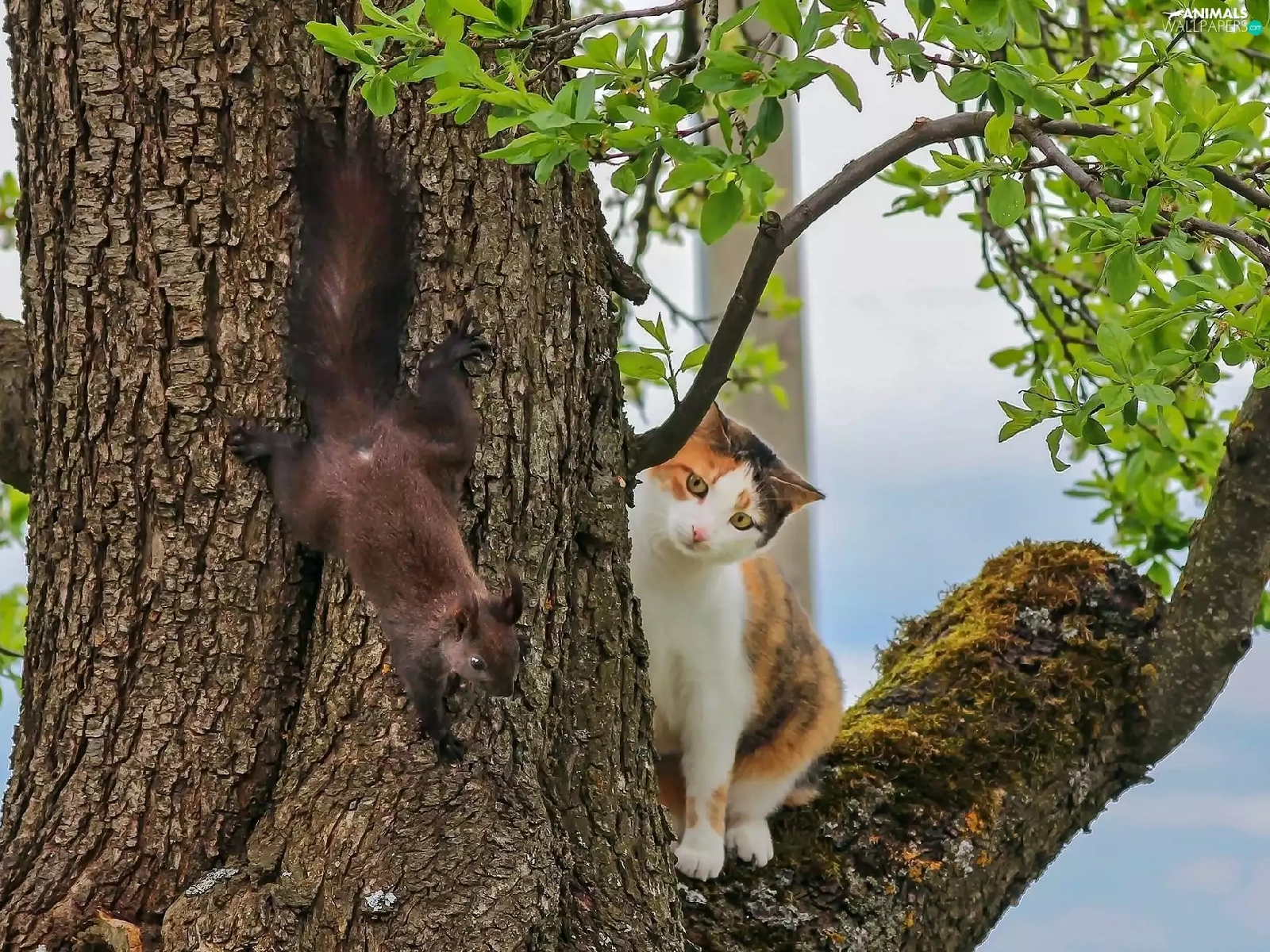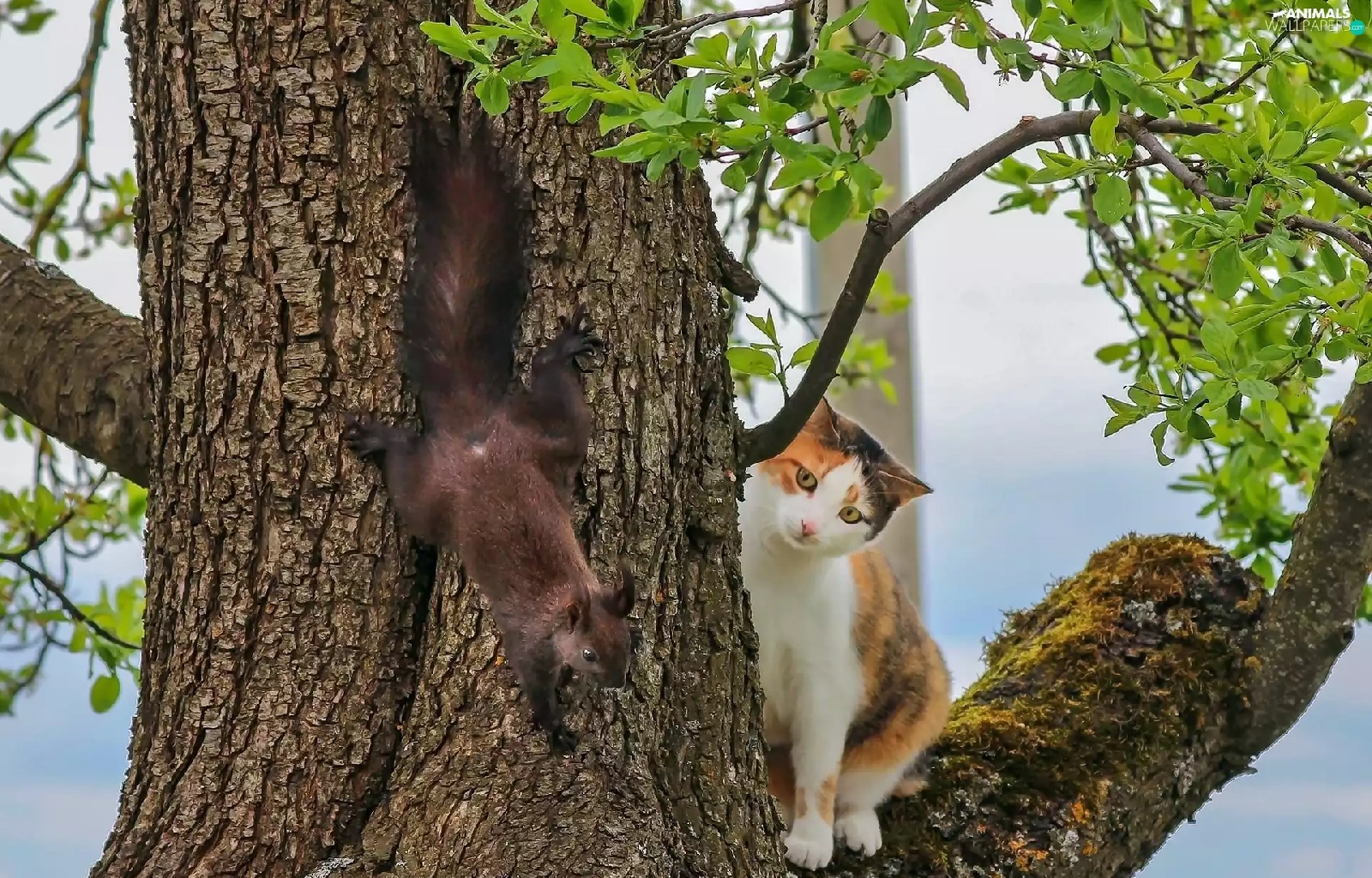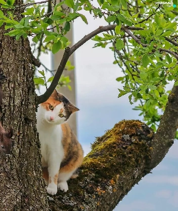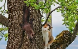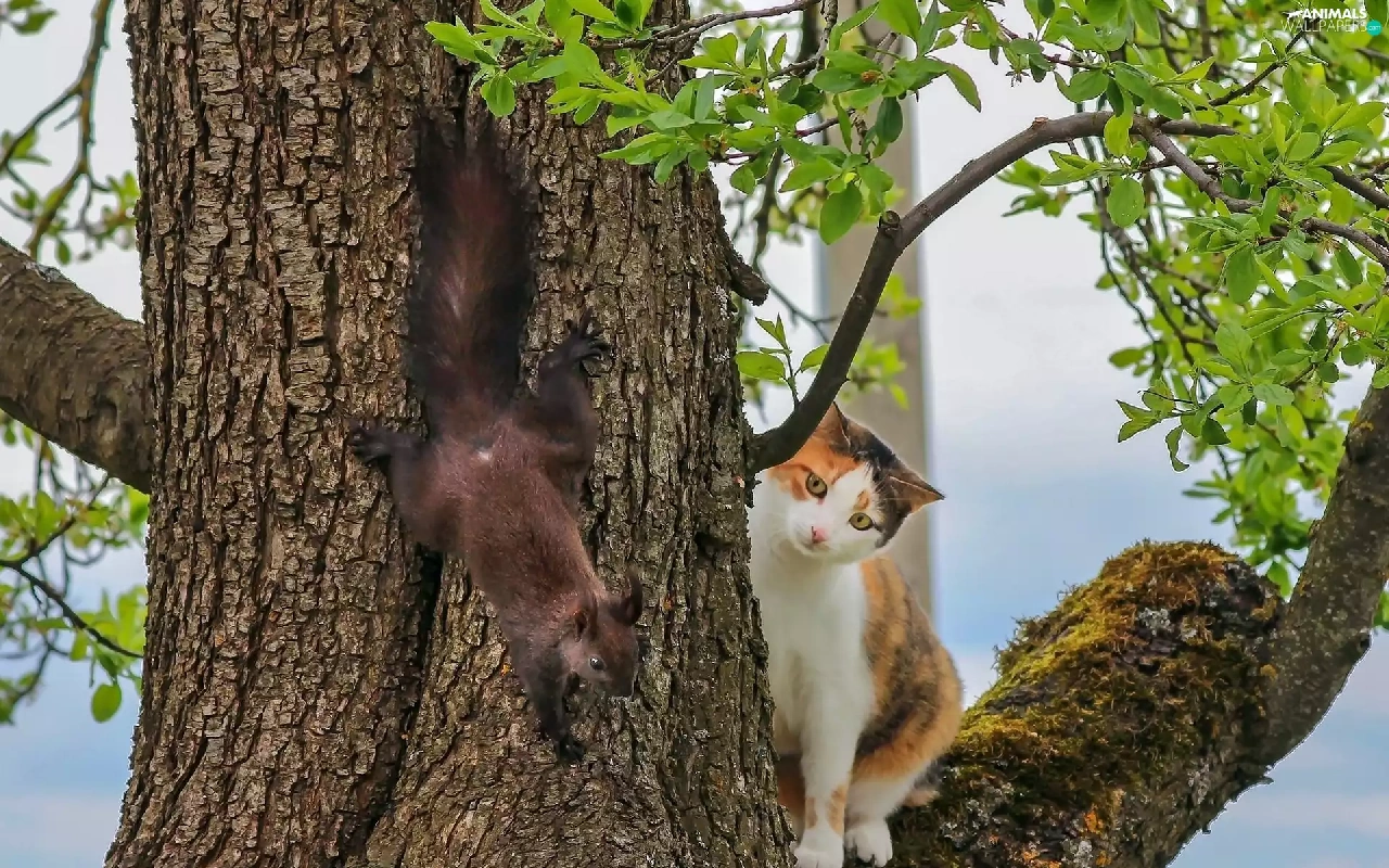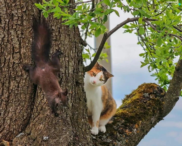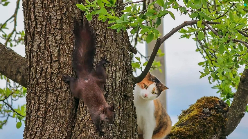 trees, squirrel, cat