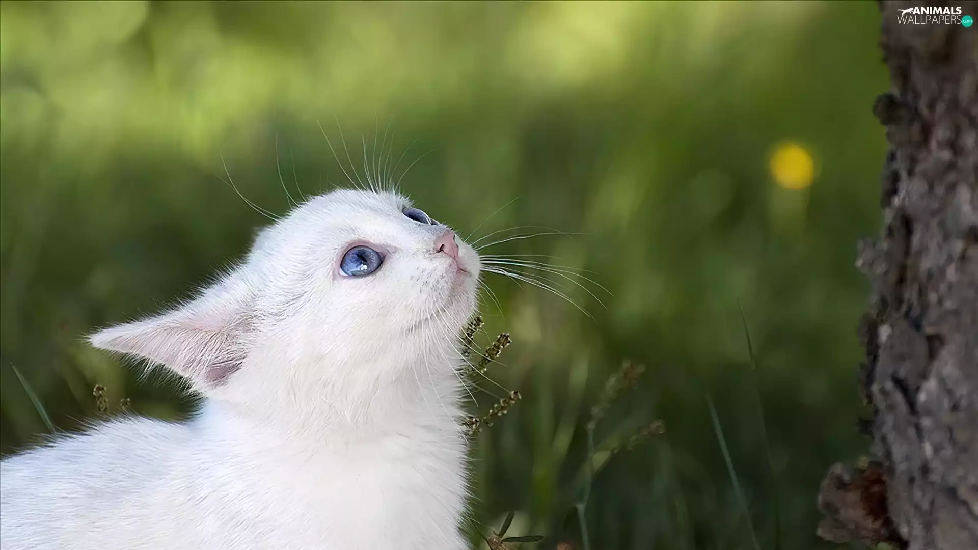 Eyes, trees, cat, Blue, White