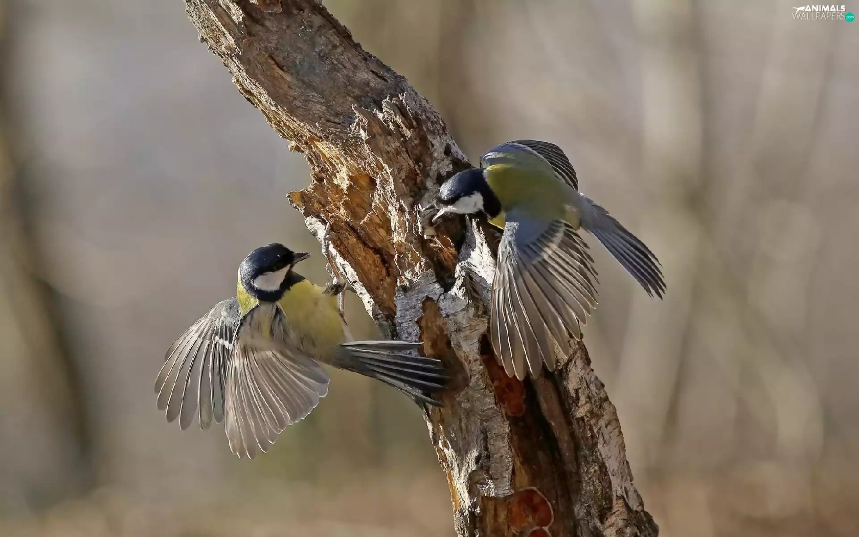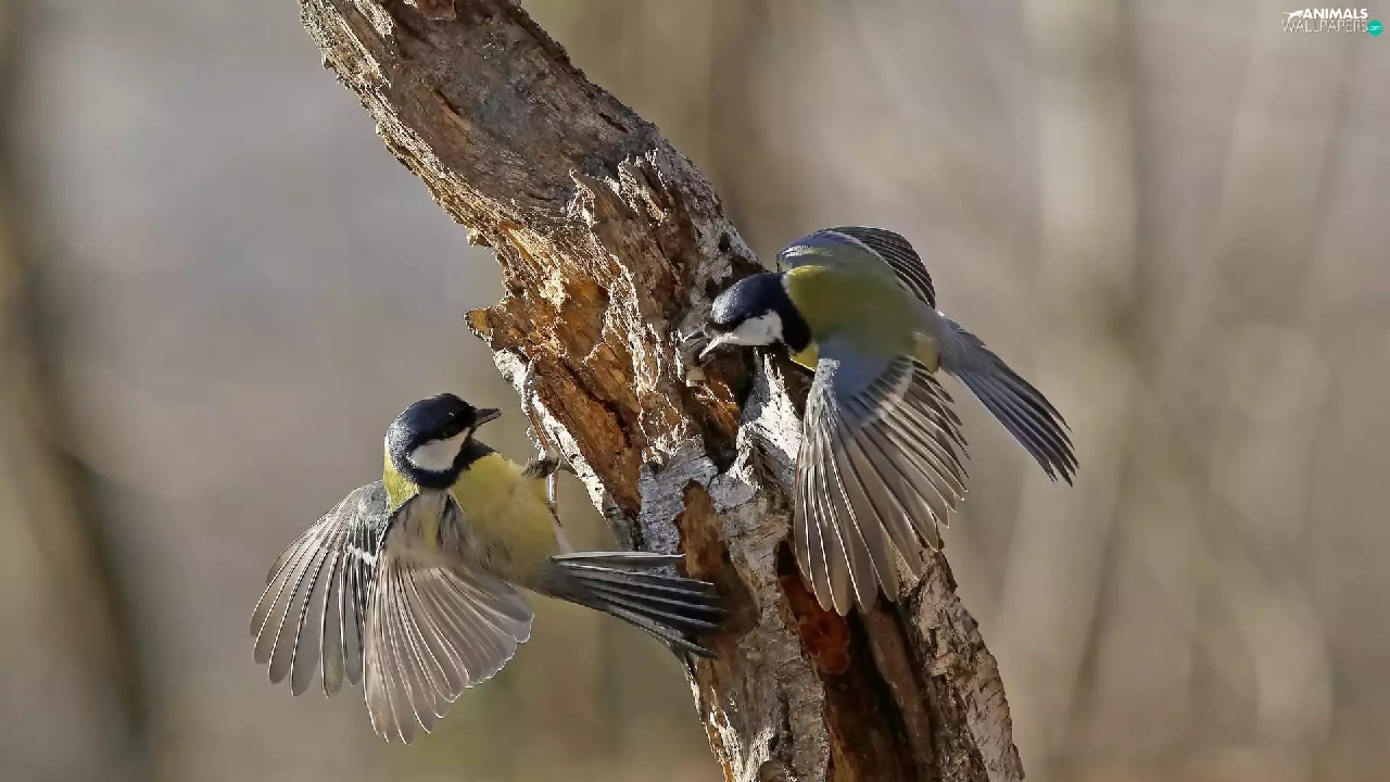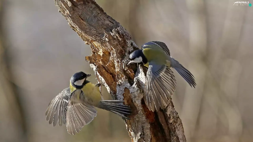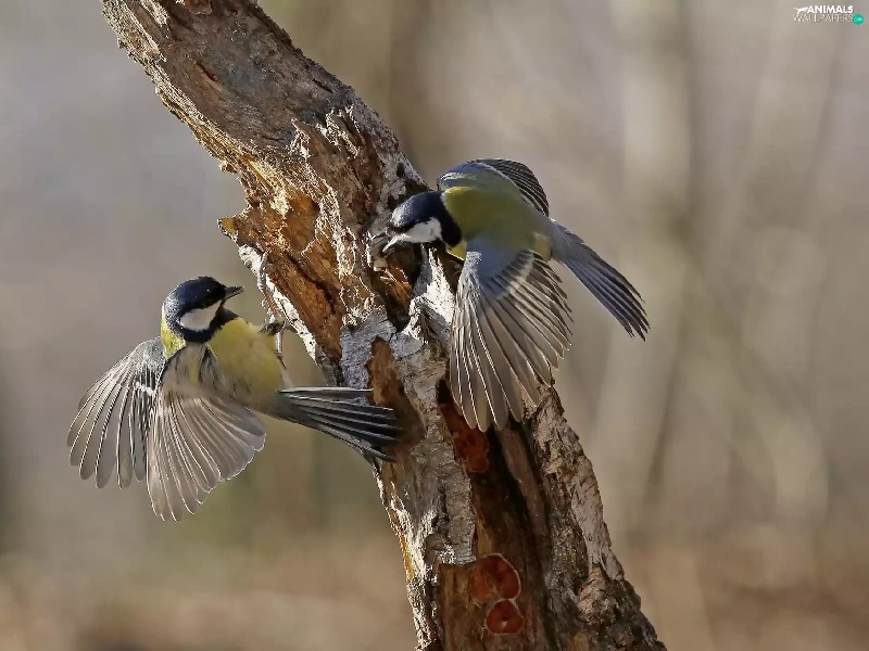 trees, Two, Chickadees