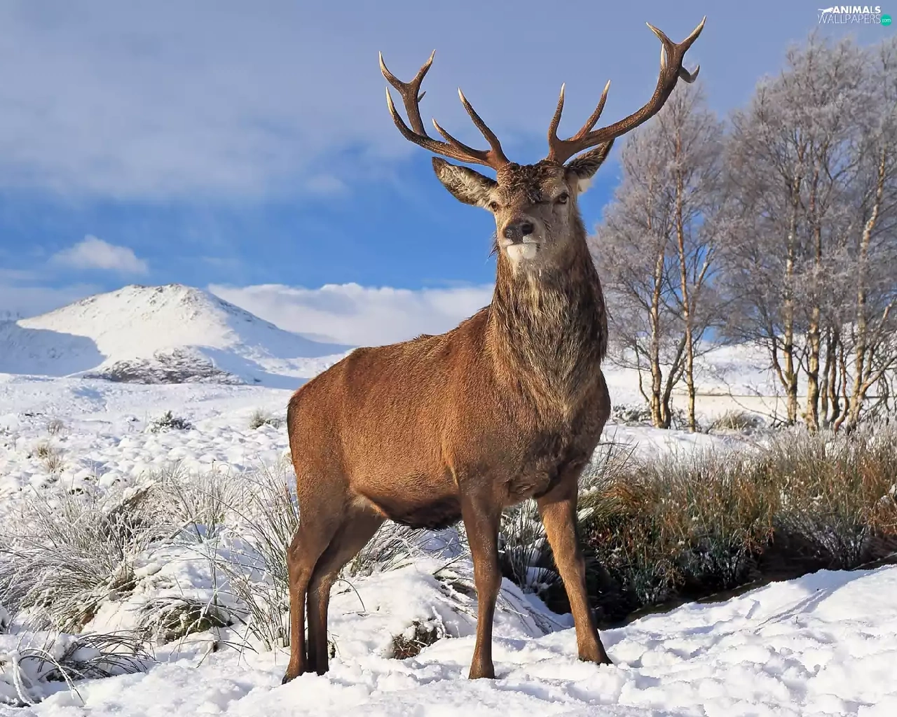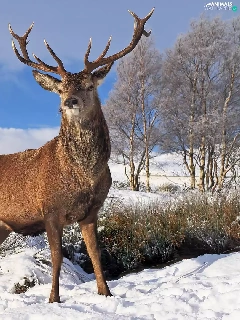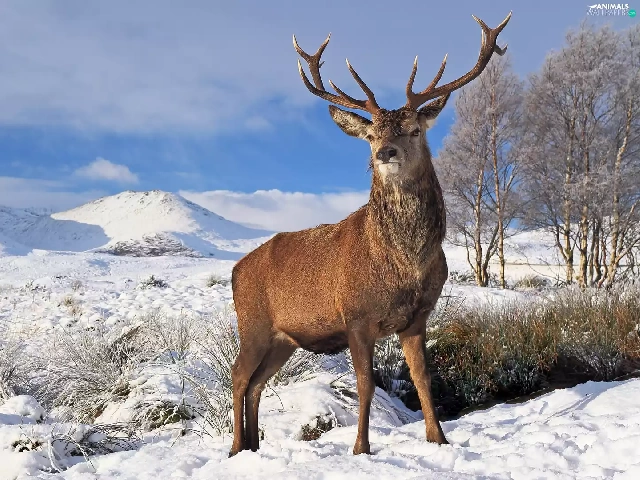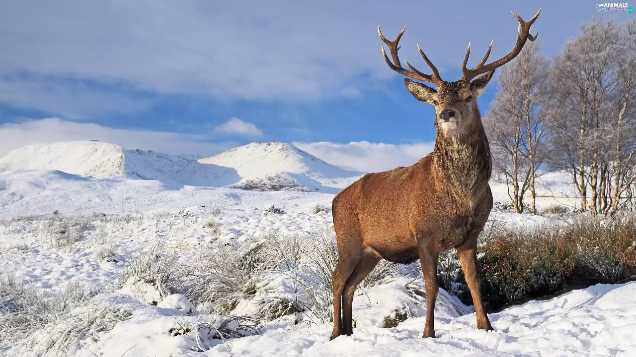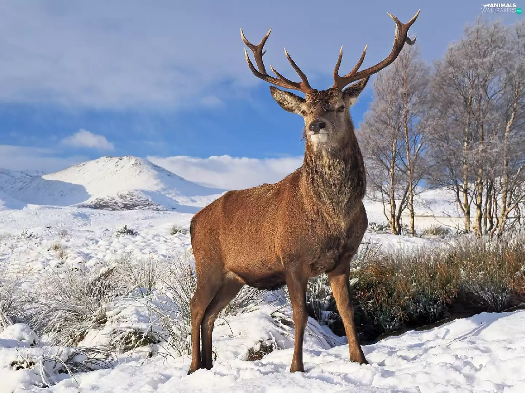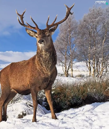 deer, viewes, winter, trees