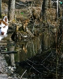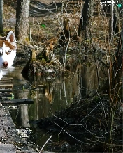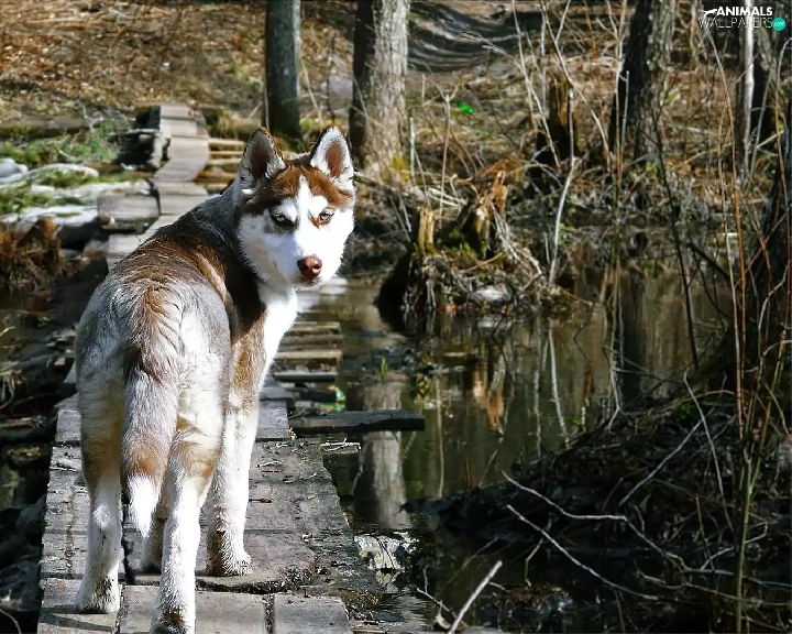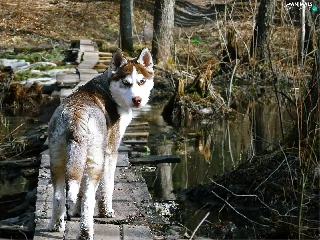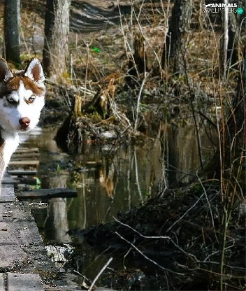 dog, viewes, water, trees