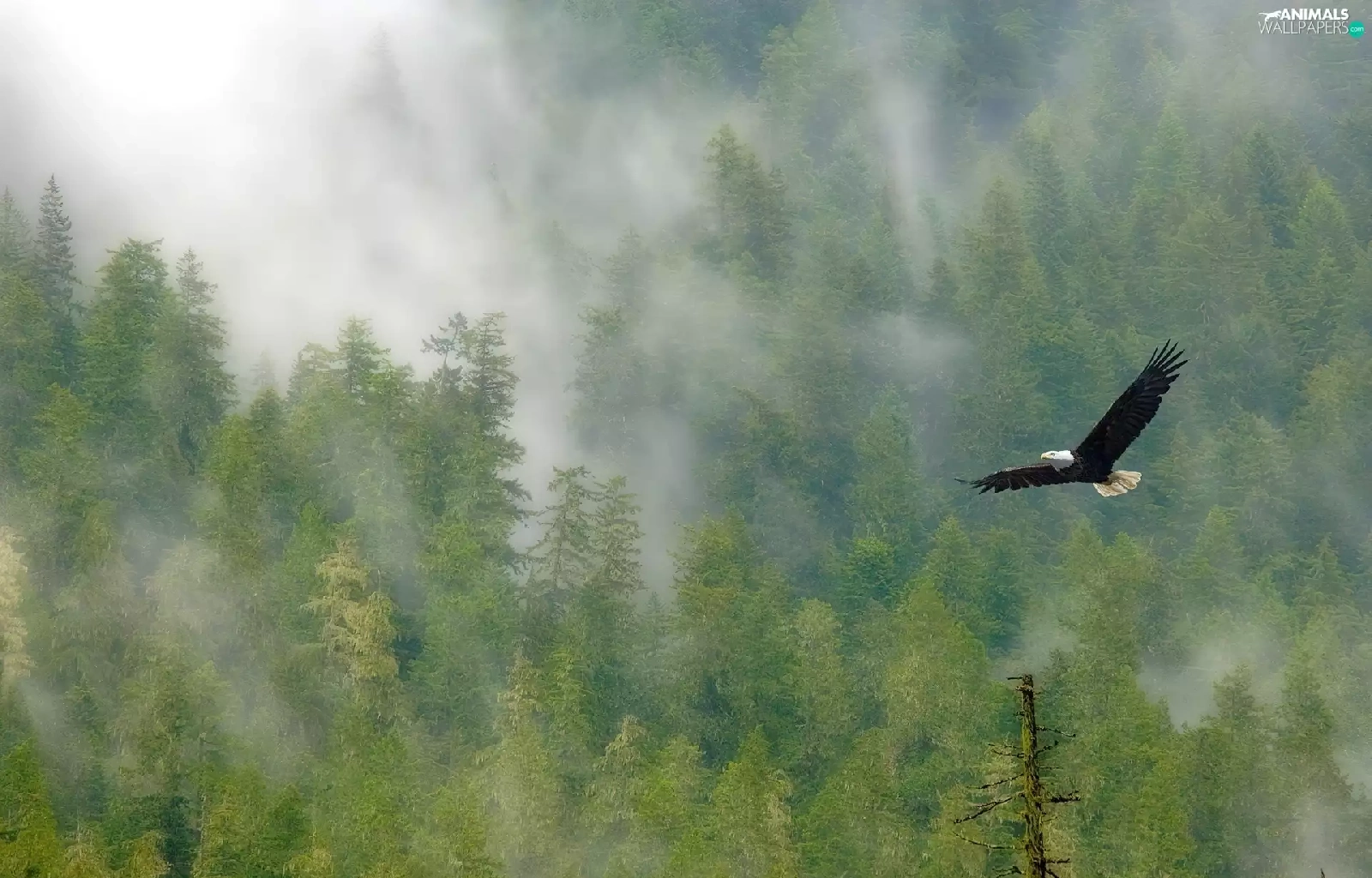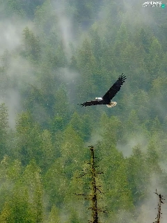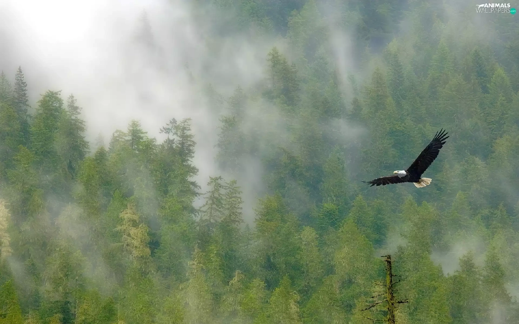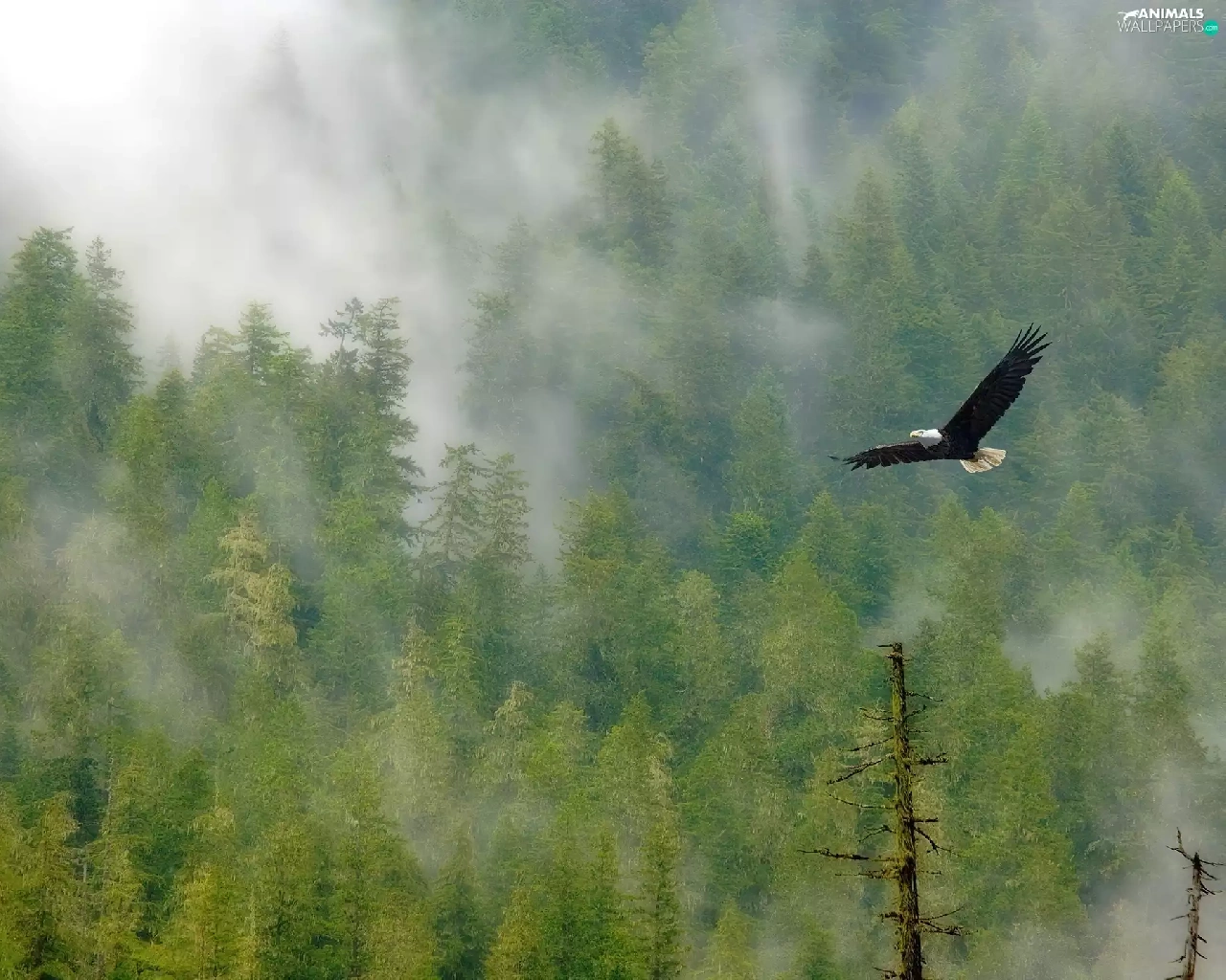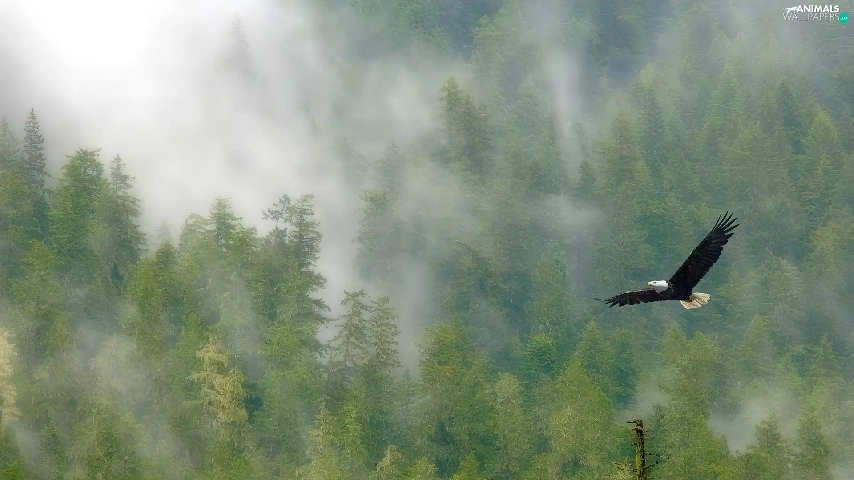 eagle, viewes, Fog, trees