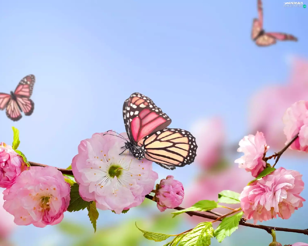 trees, butterflies, flourishing