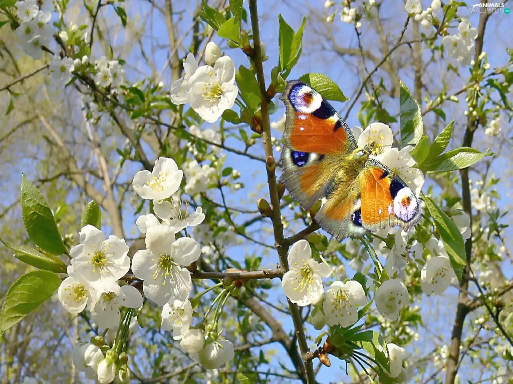 trees, butterfly, flourishing