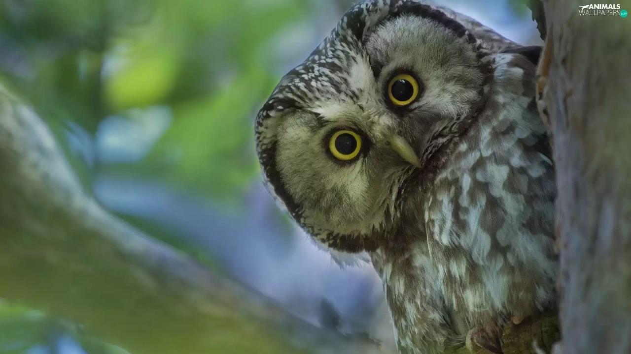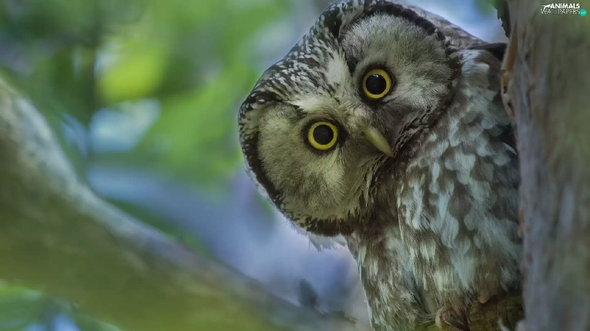 trees, owl, forest