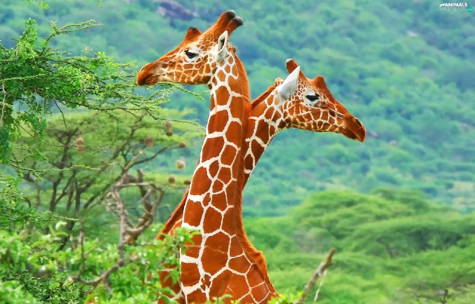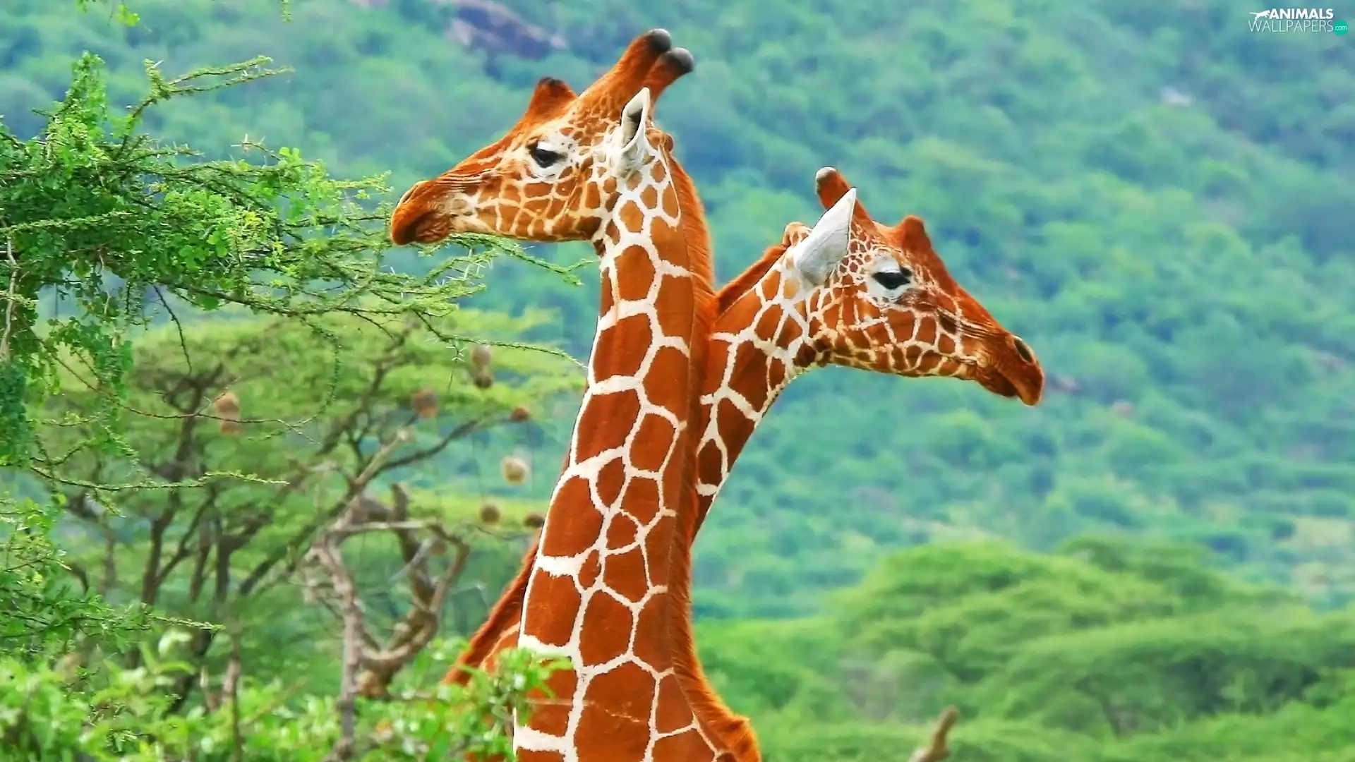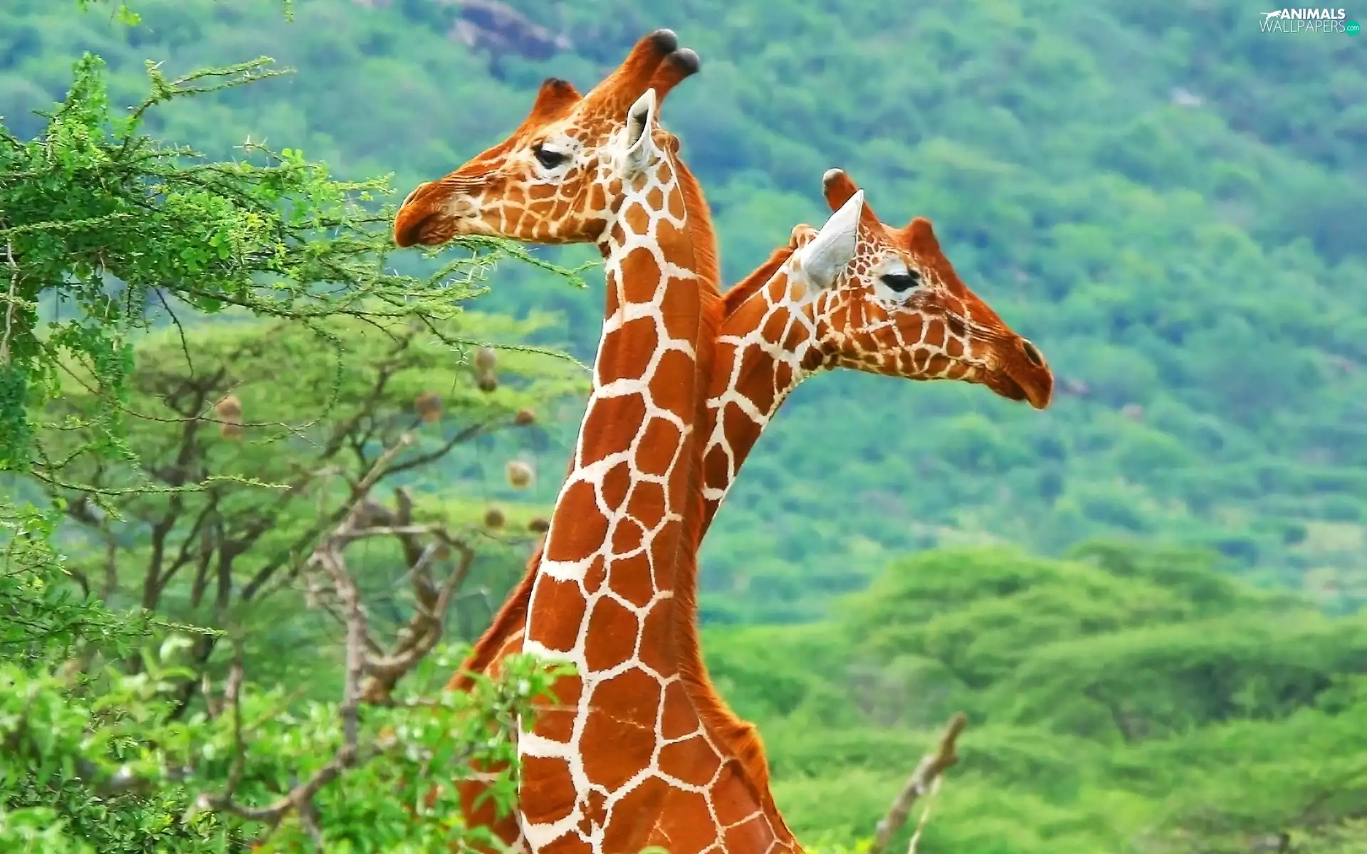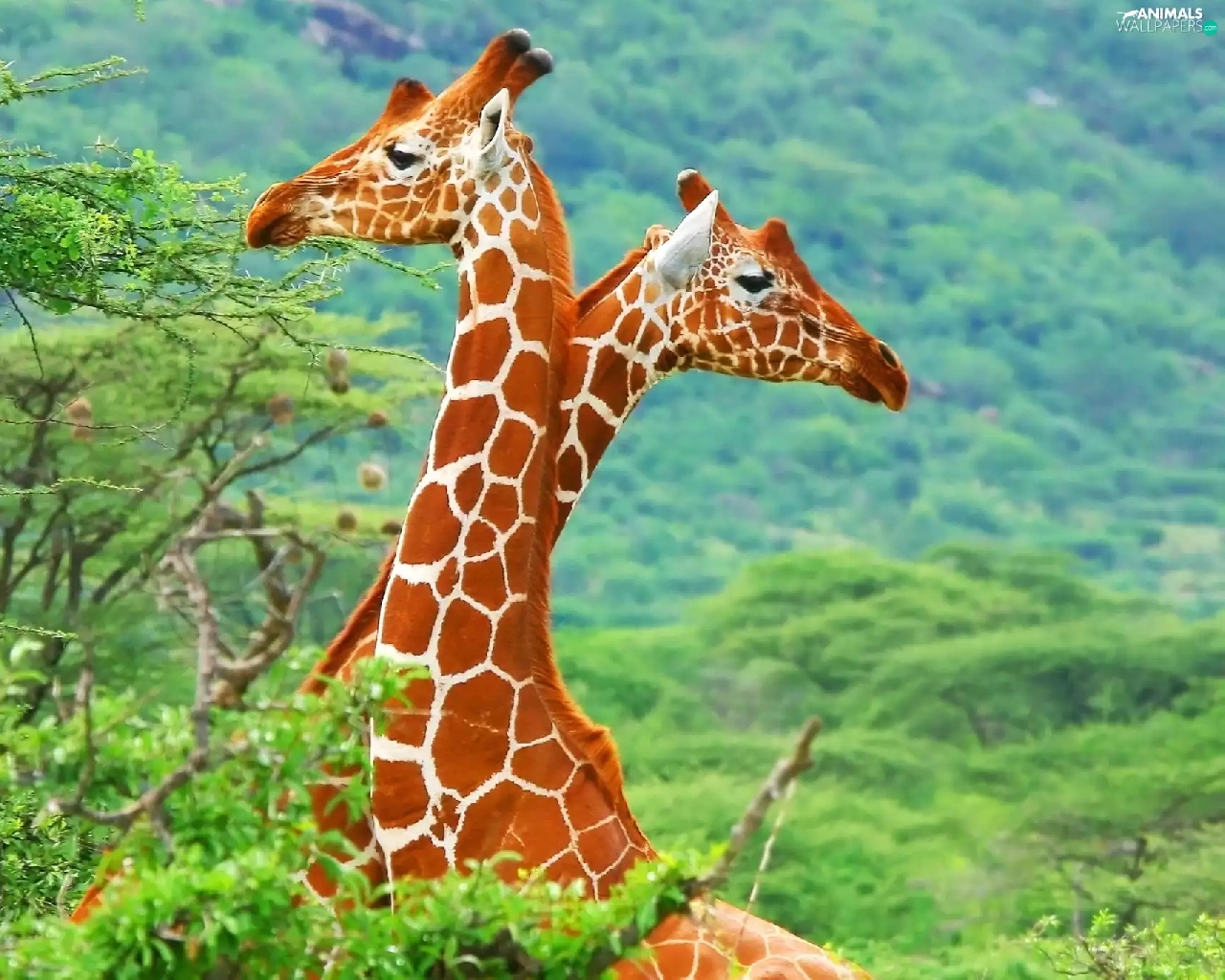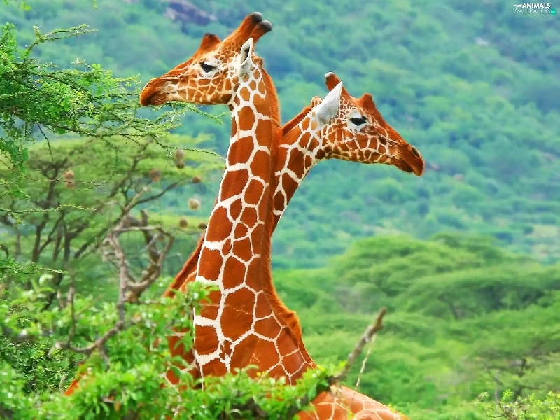 trees, Two, giraffe