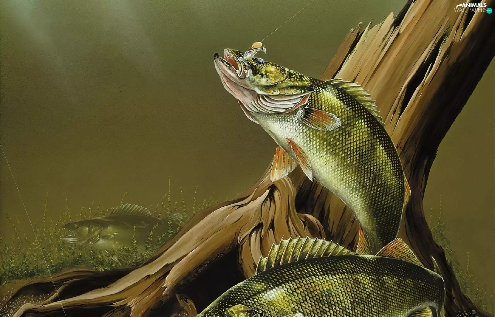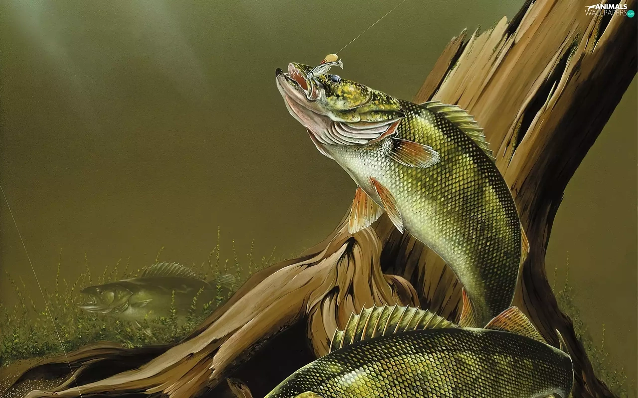 trees, fish, hook