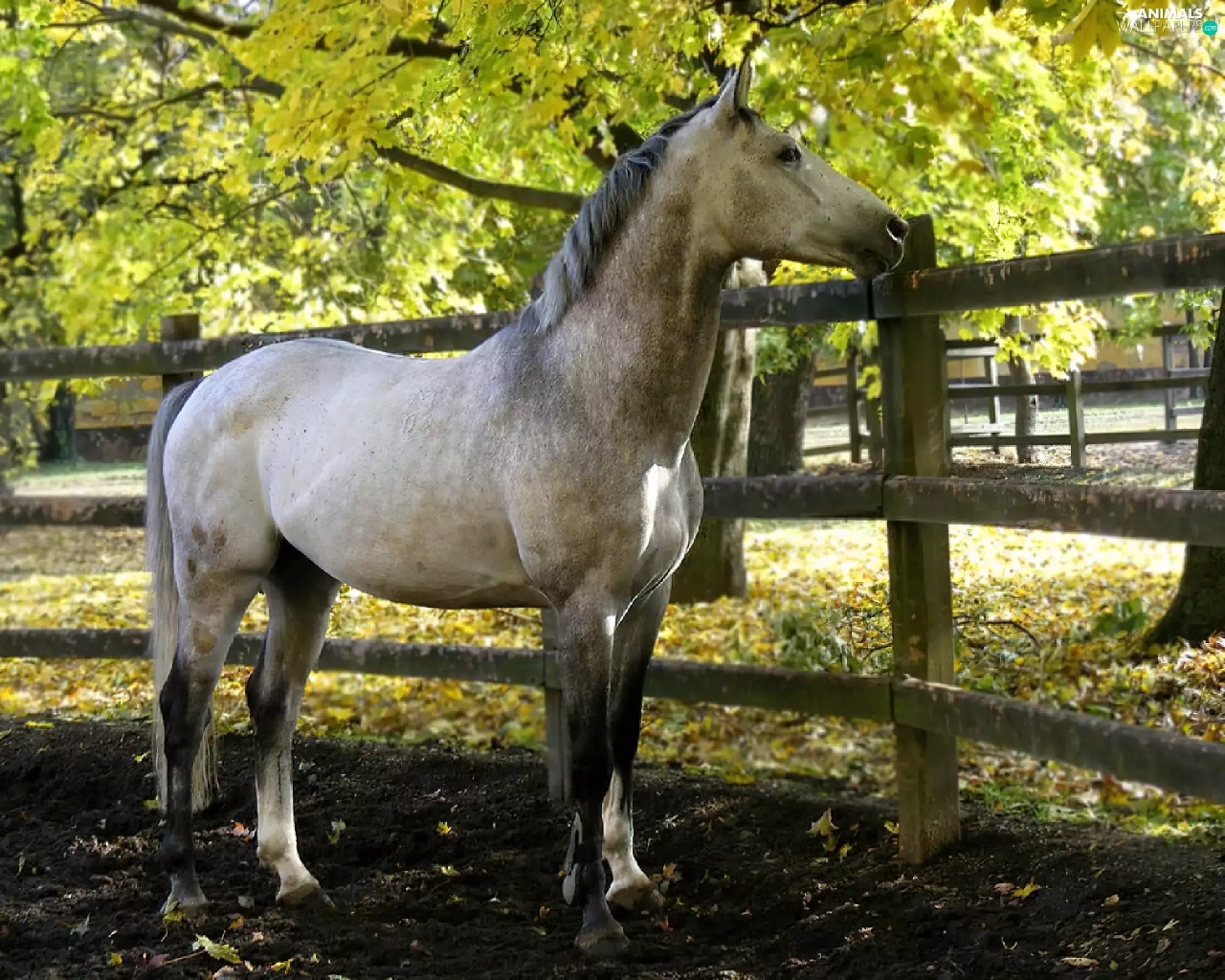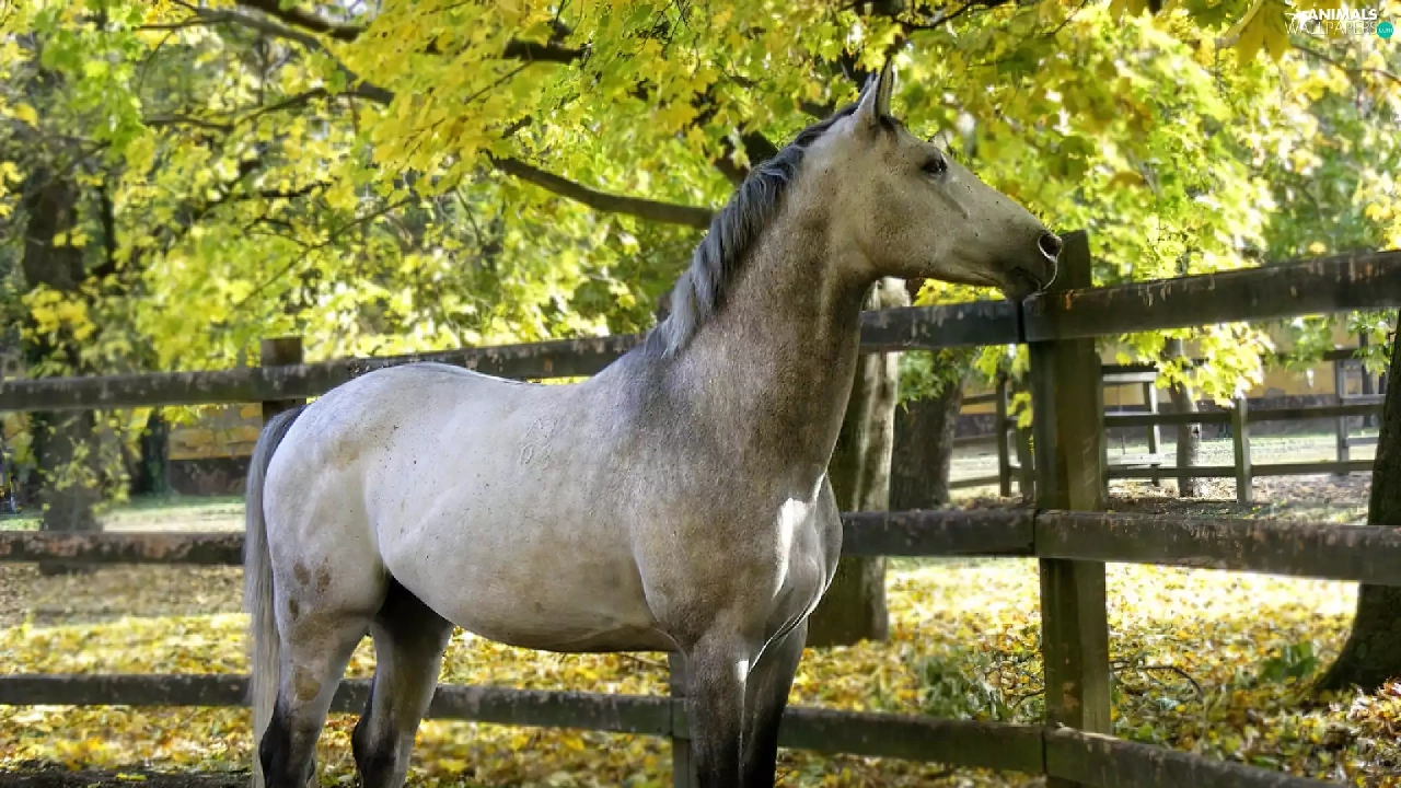 Horse, viewes, Fance, trees