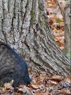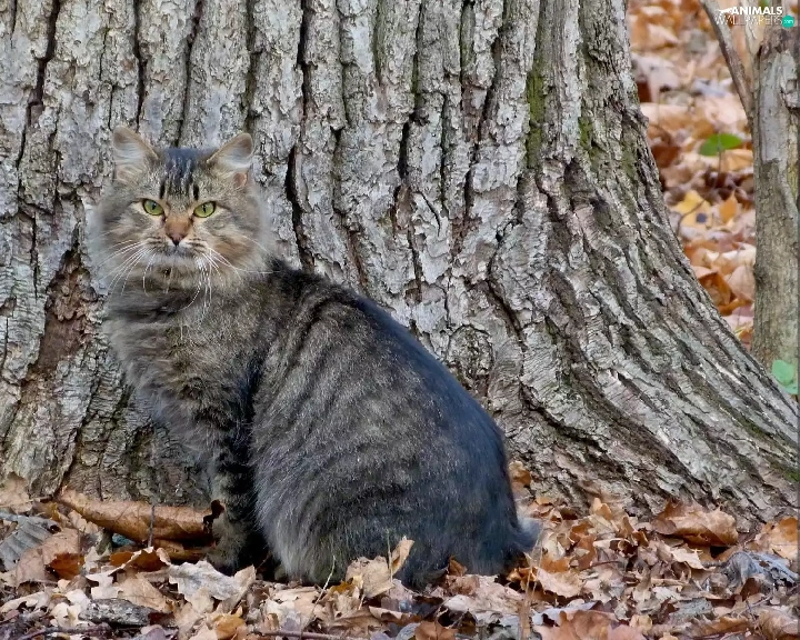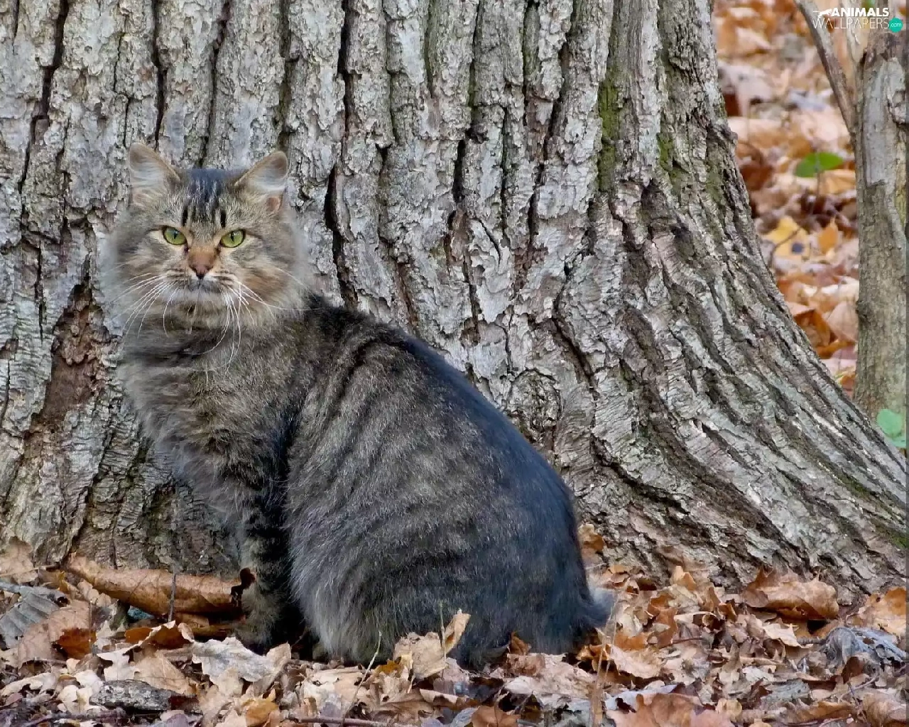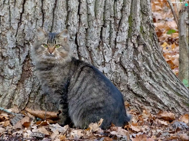 trees, Gray, kitten