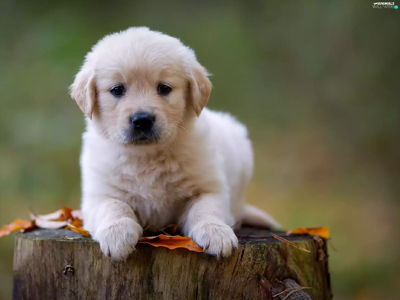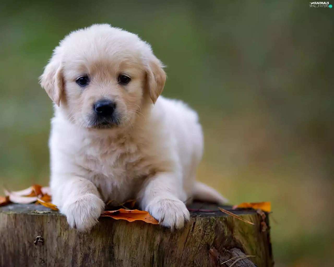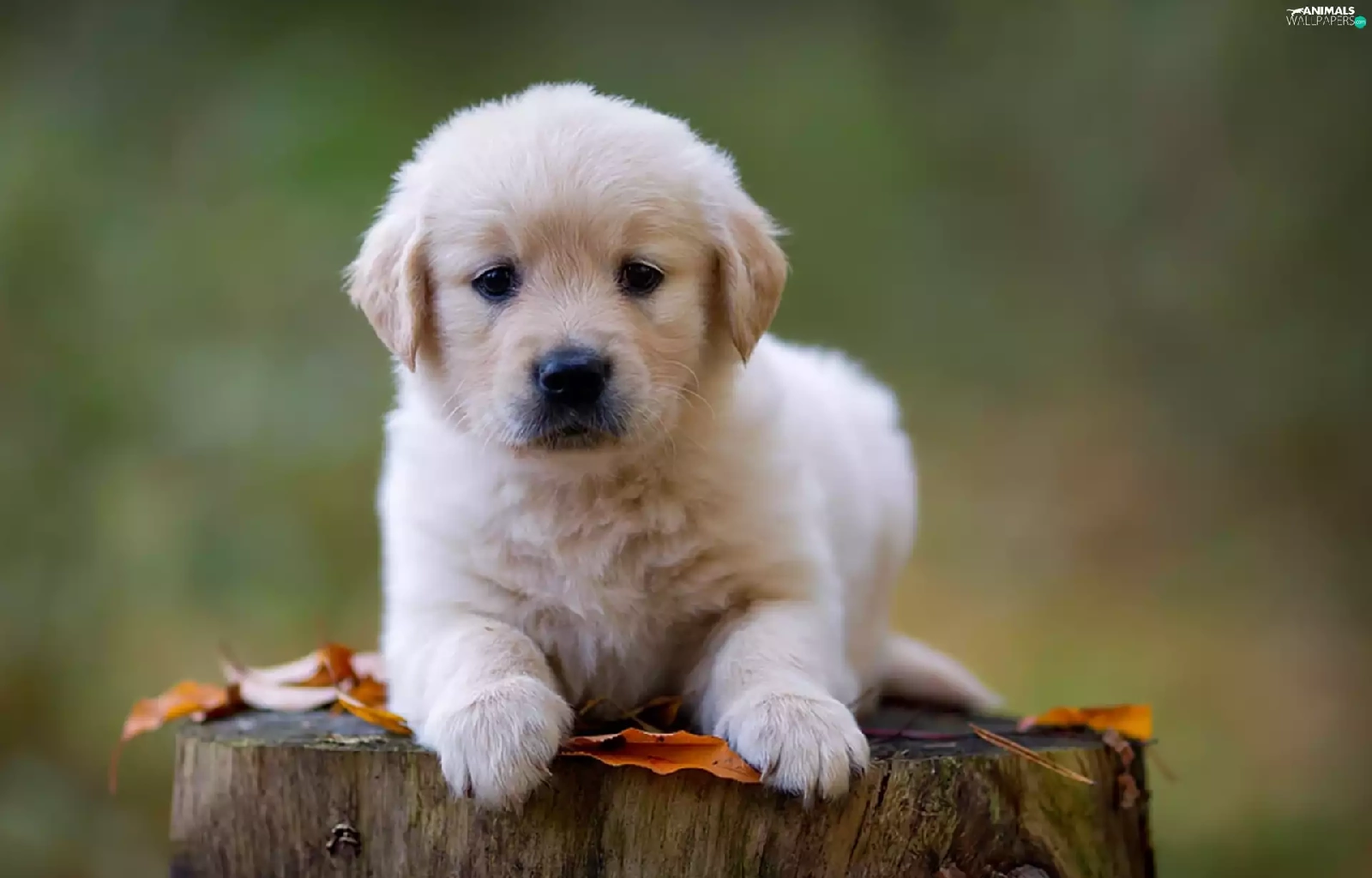golden, retriever, Leaf, trunk, viewes, puppie, honeyed, trees