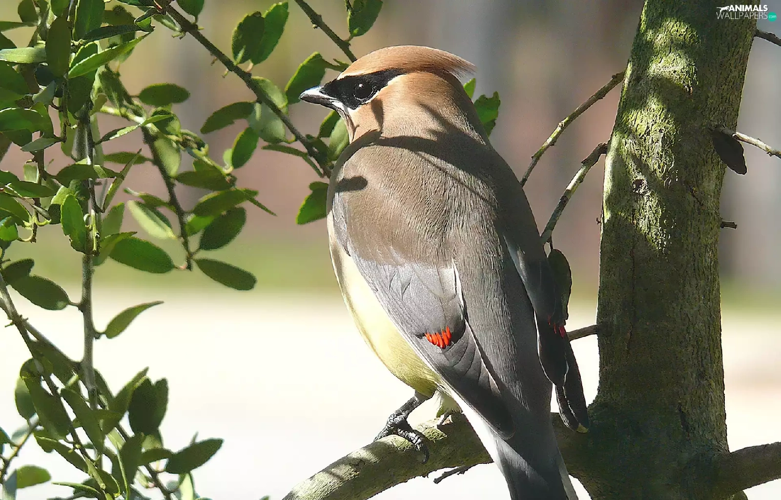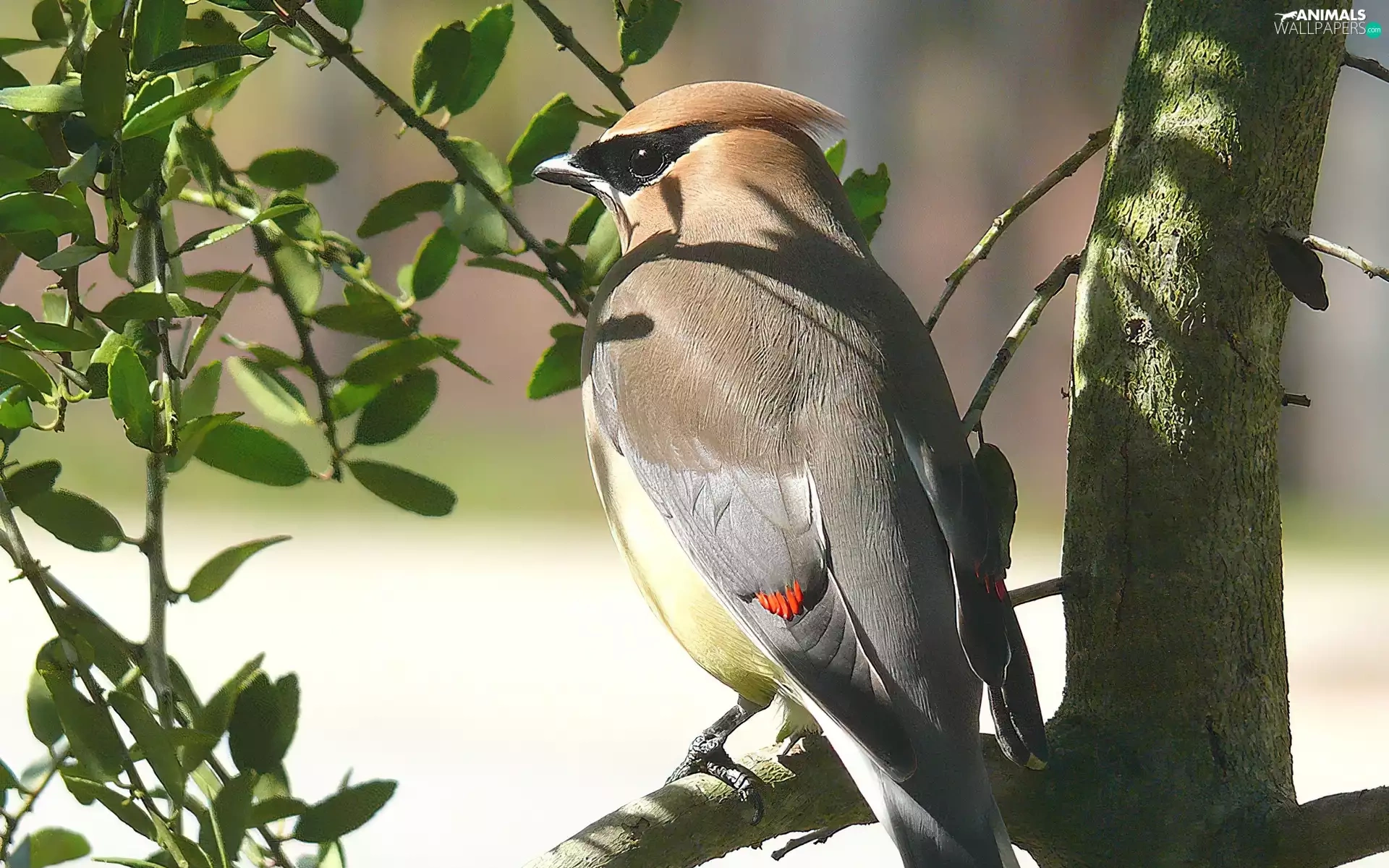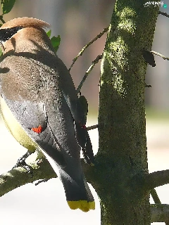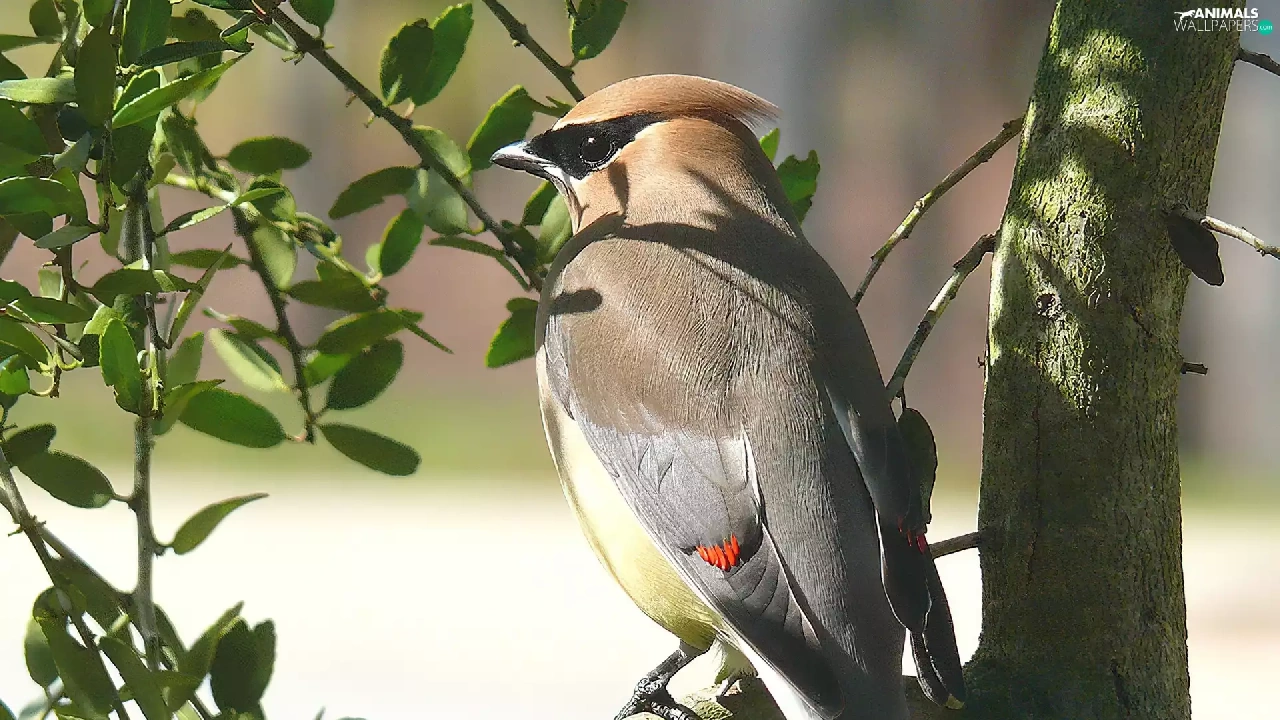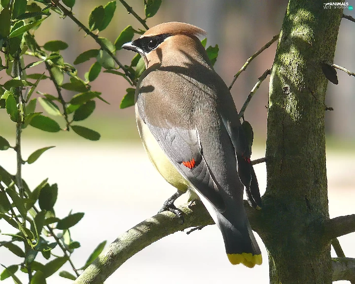 Leaf, Cedar Waxwing, trees