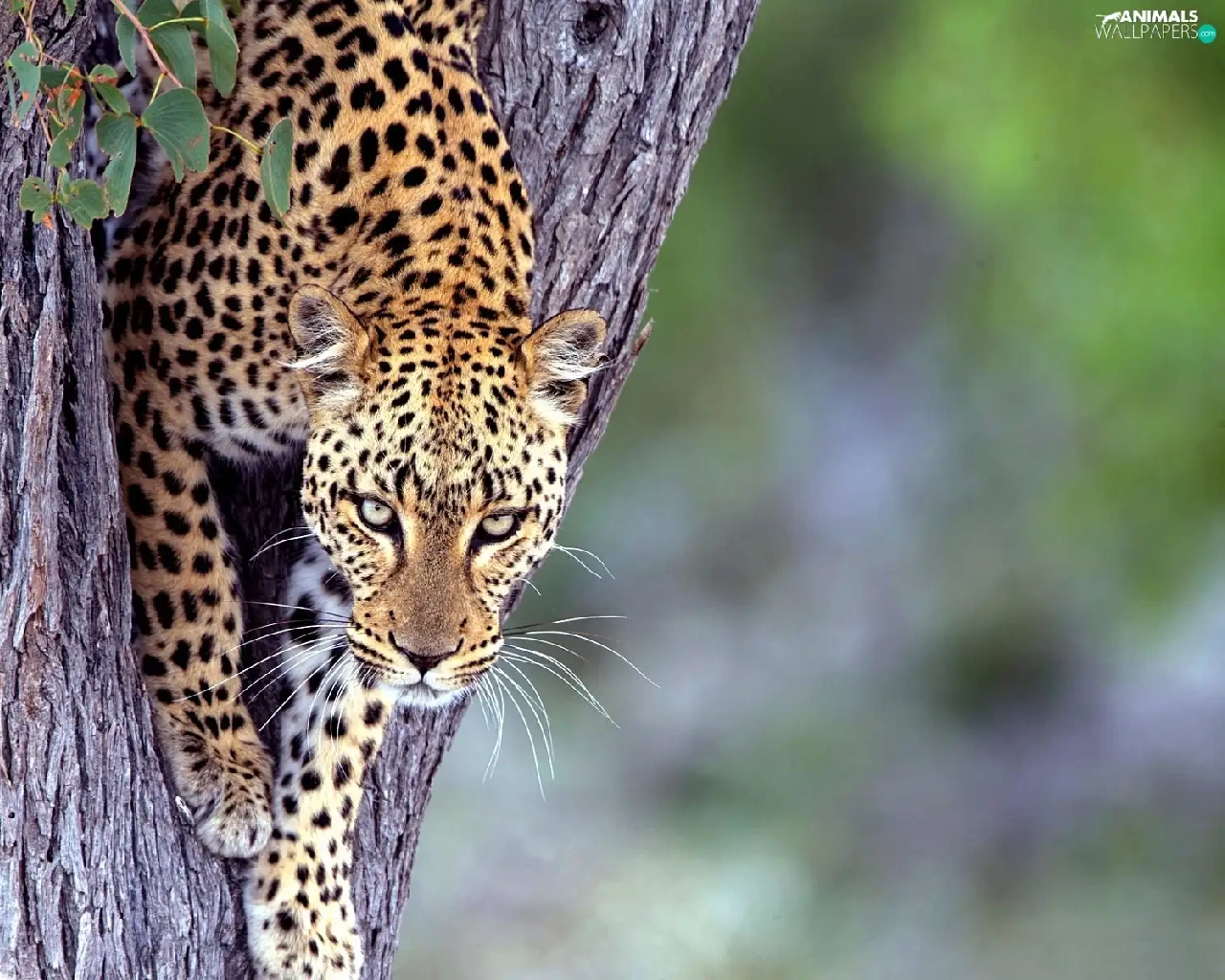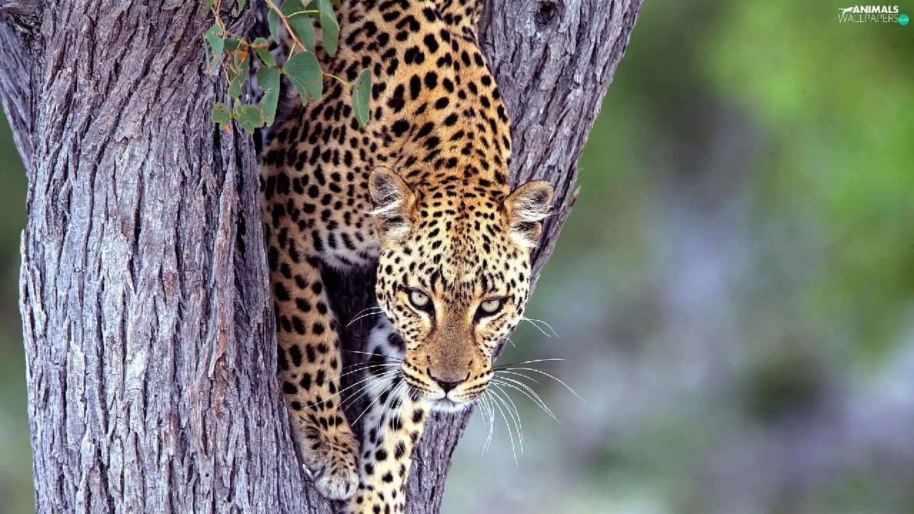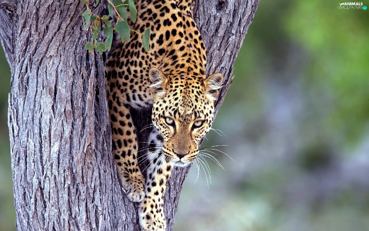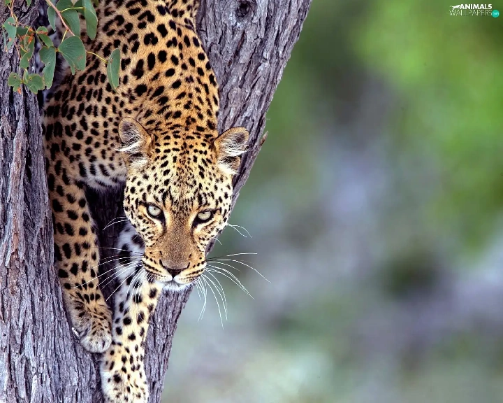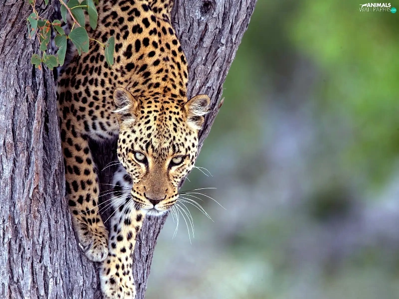 Leopards, trees