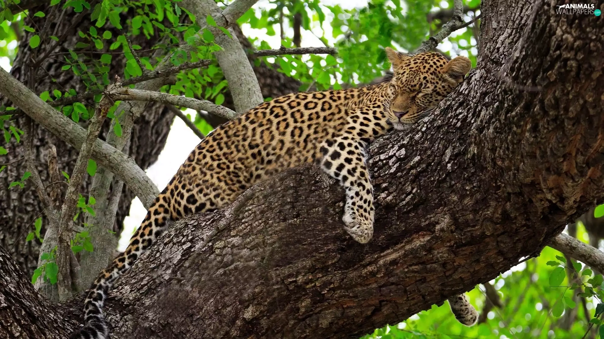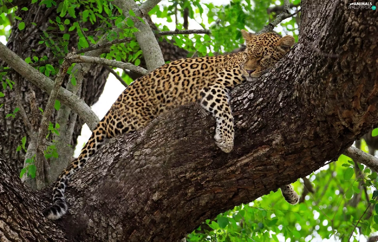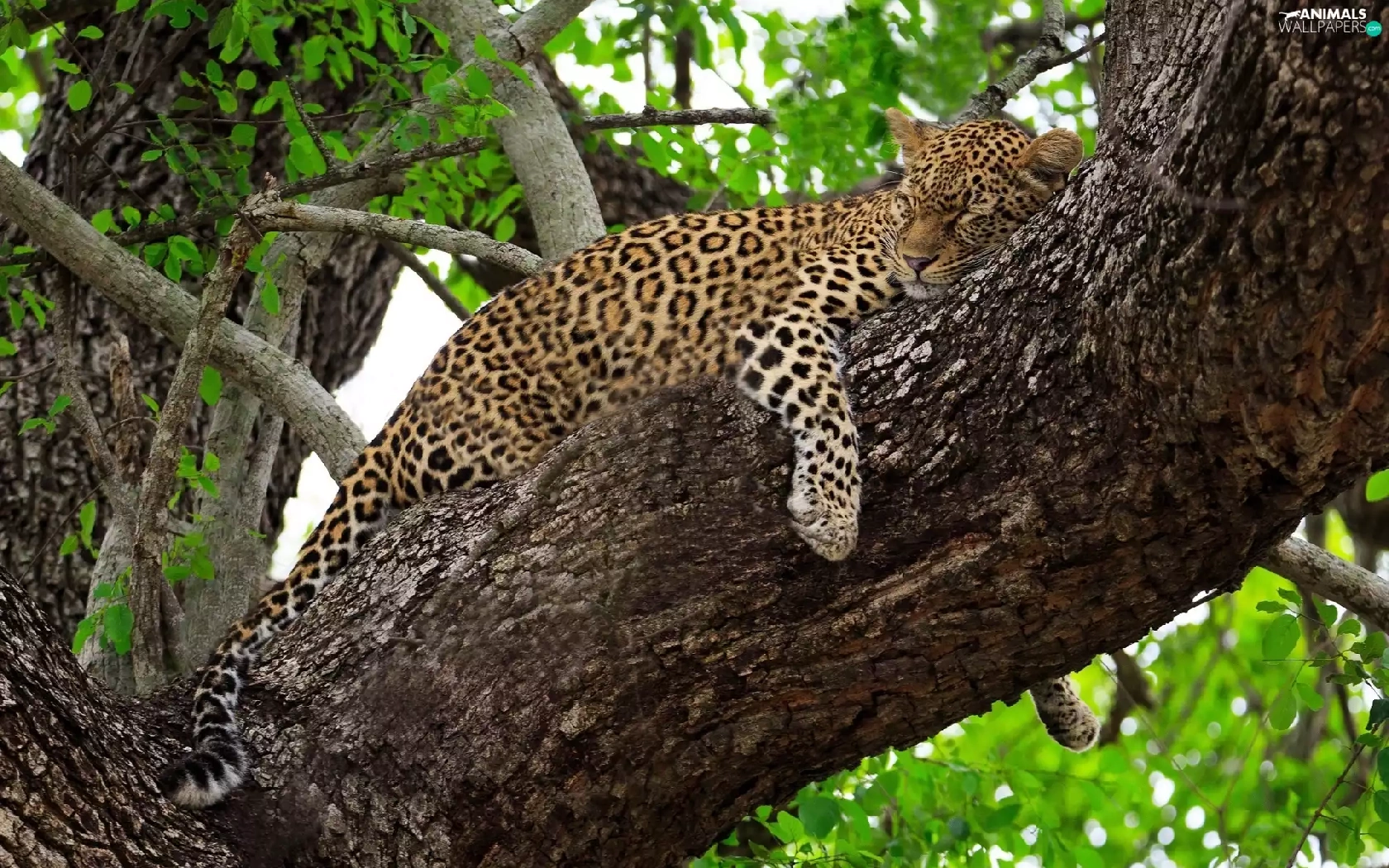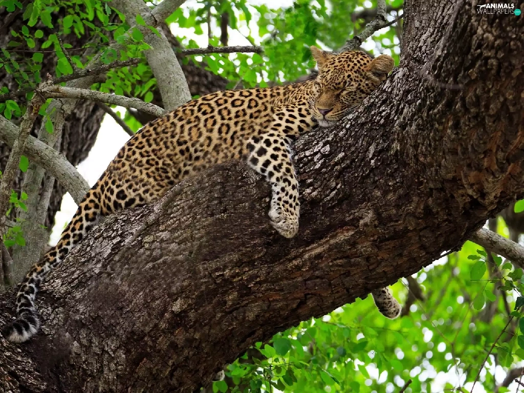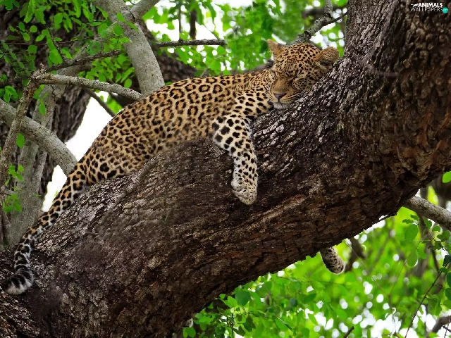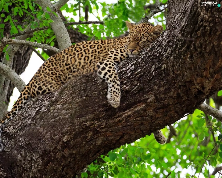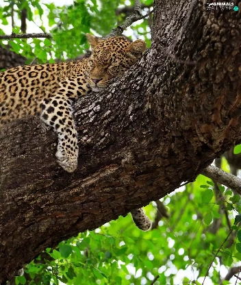 trees, sleepy, Leopards
