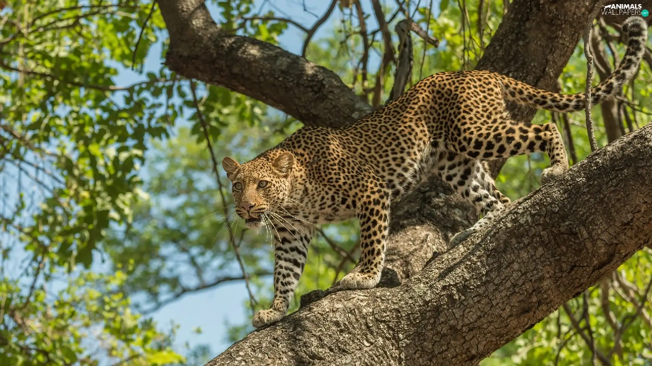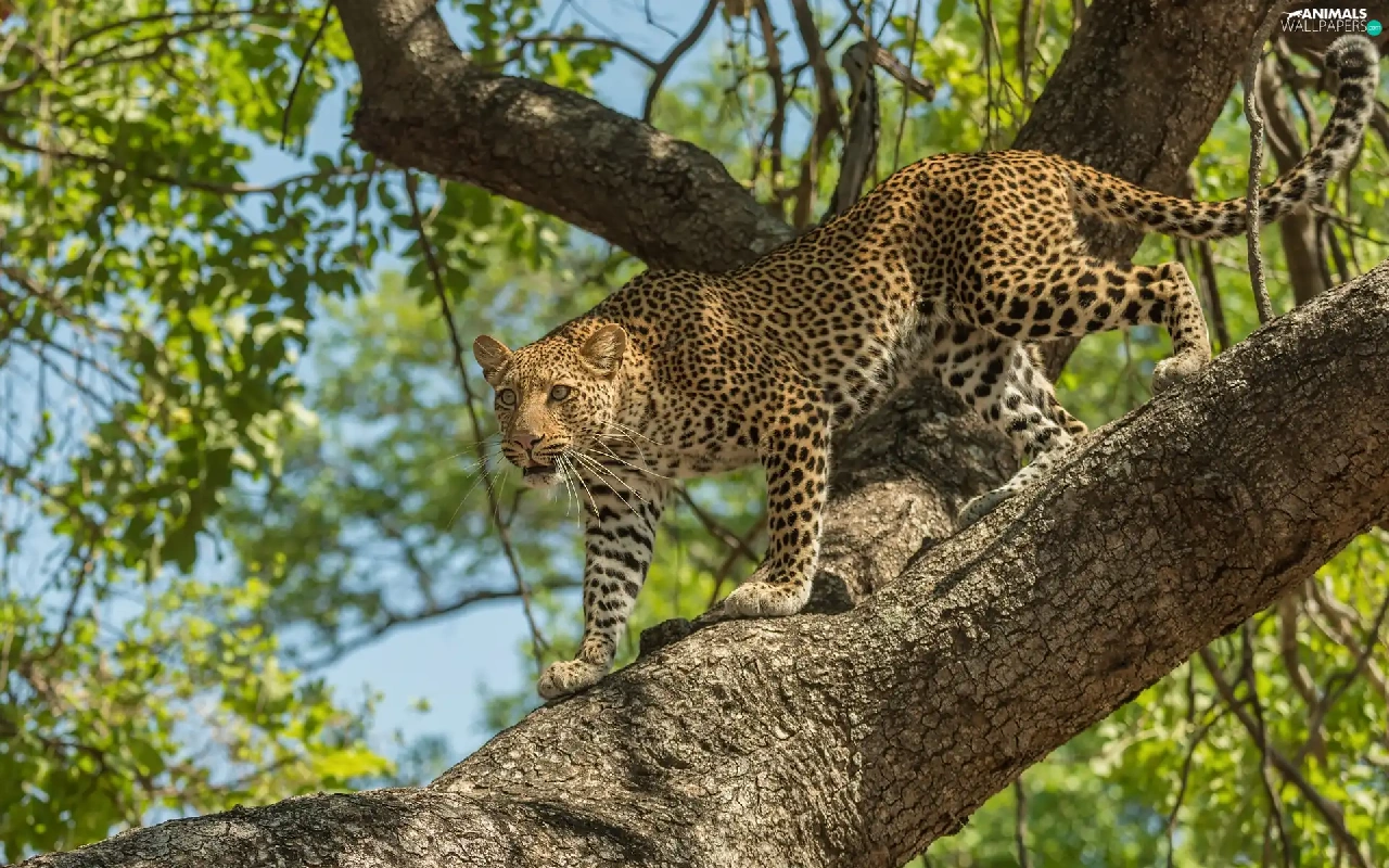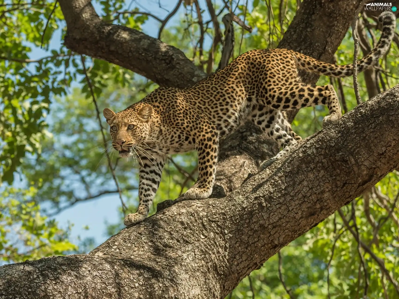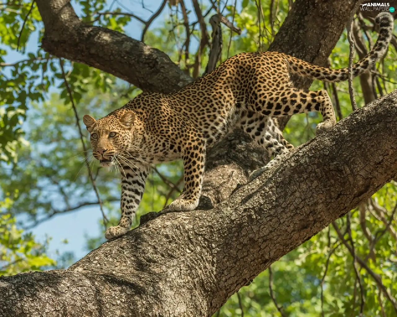 trees, standing, Leopards