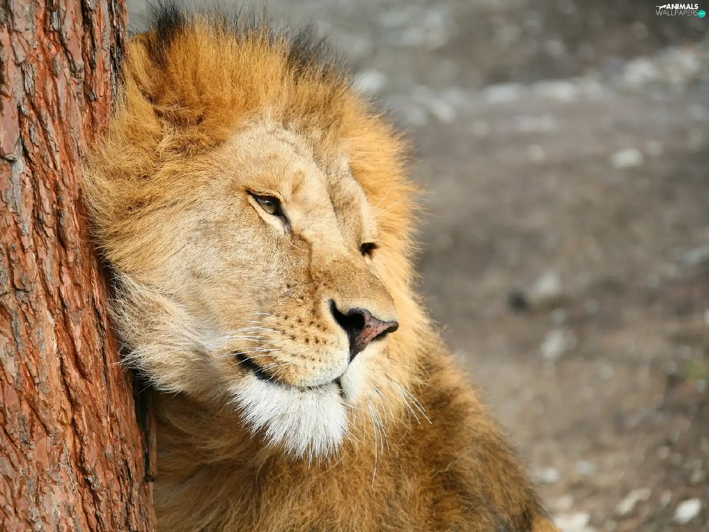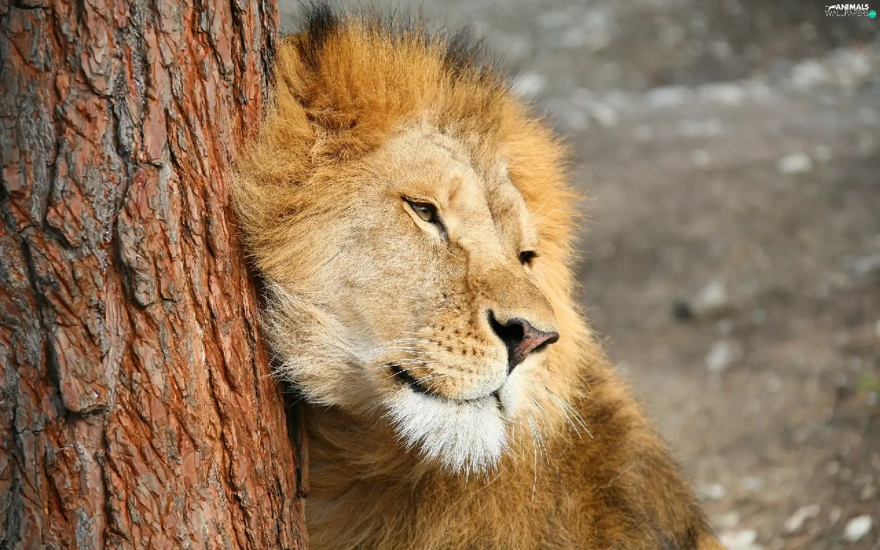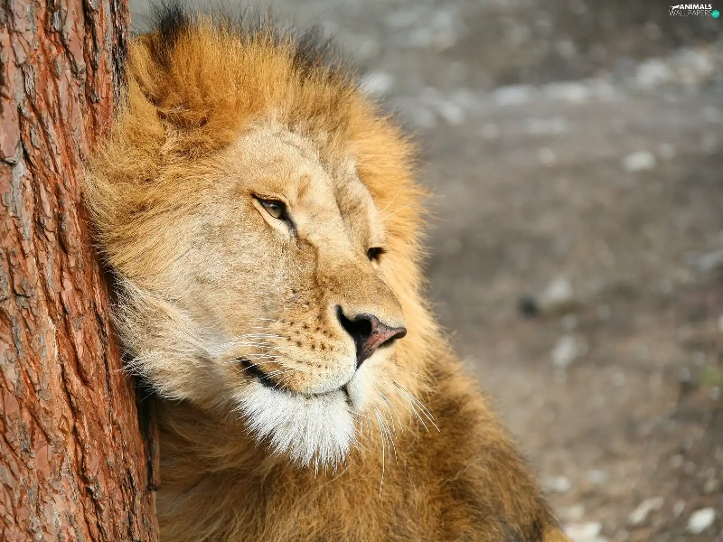Lion, trees