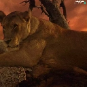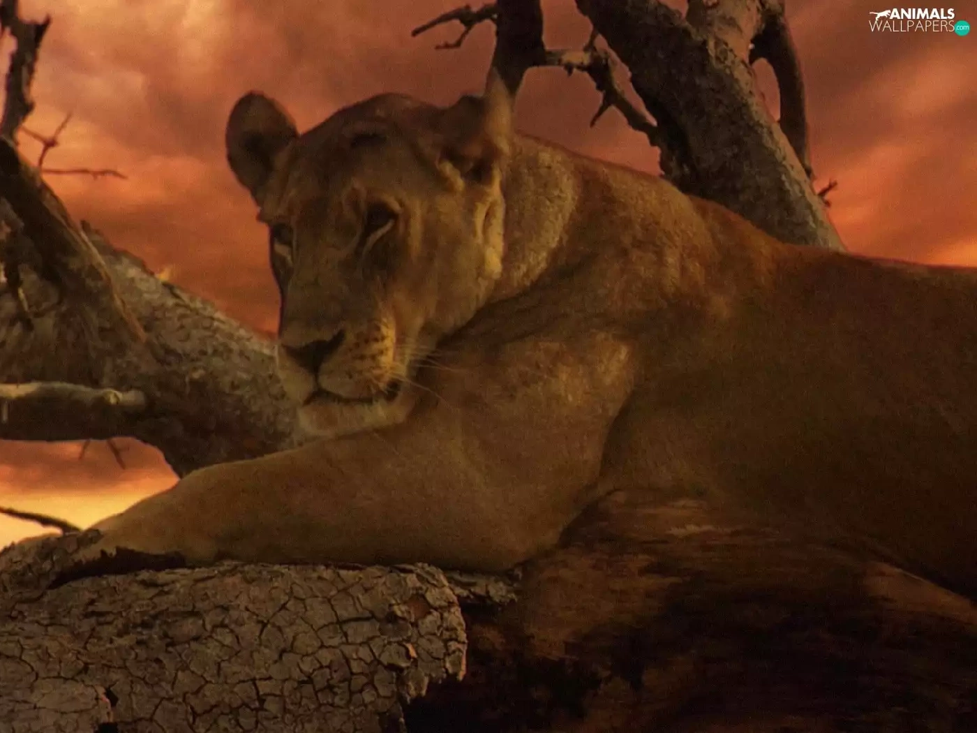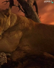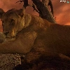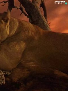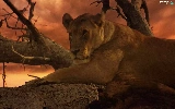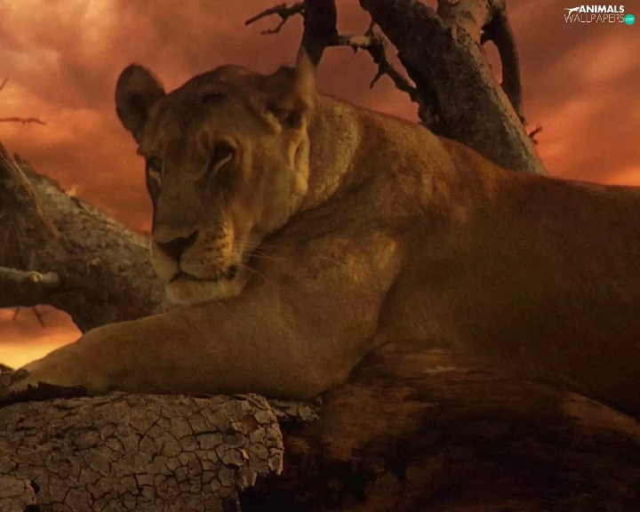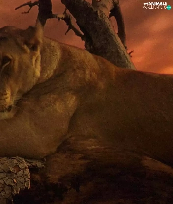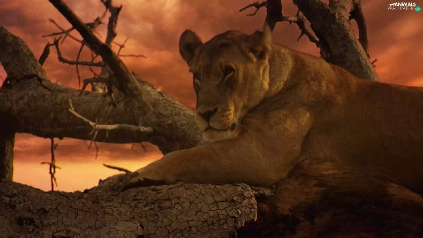 Lioness, west, sun, trees