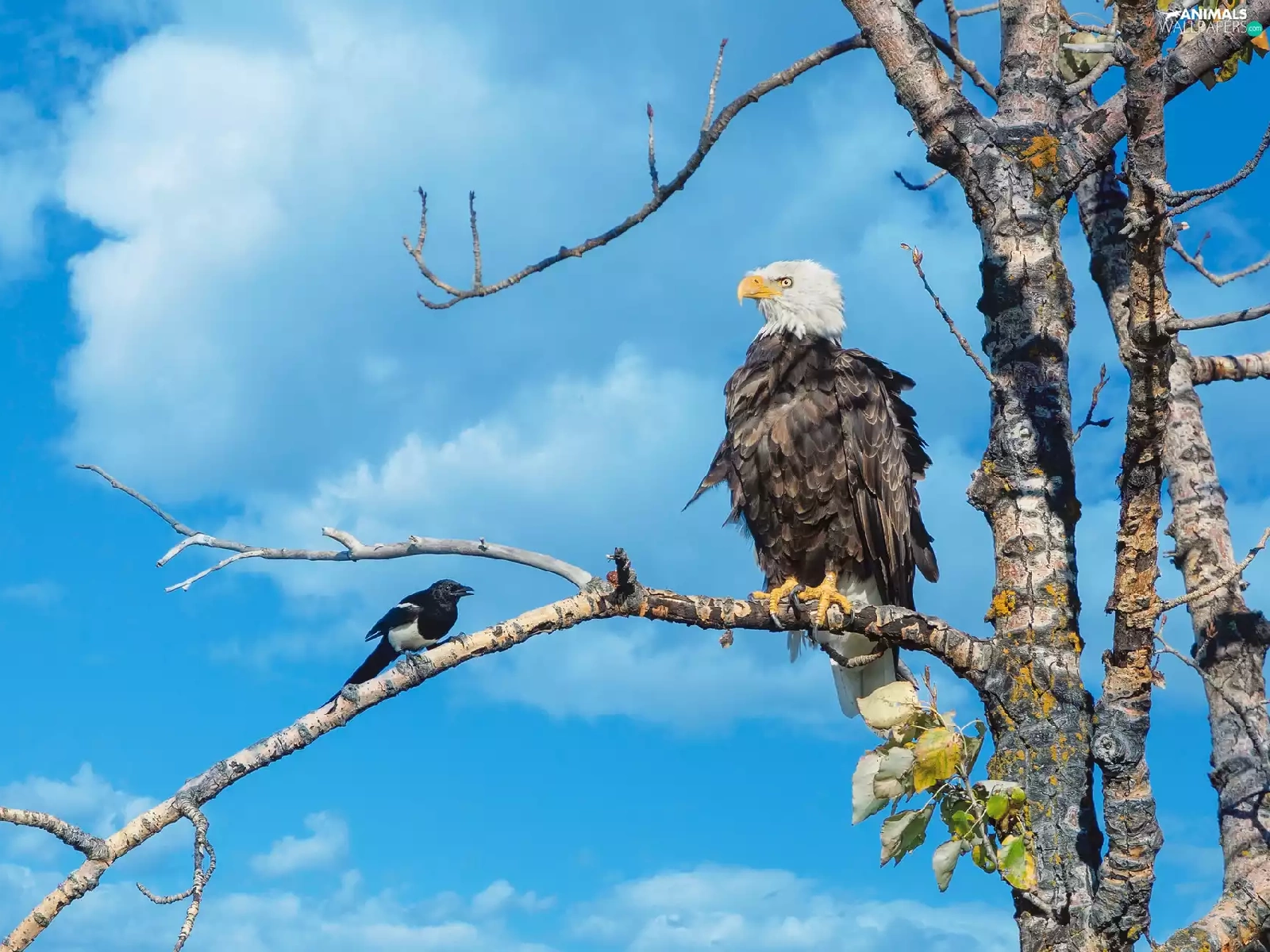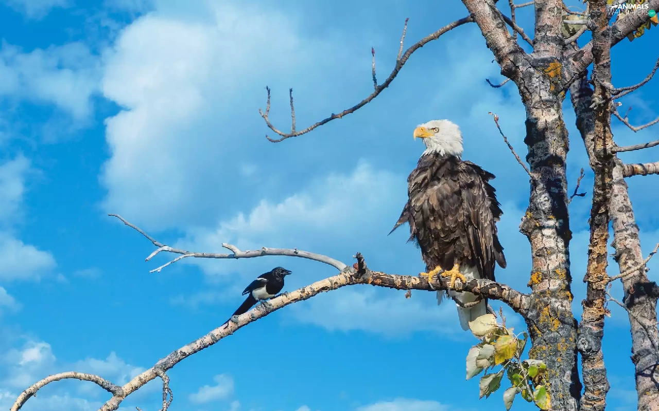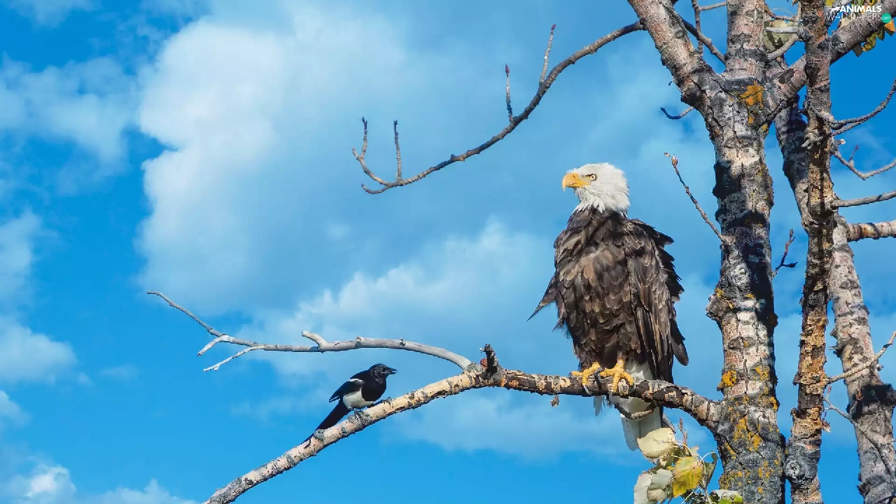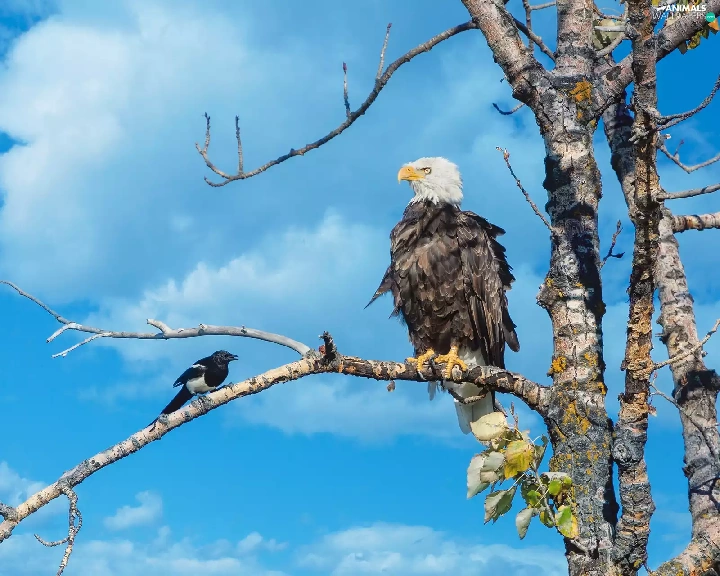 American Bald Eagle, trees, Sky, magpie
