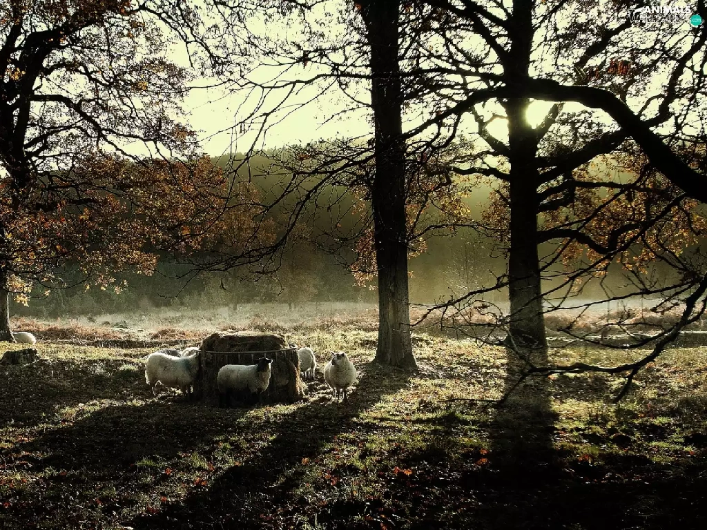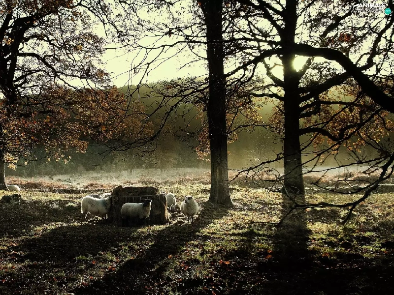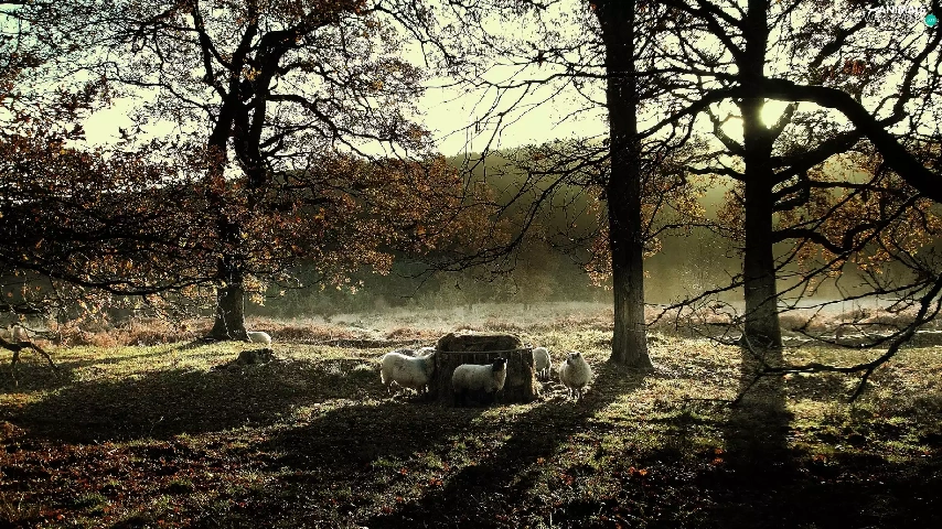 Meadow, viewes, Sheep, trees