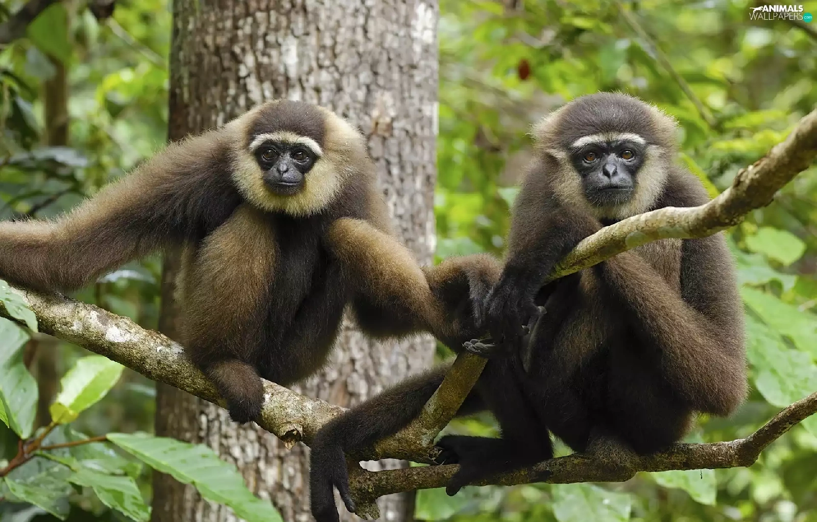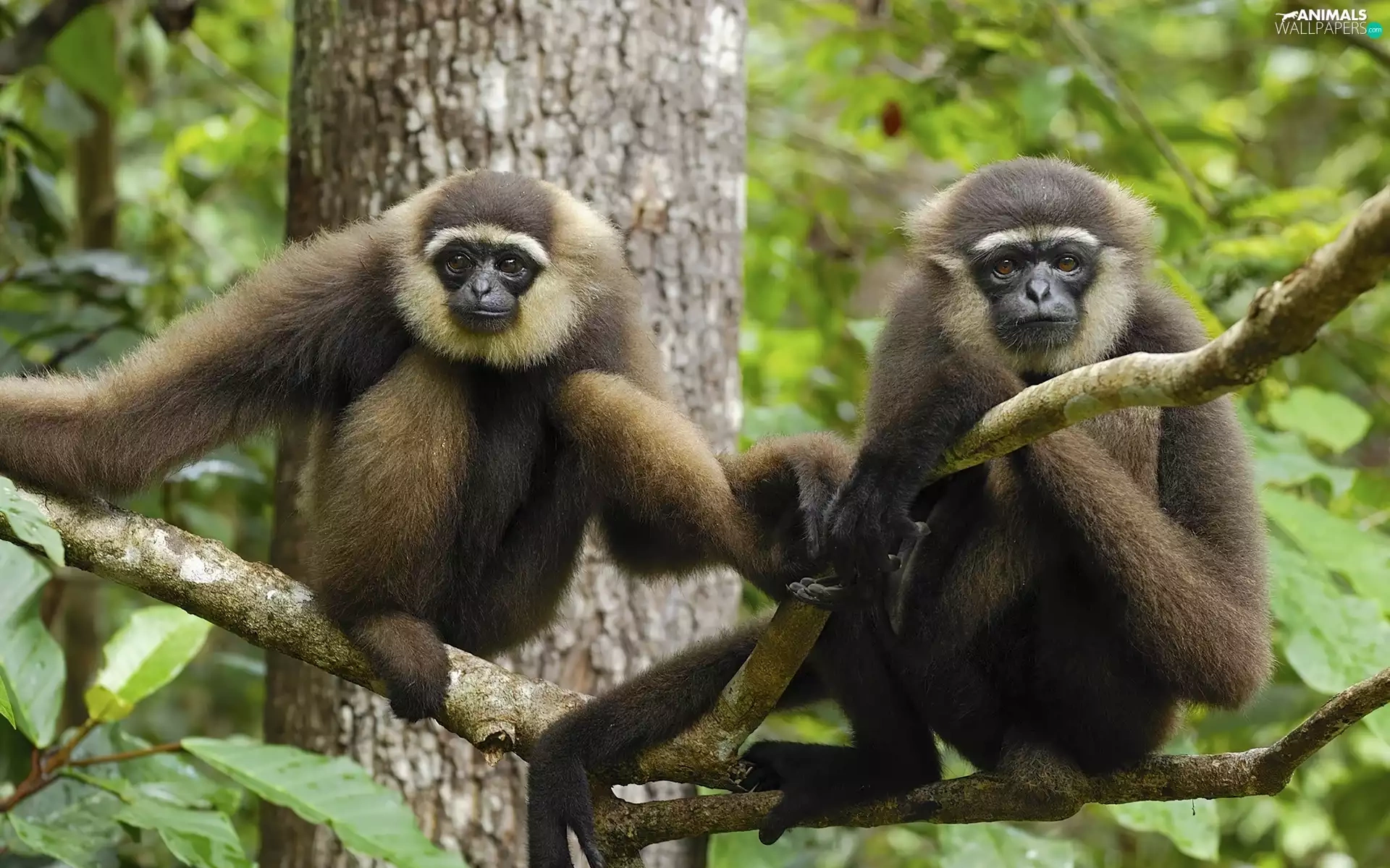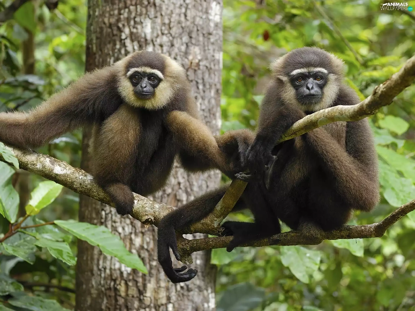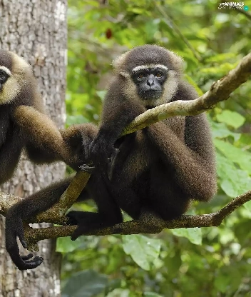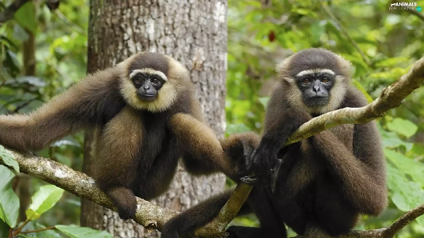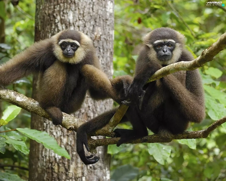 trees, Two, monkeys