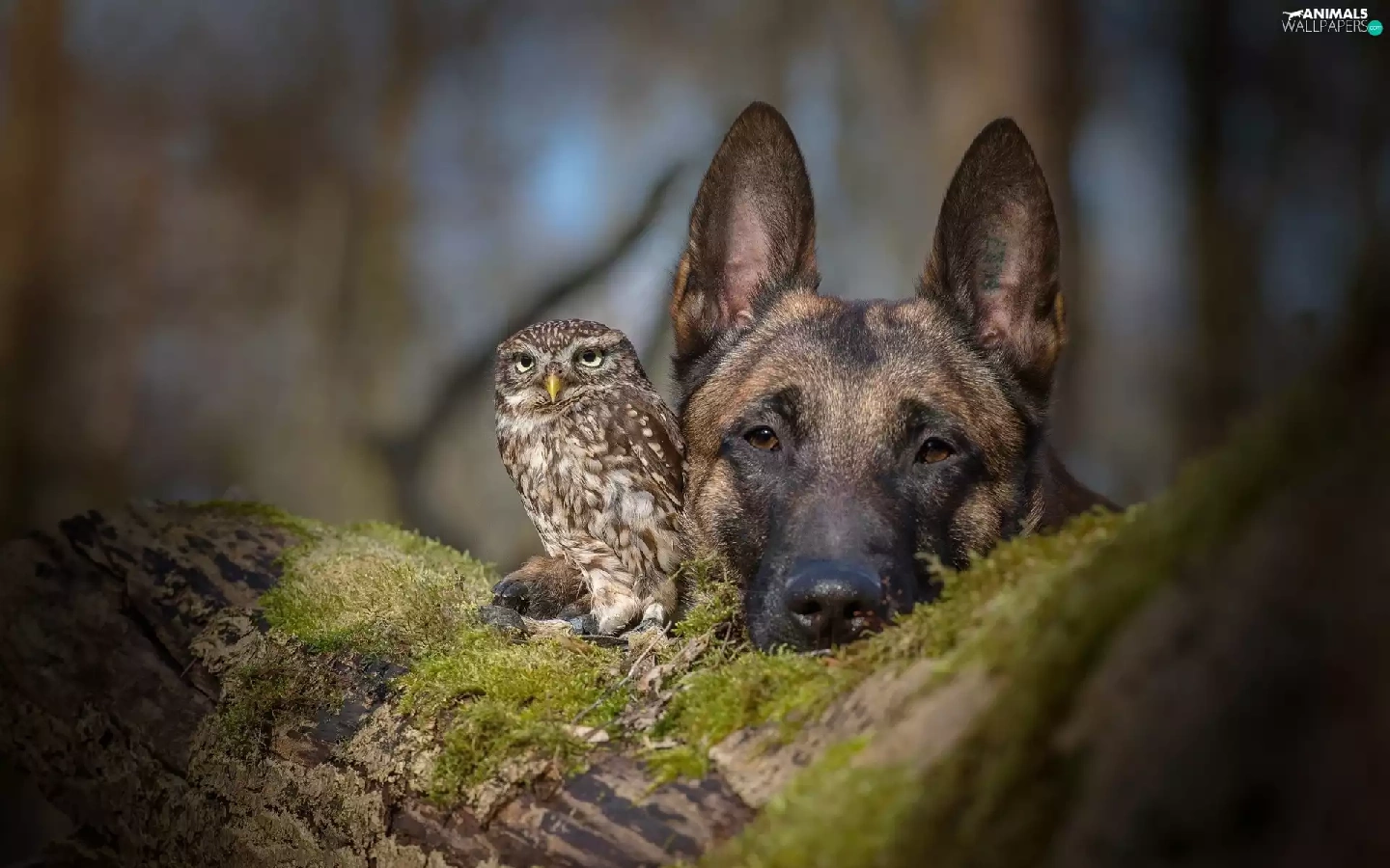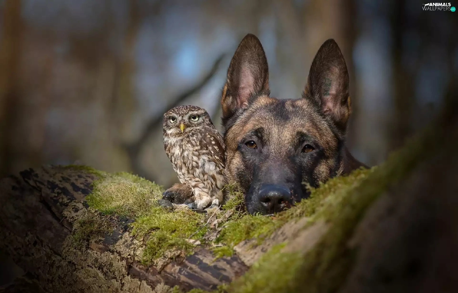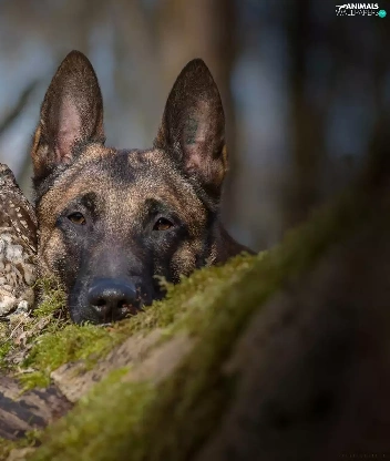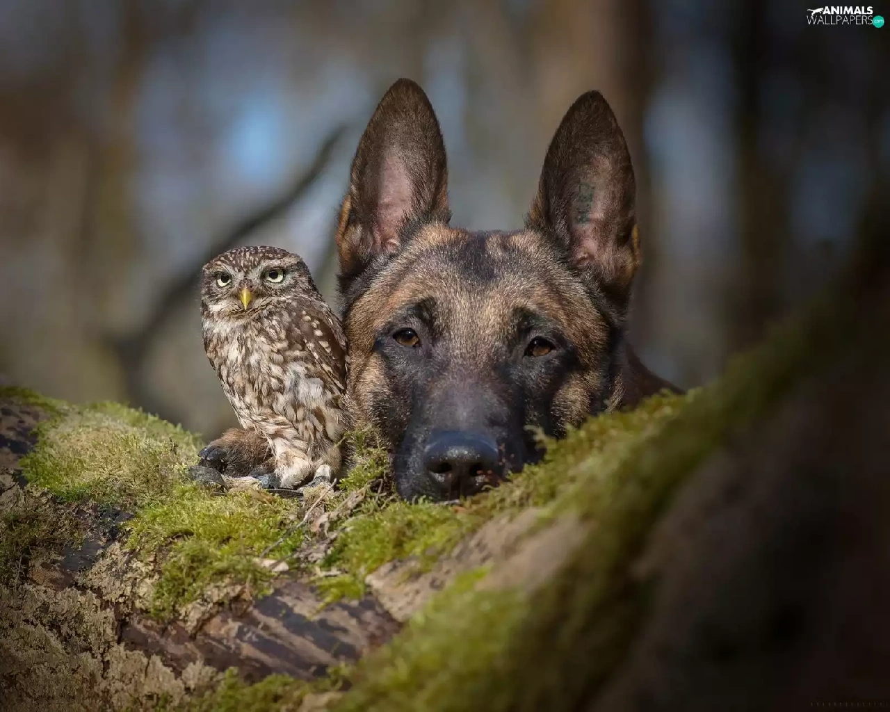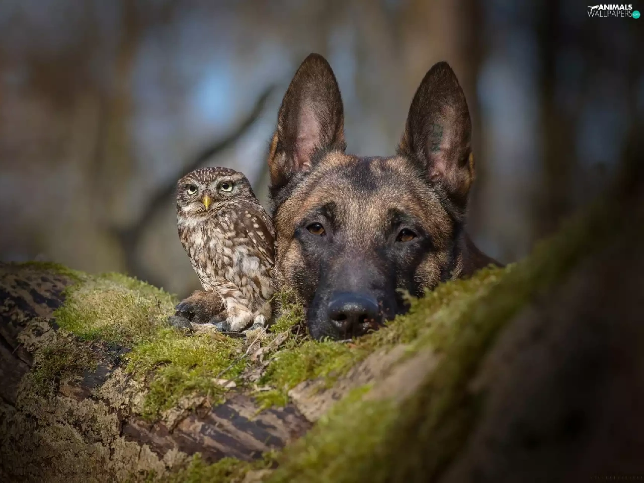 owl, trees, Moss, German Shepherd