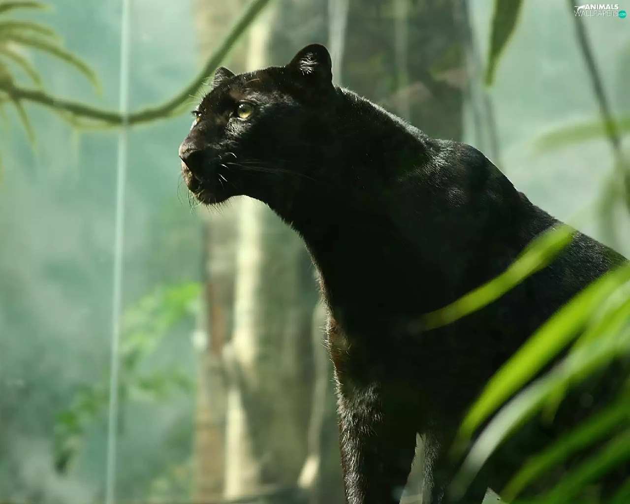 trees, black, Panther