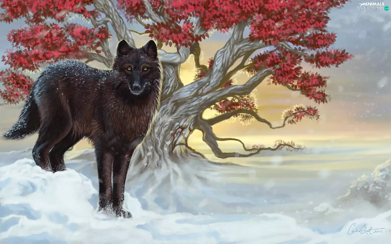 Poster Image, Wolf, trees