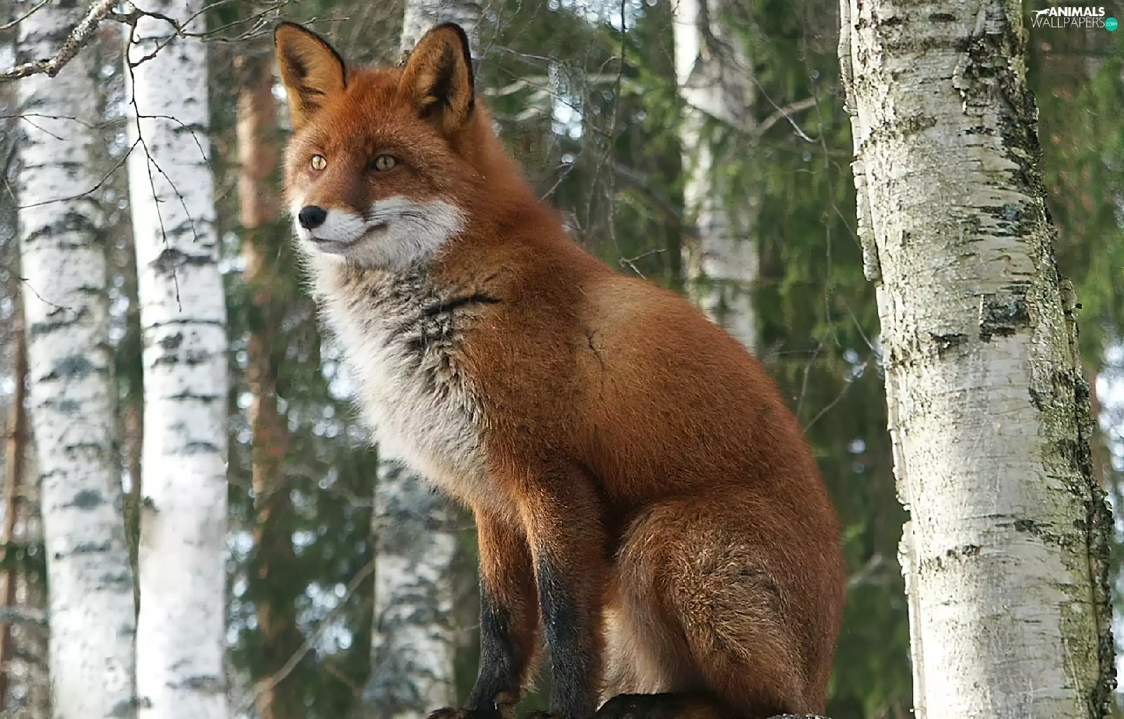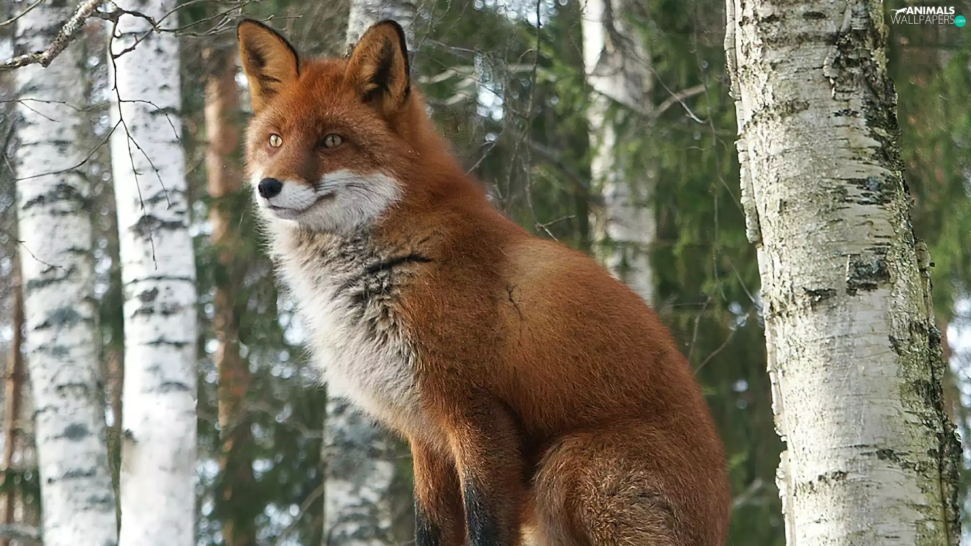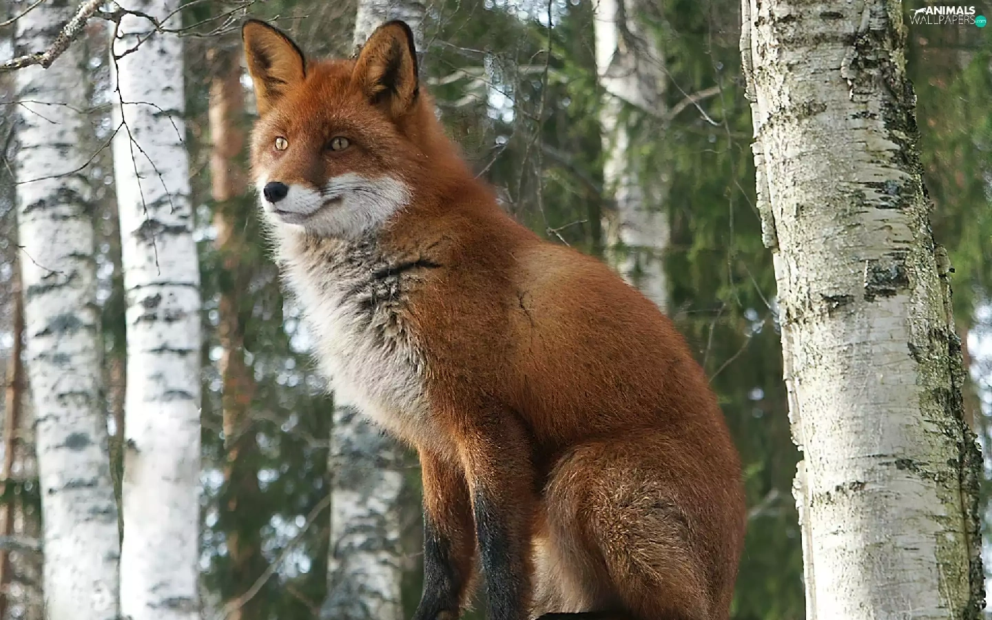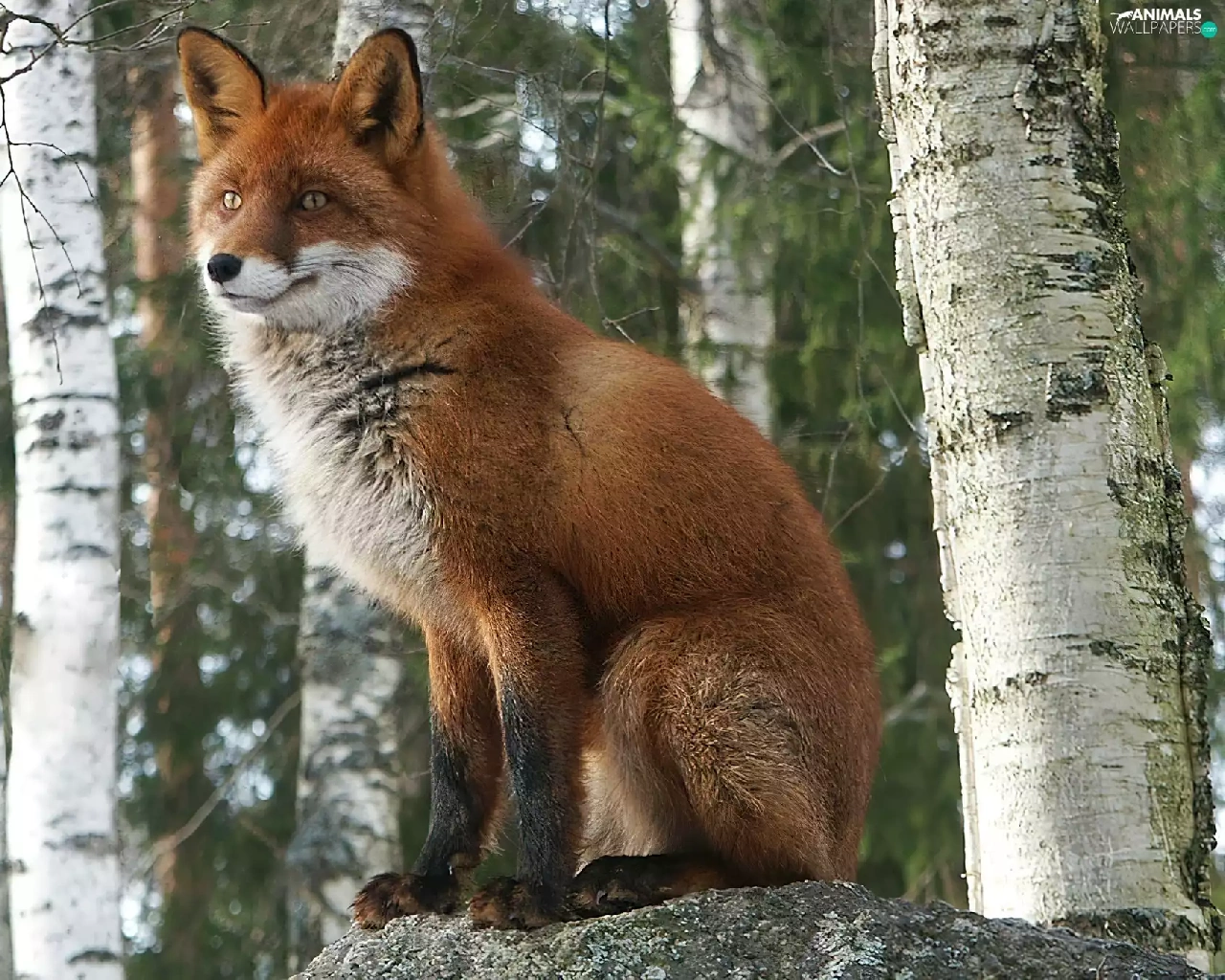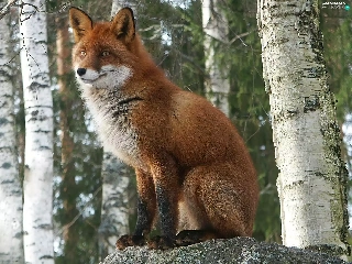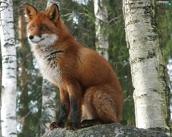 trees, fox, Stems