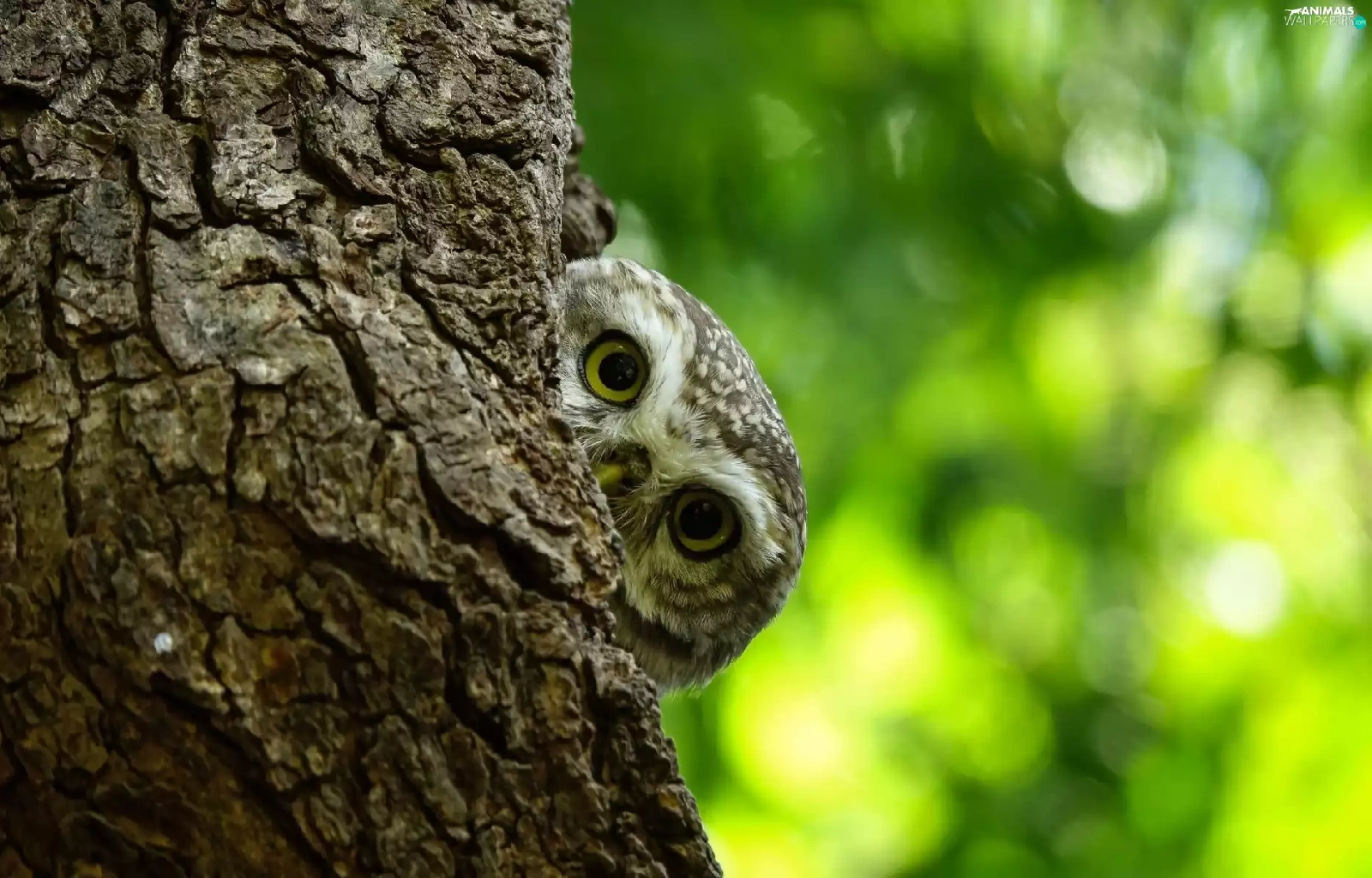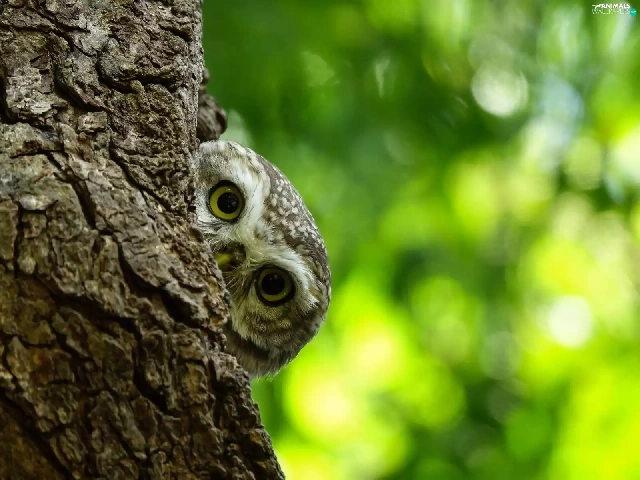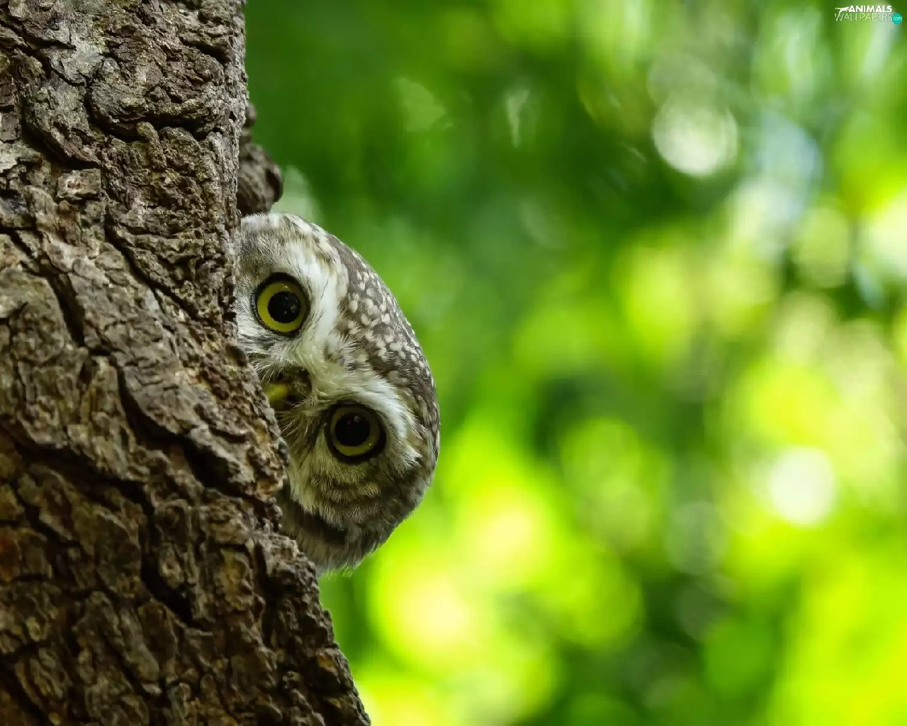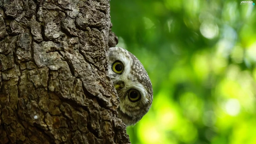 owl, trees, trunk, Little Owl