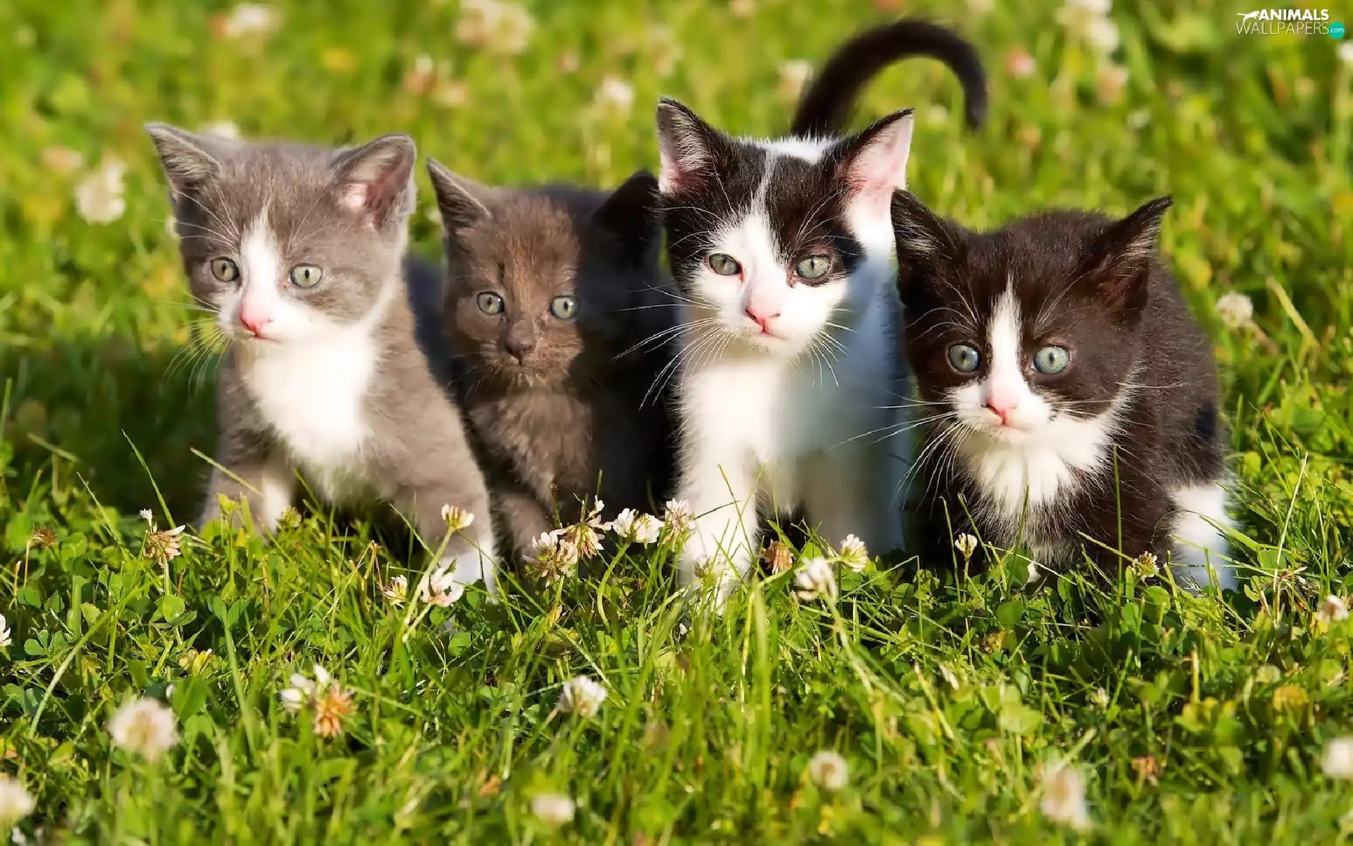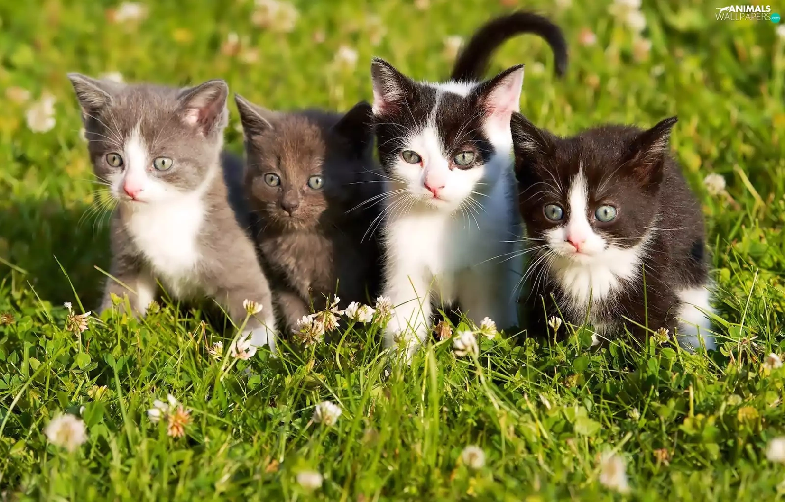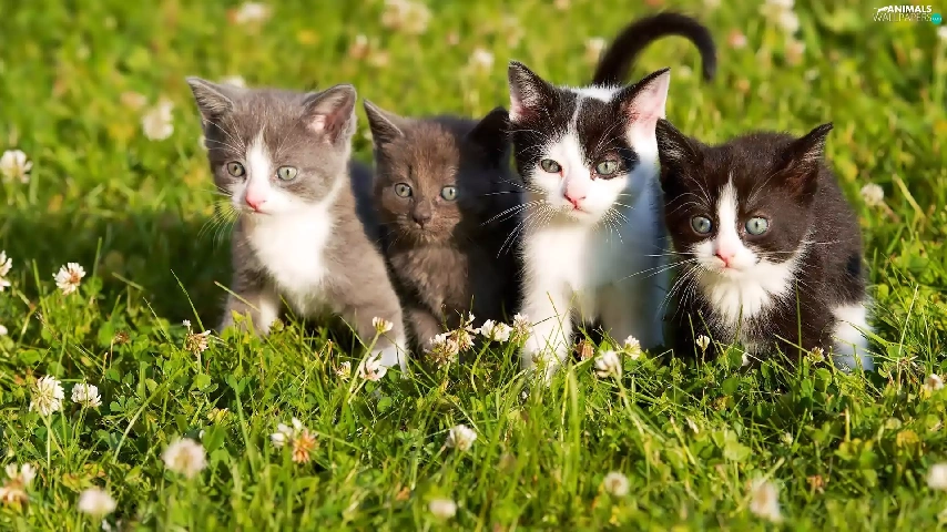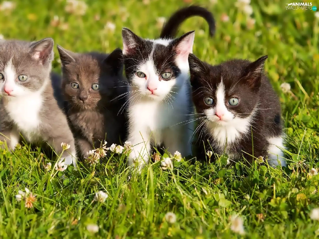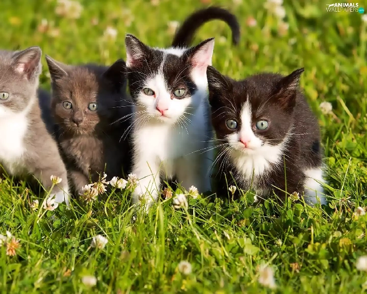sweet, four, Meadow, trefoil, puss, little doggies