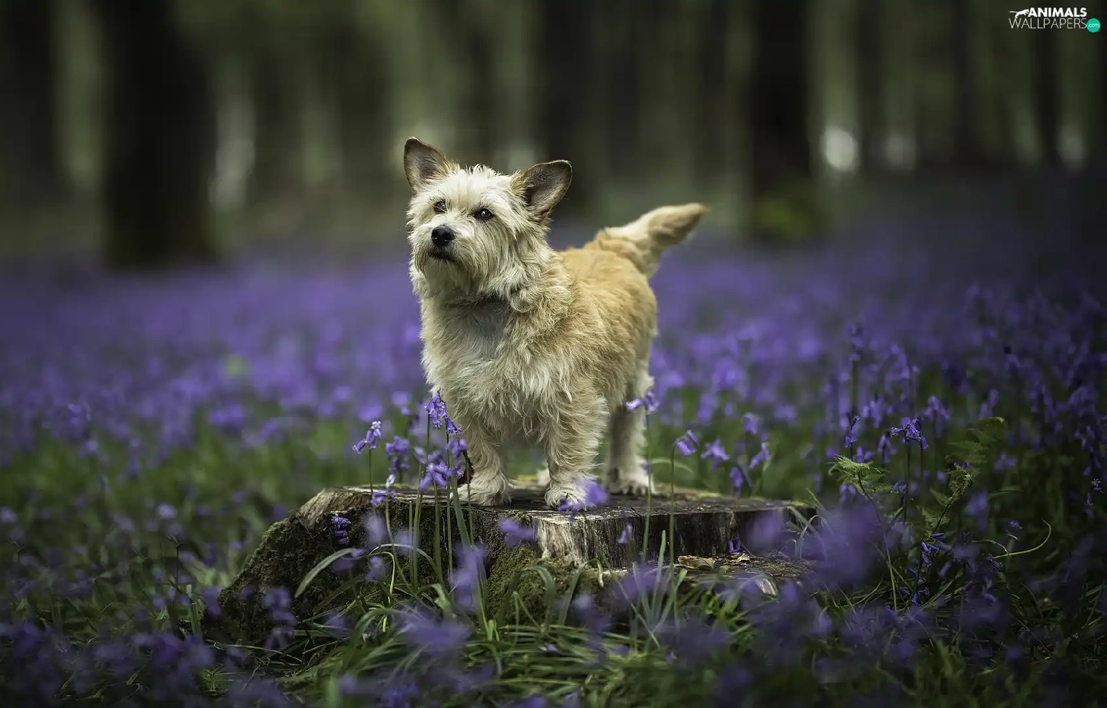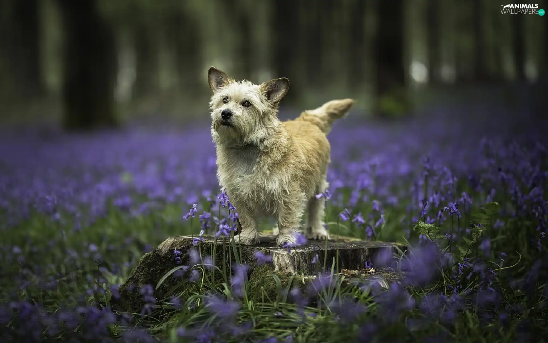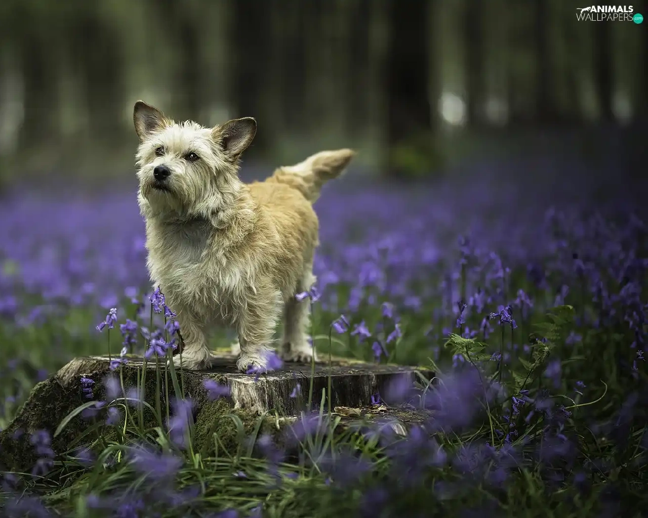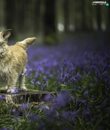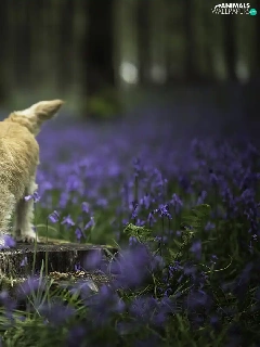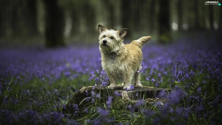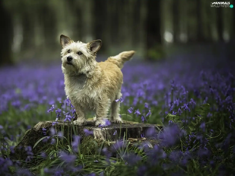 dog, Meadow, Flowers, trunk