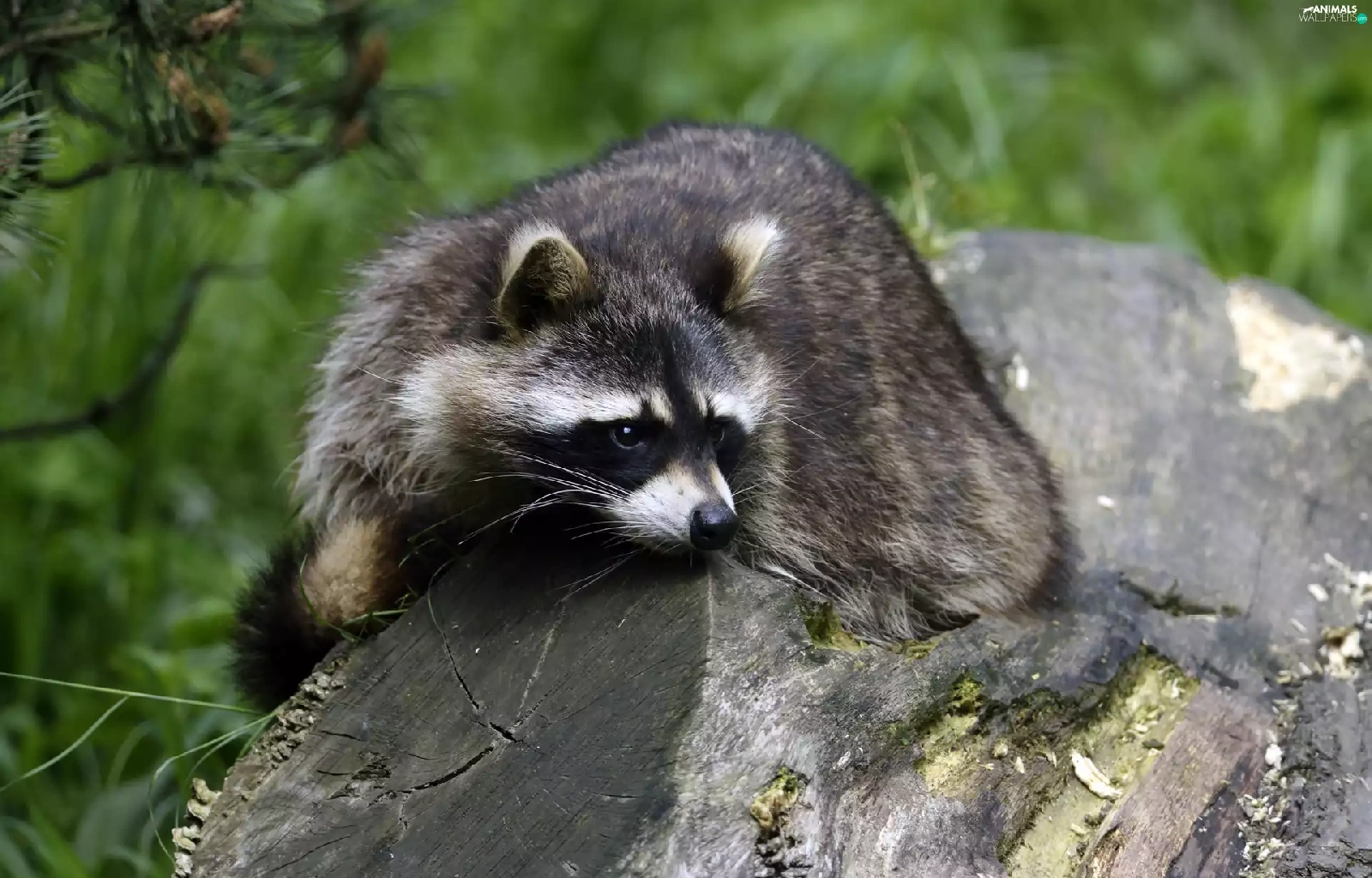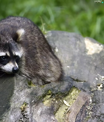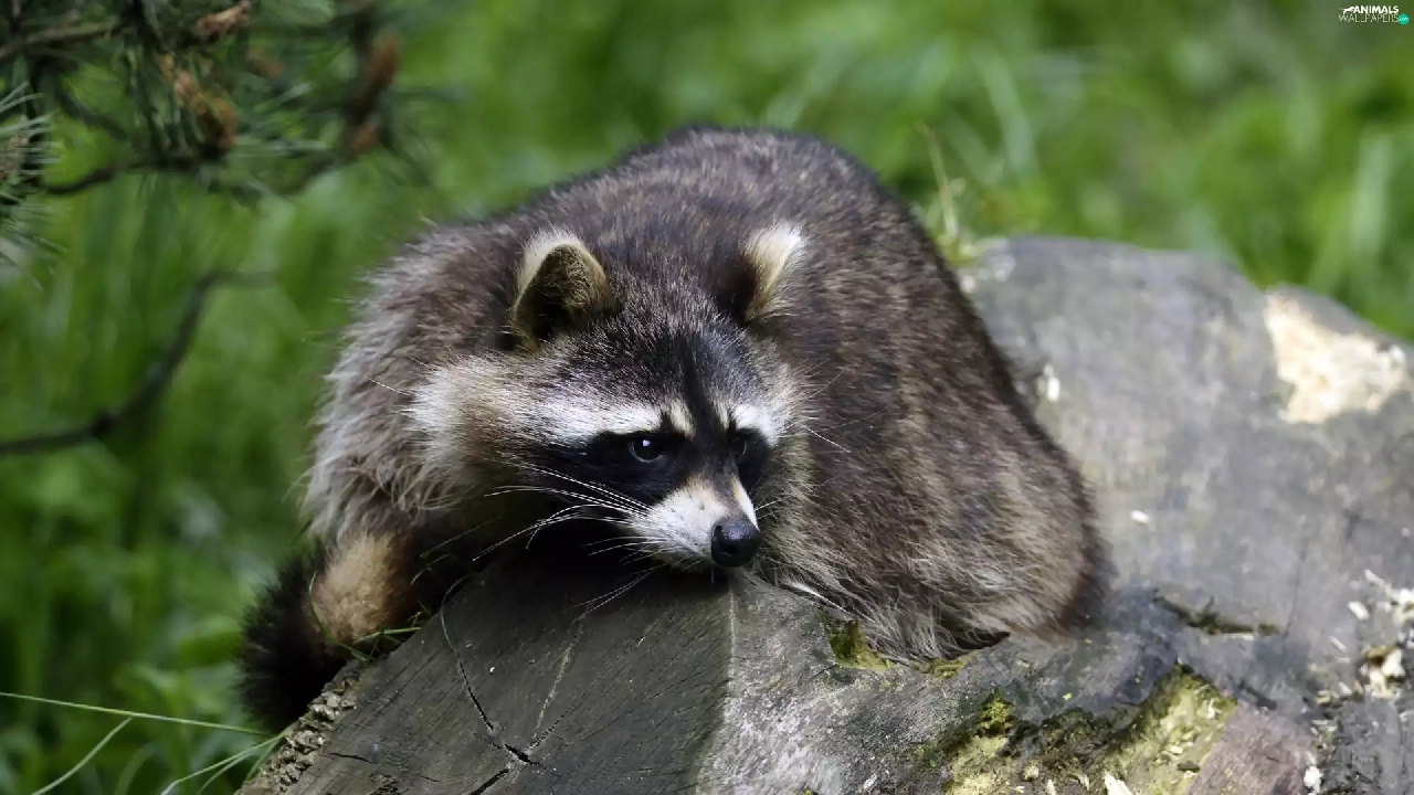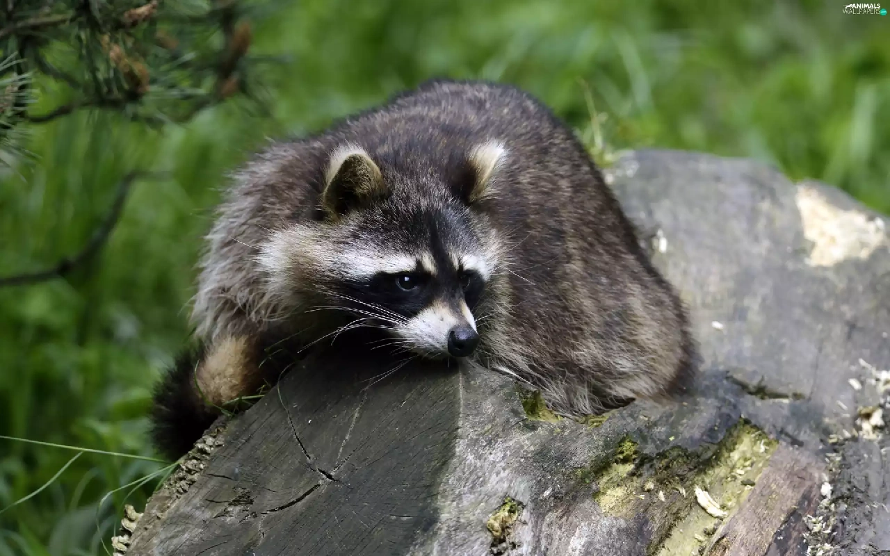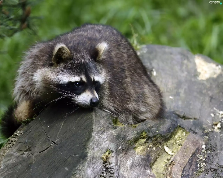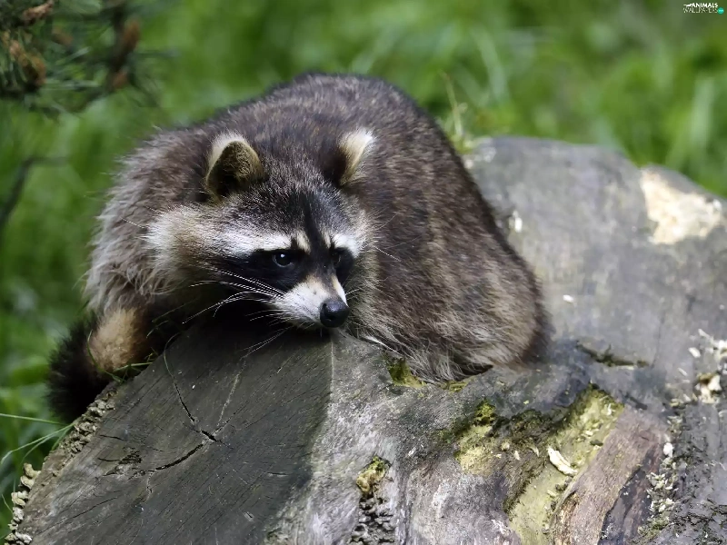 raccoon, trees, viewes, trunk