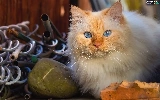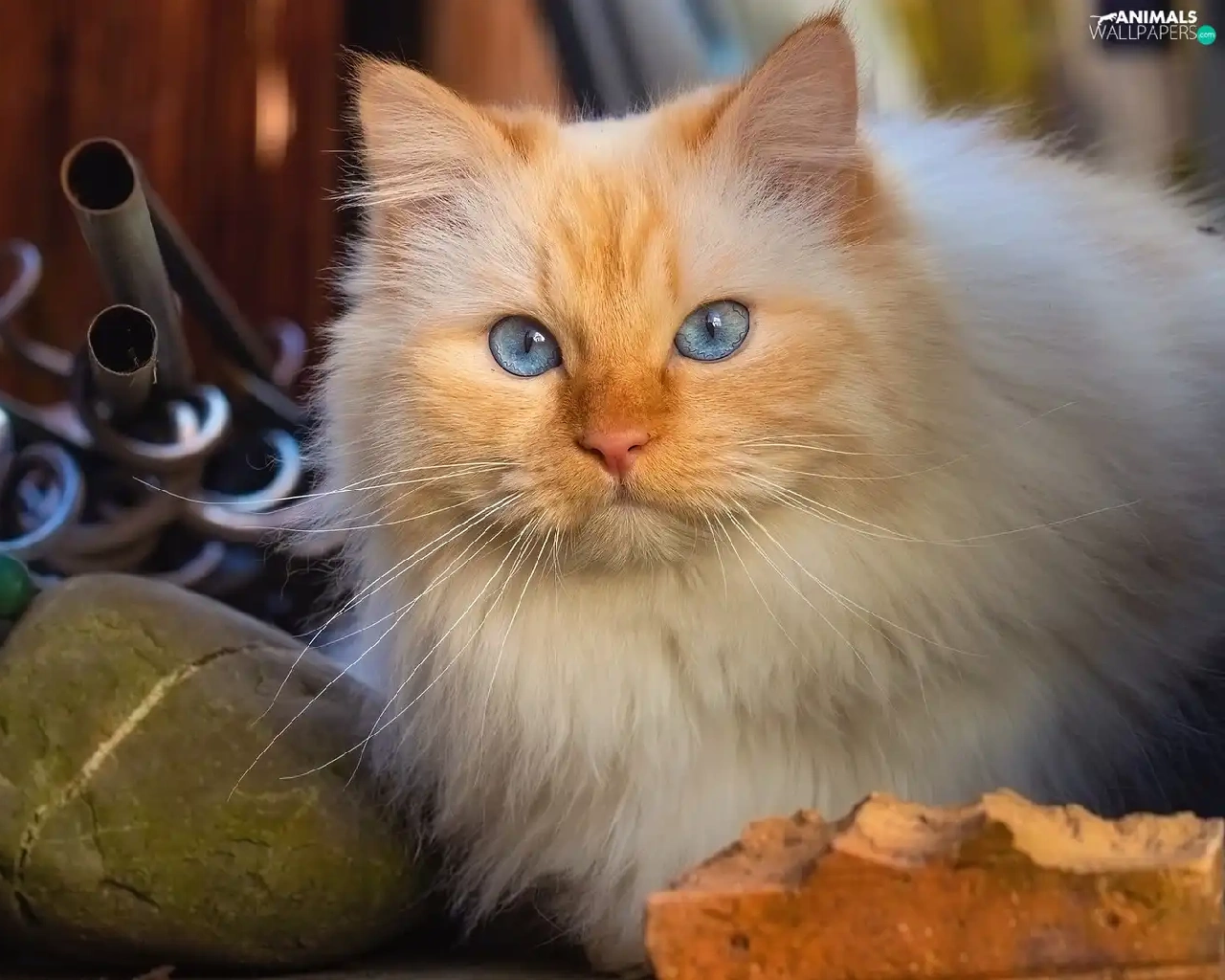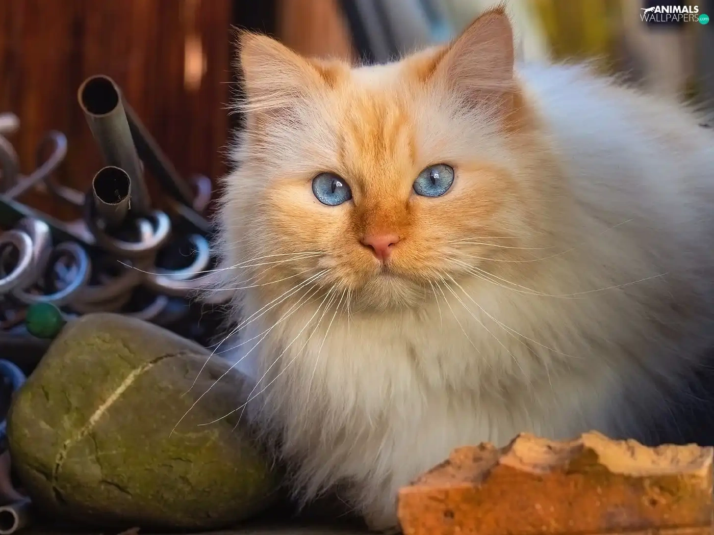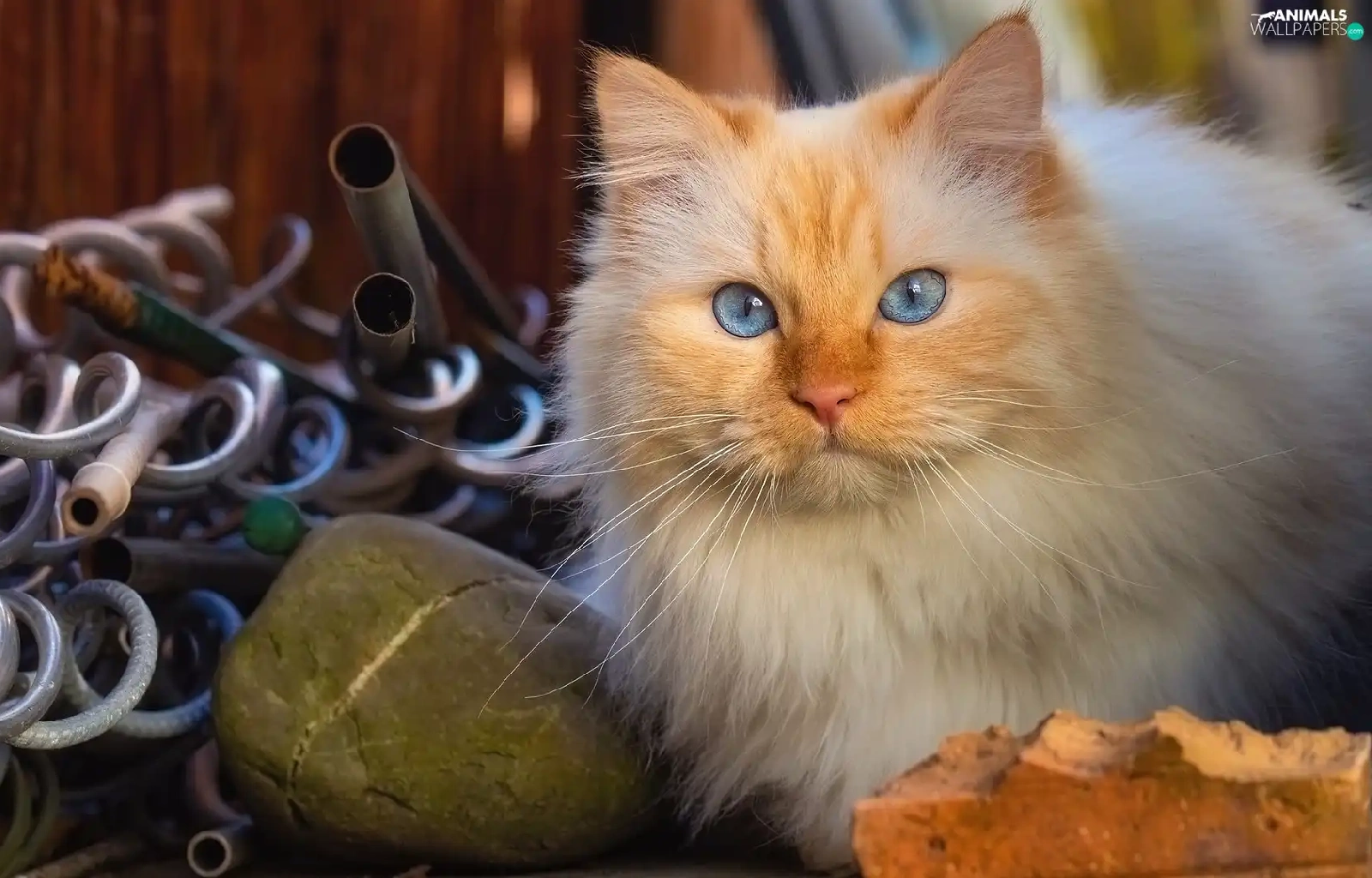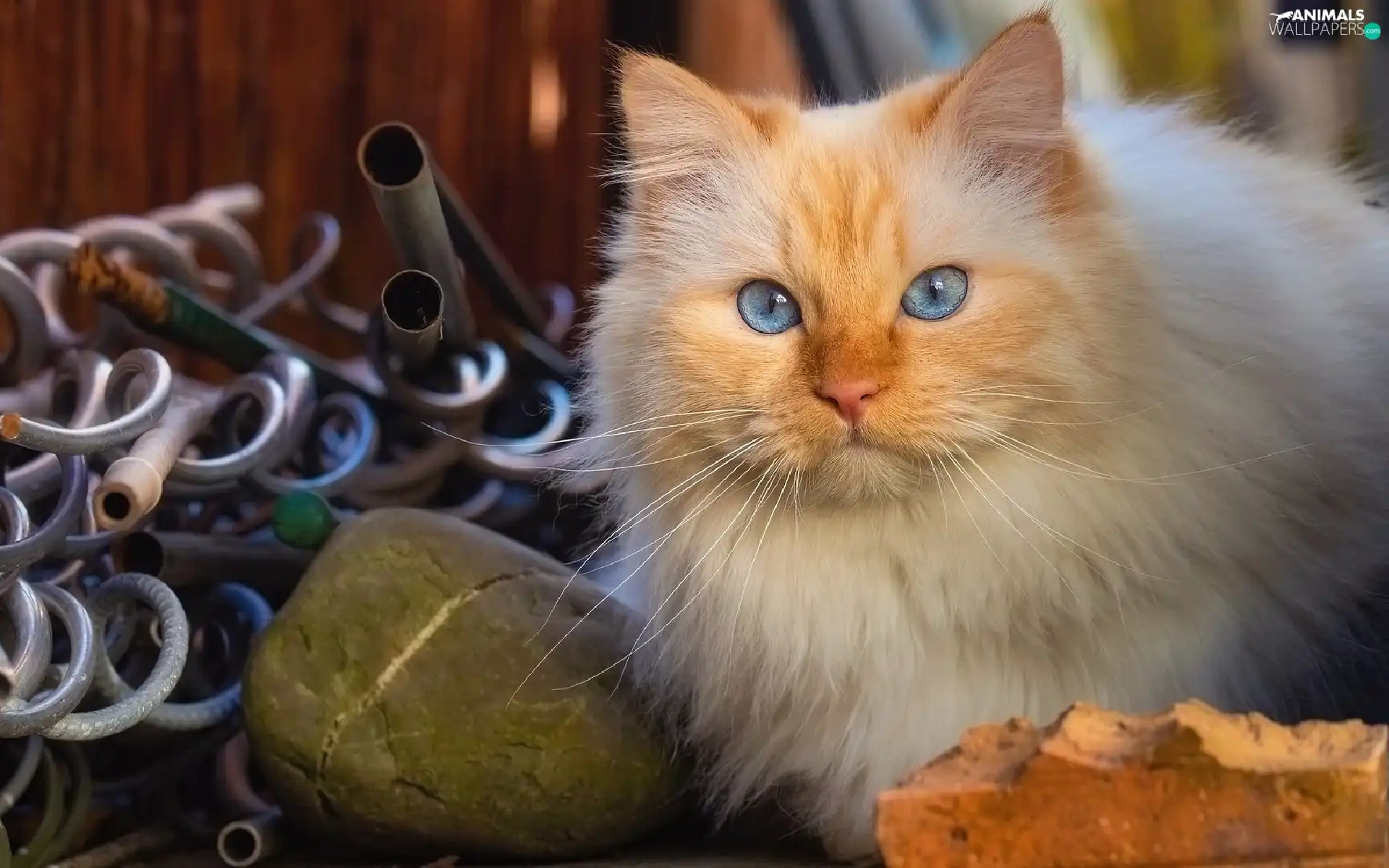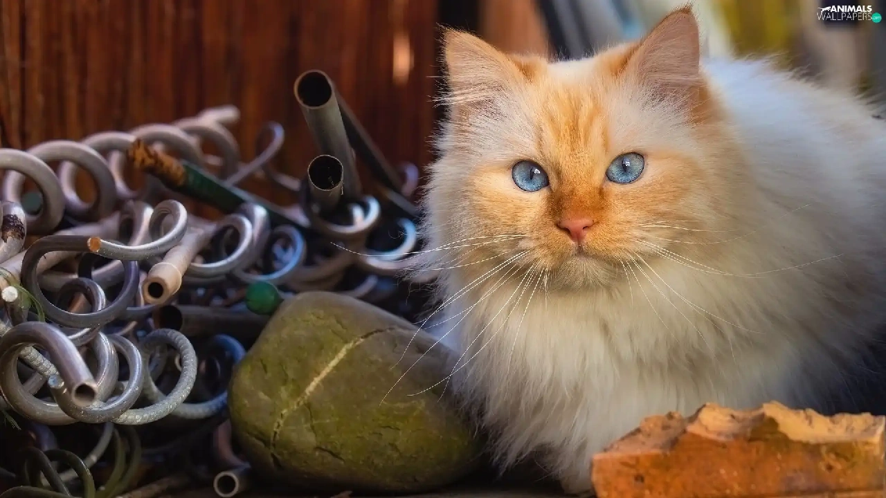 Stone, Blue Eyed, metal, cat, ginger, brick, tubing