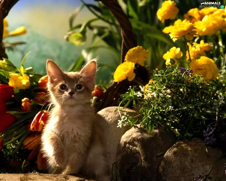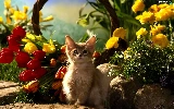 Tulips, cat