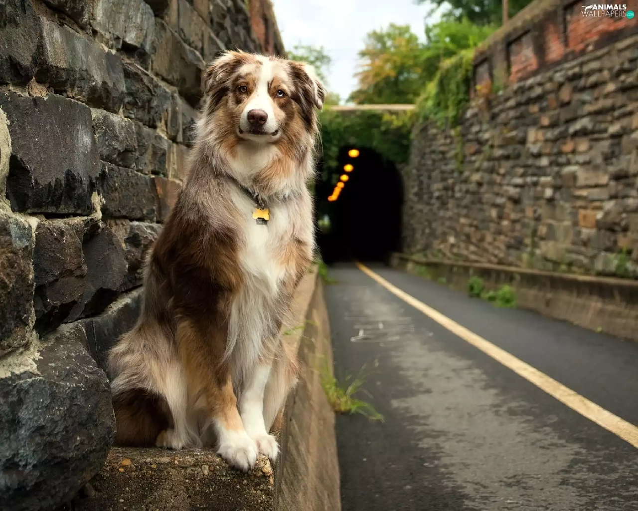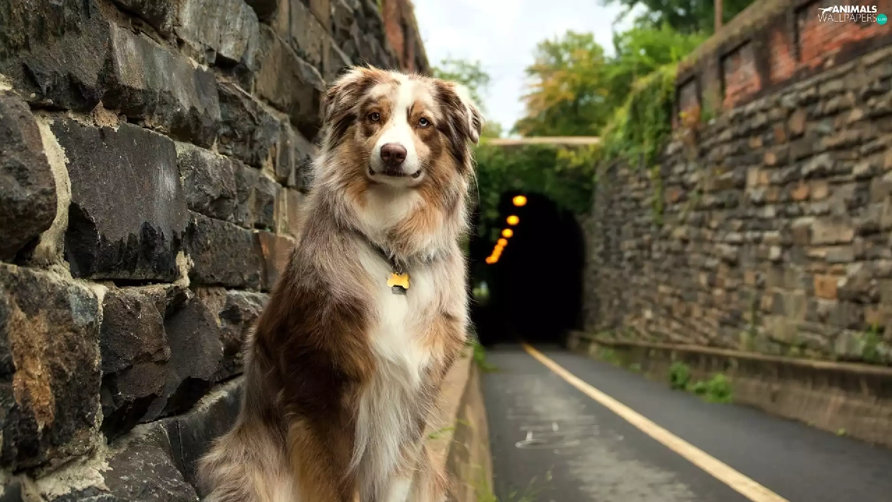 Australian Shepherd, Way, tunnel, Australian Shepherd