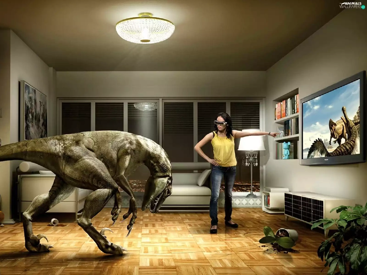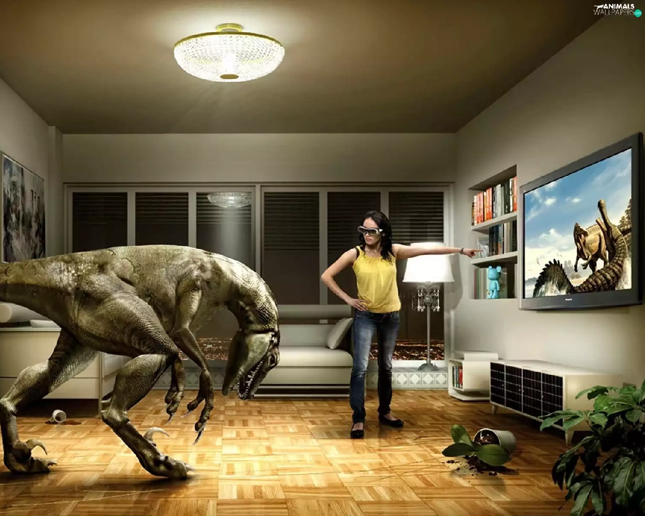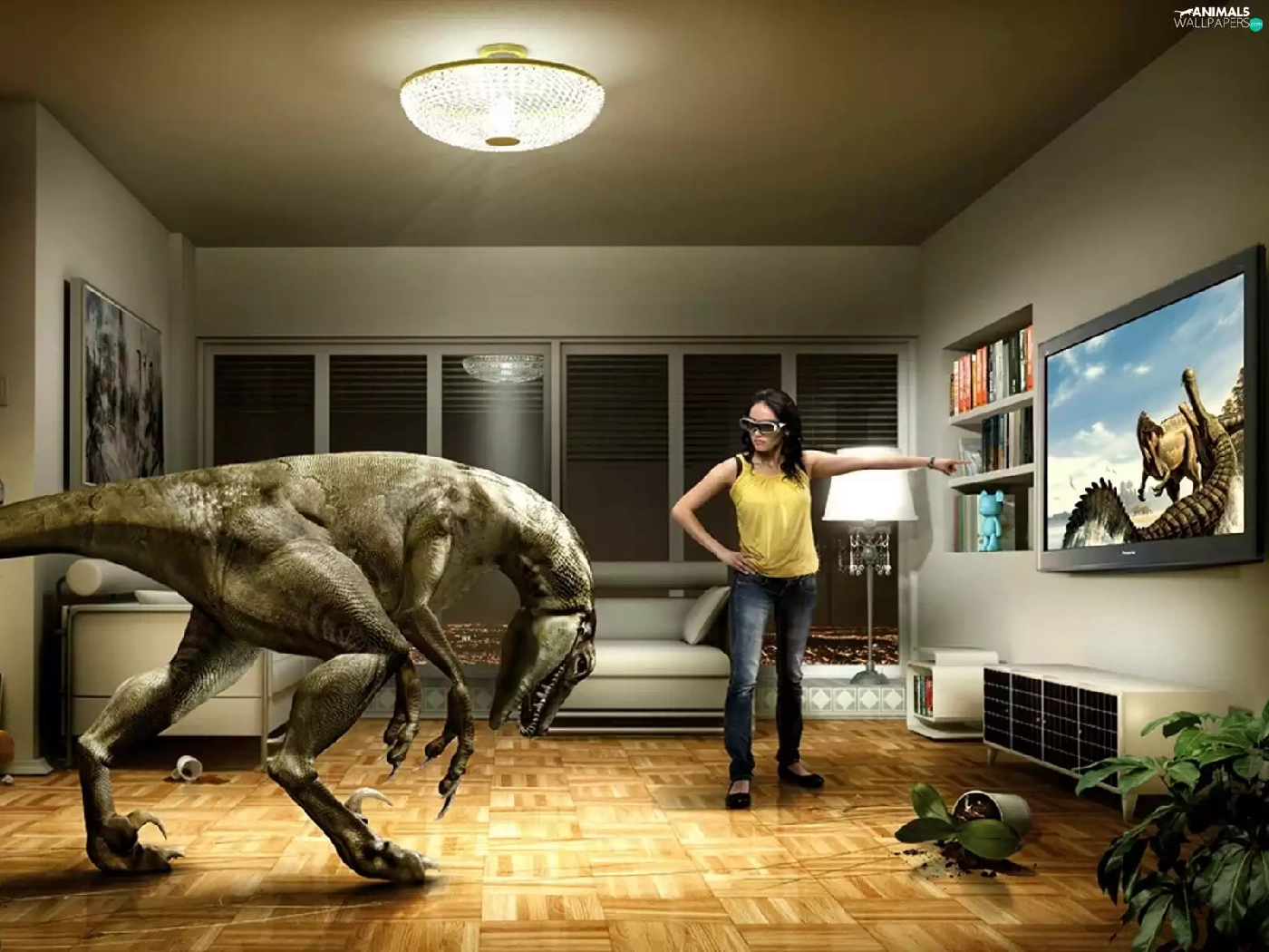 TV, Women, dinosaur