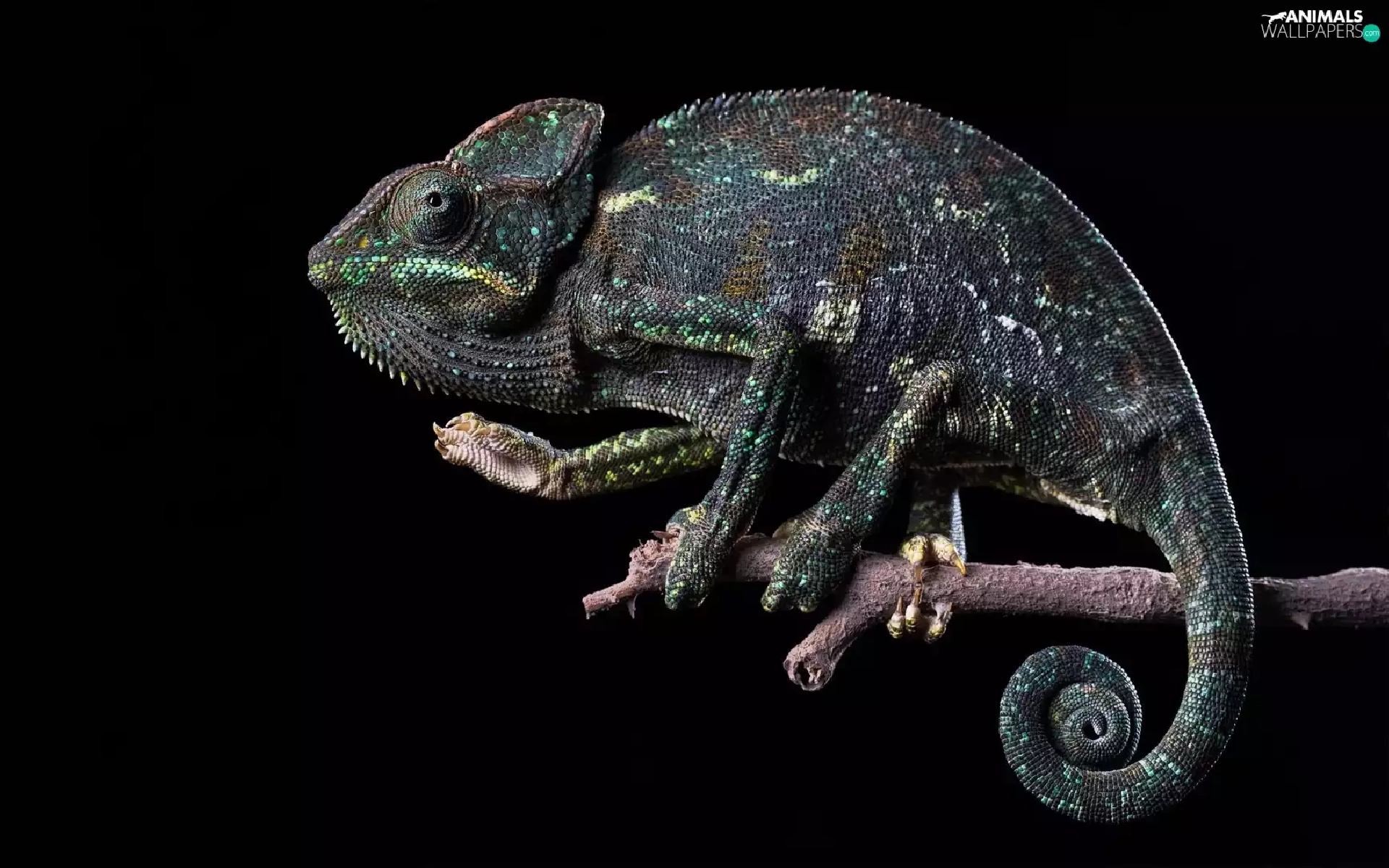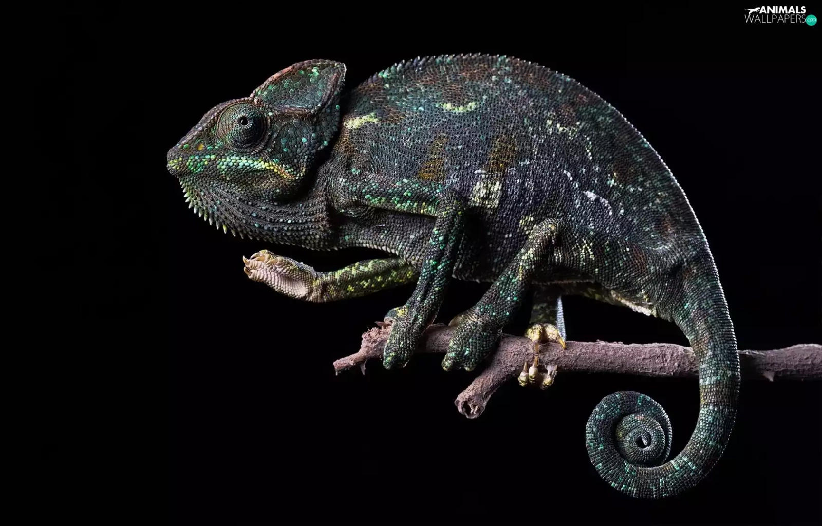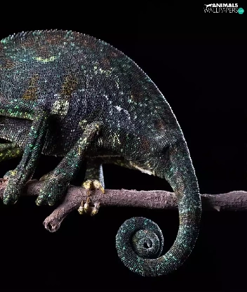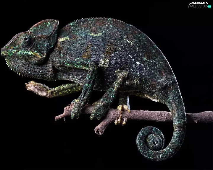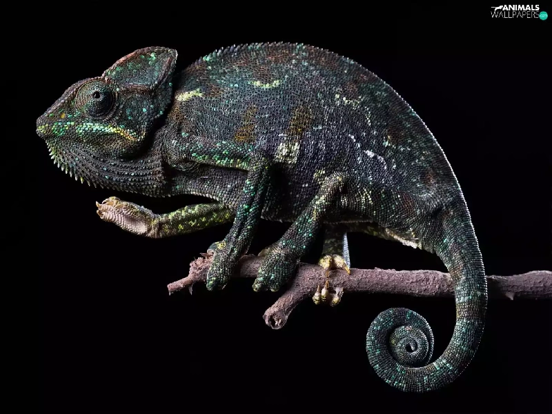 Cameleon, Black, background, twig