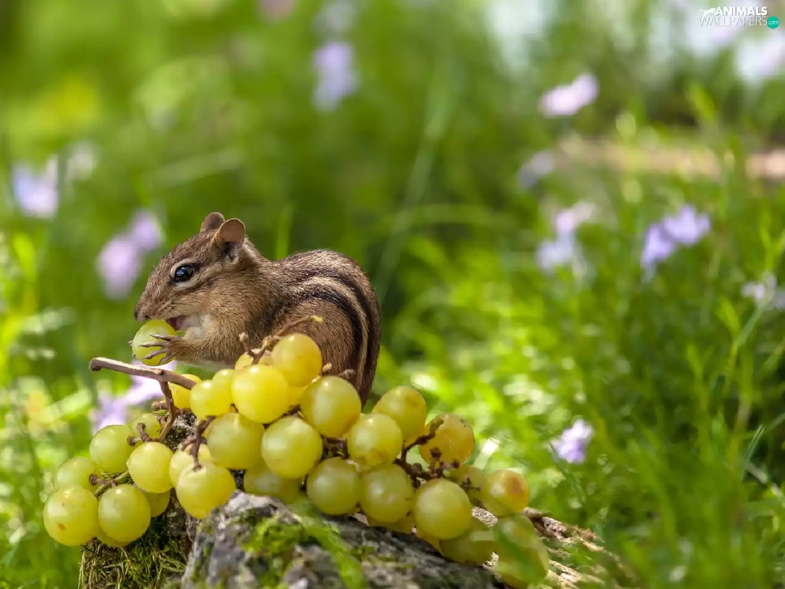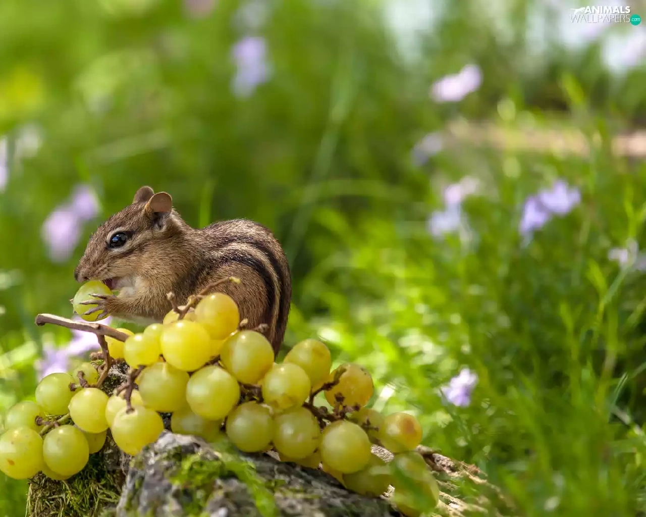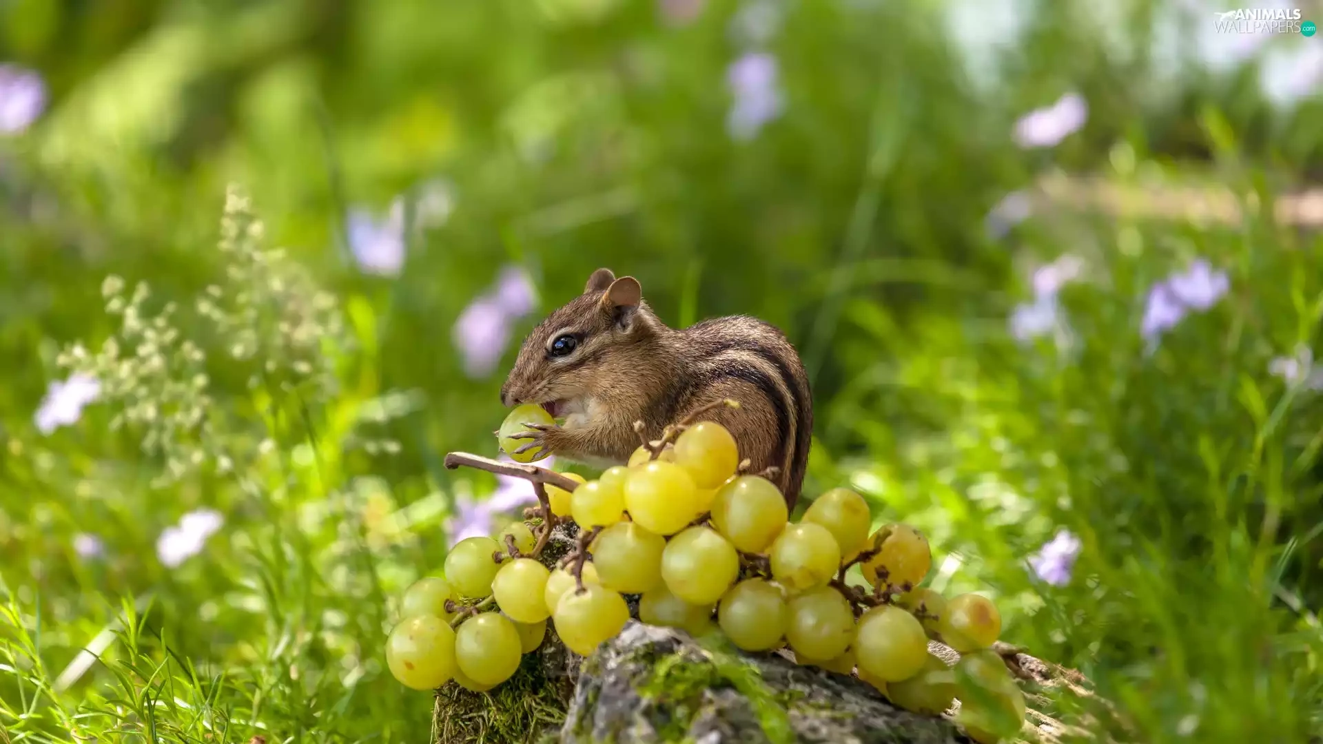Plants, Eastern Chipmunk, twig, Grapes, grass, Chipmunk