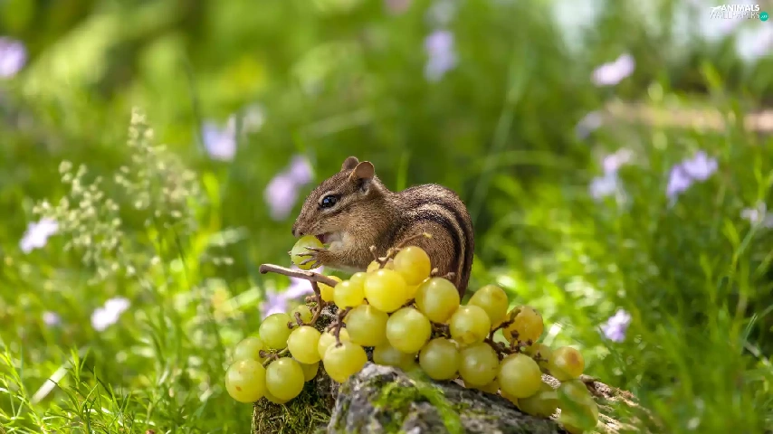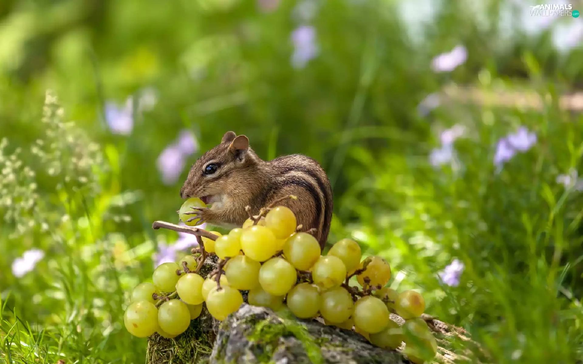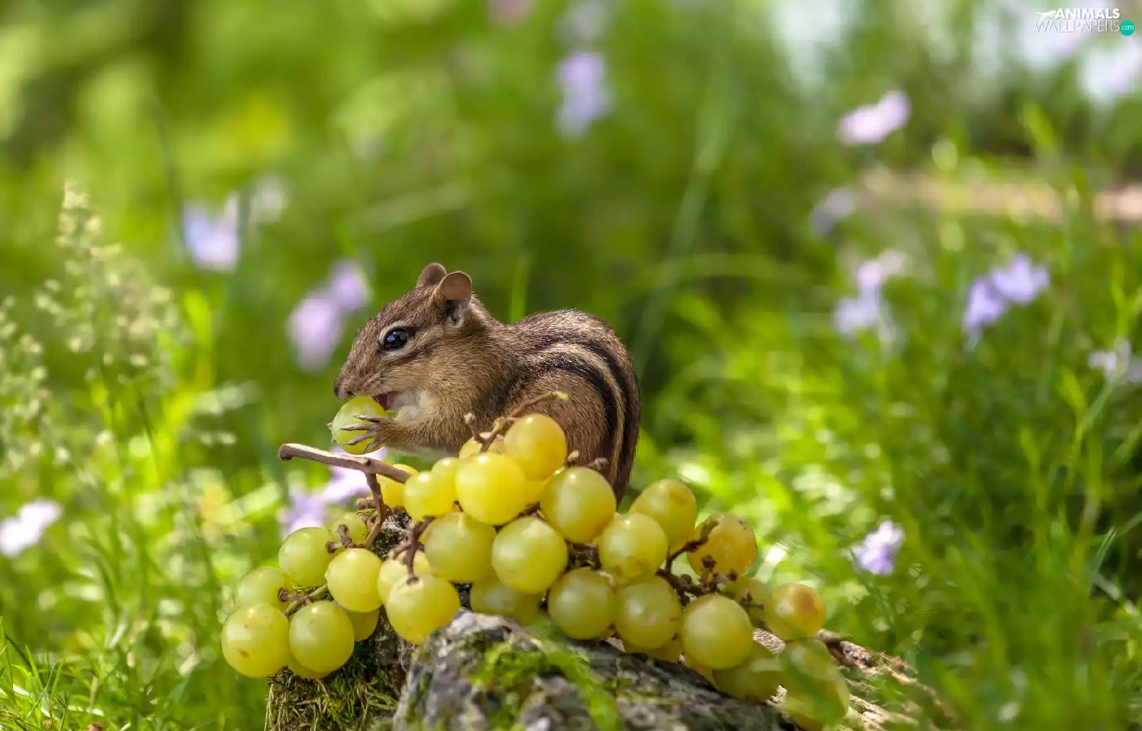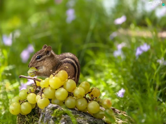 Plants, Eastern Chipmunk, twig, Grapes, grass, Chipmunk